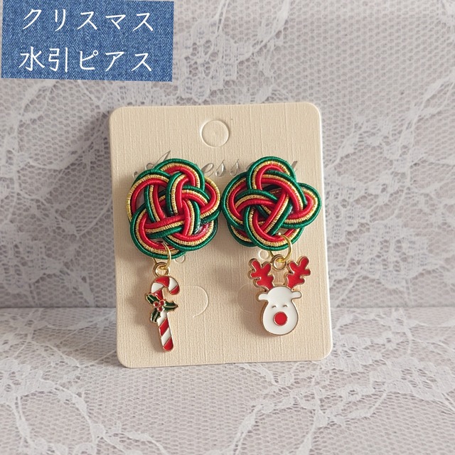水引ピアス クリスマスカラー クリスマス 和装 ハンドメイド