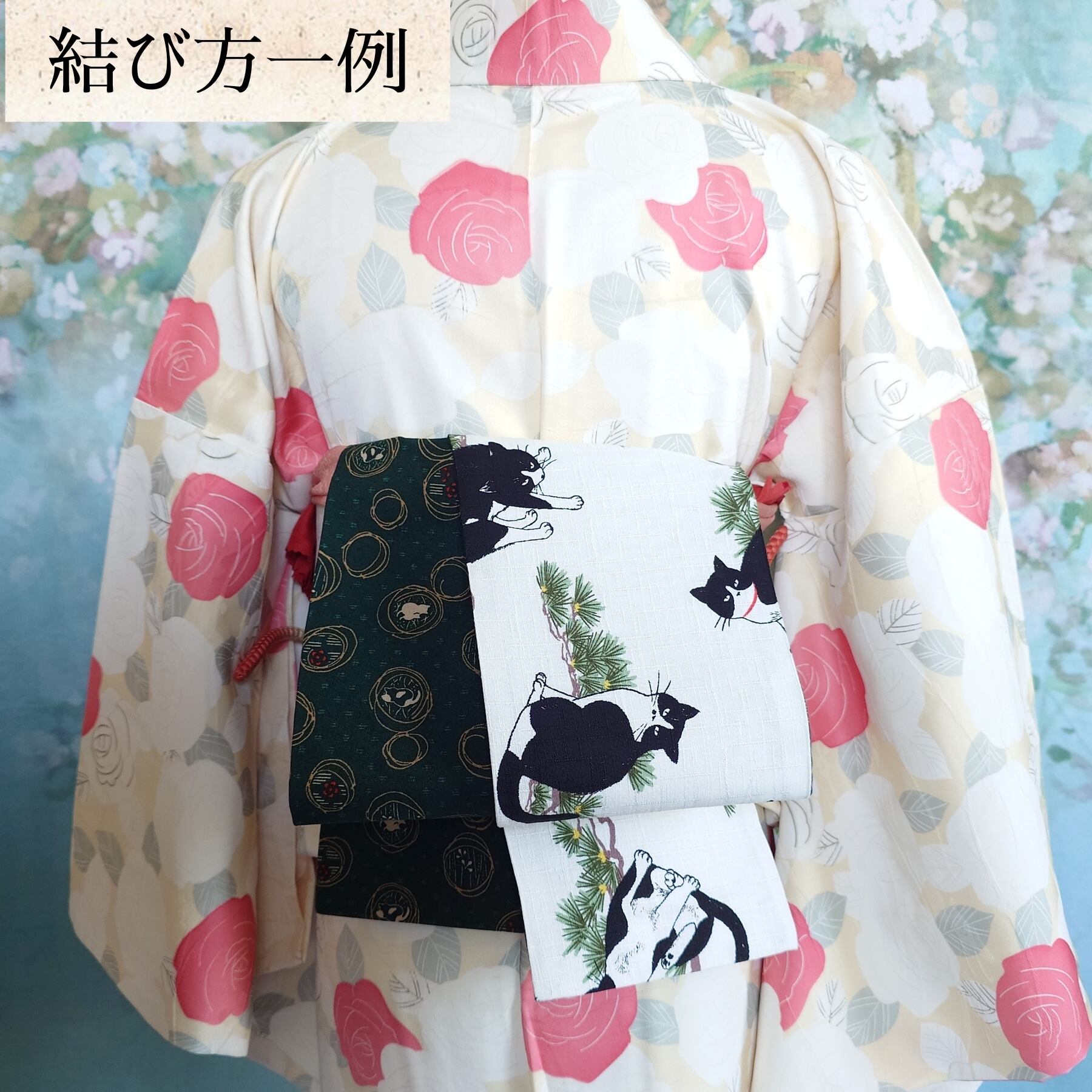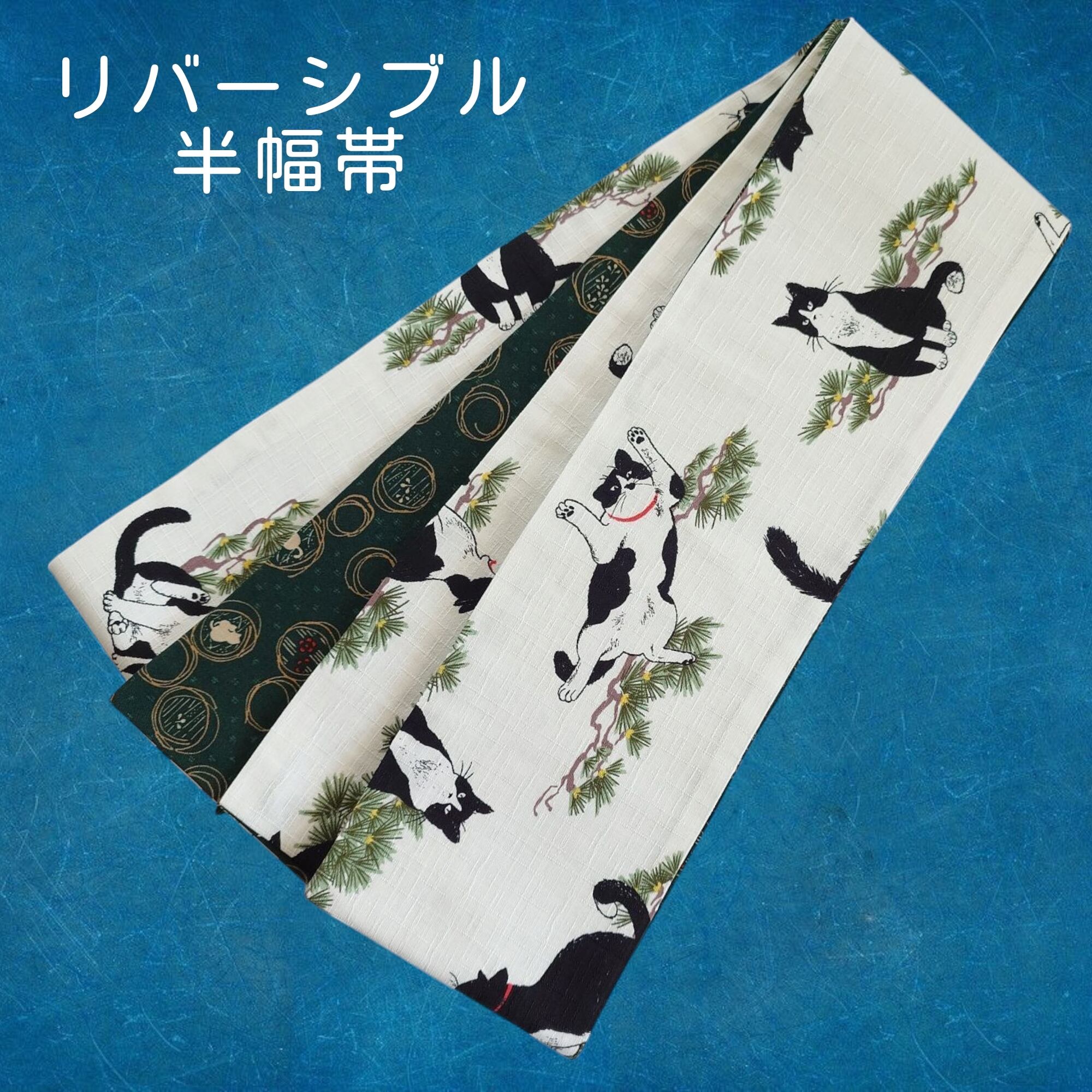 hob84 大人の半幅帯 細帯 リバーシブル ハンドメイド 浴衣 着物