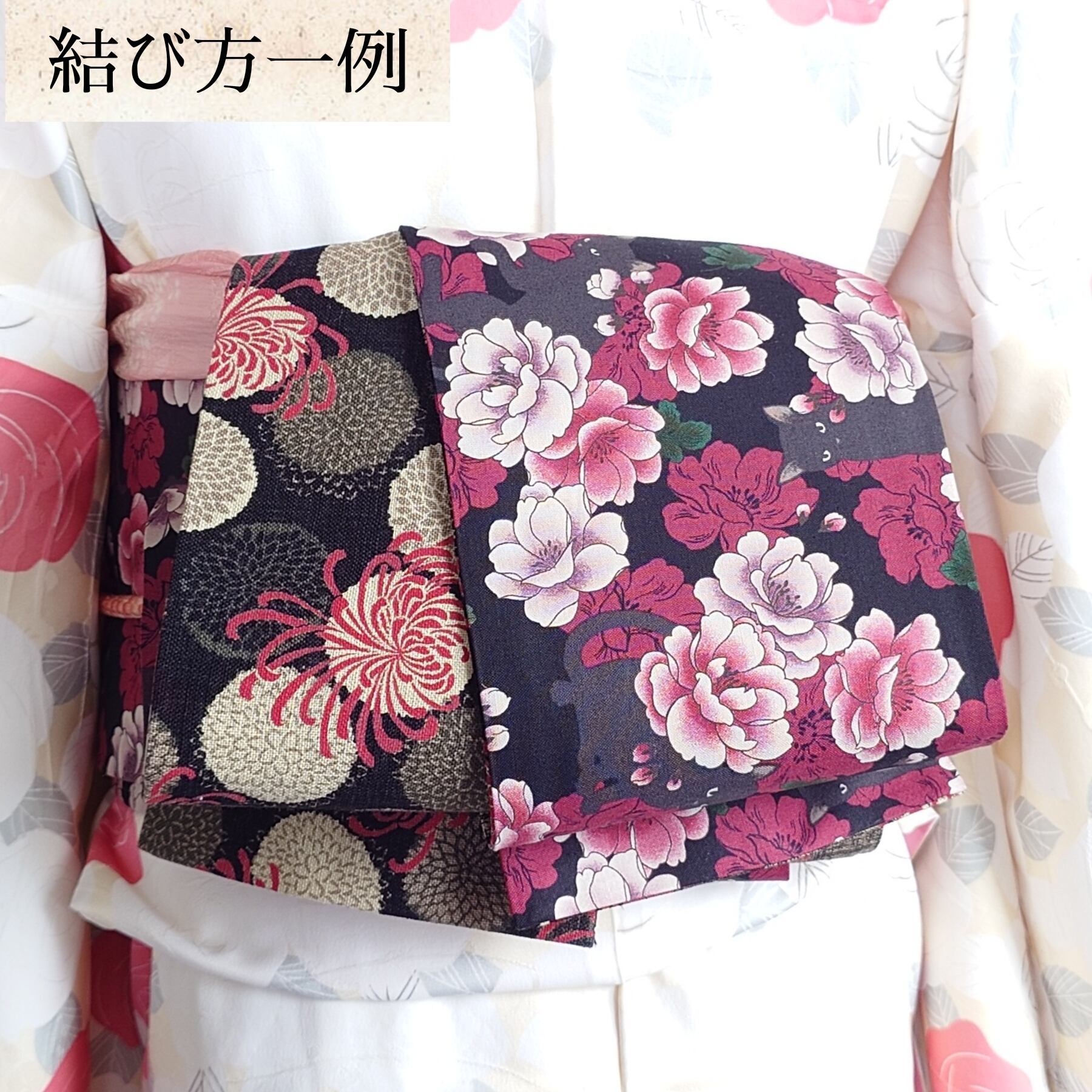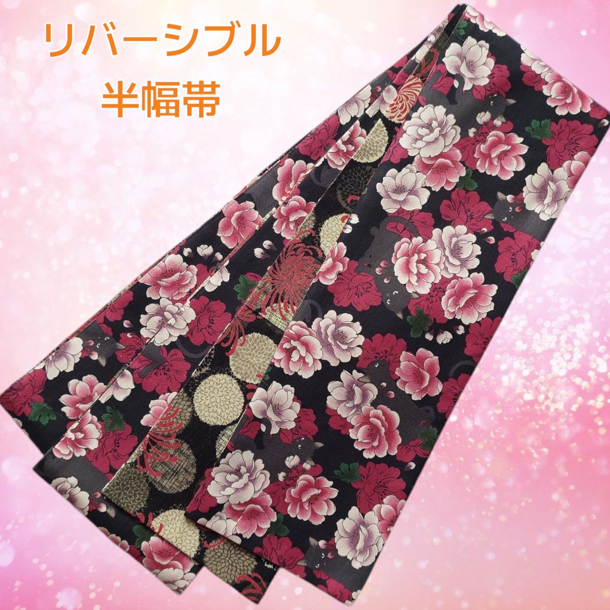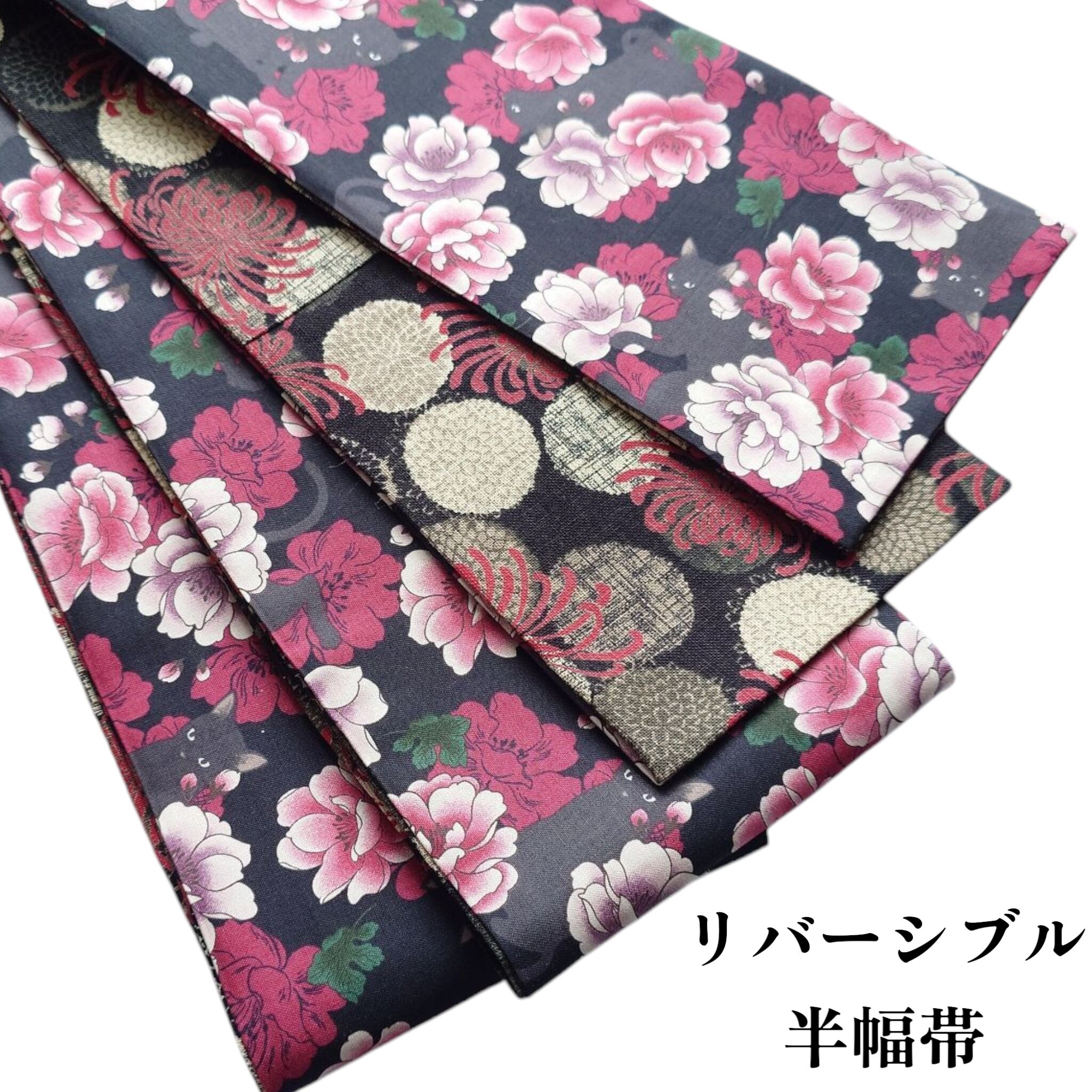 hob103 大人の半幅帯 細帯 リバーシブル ハンドメイド 浴衣 着物