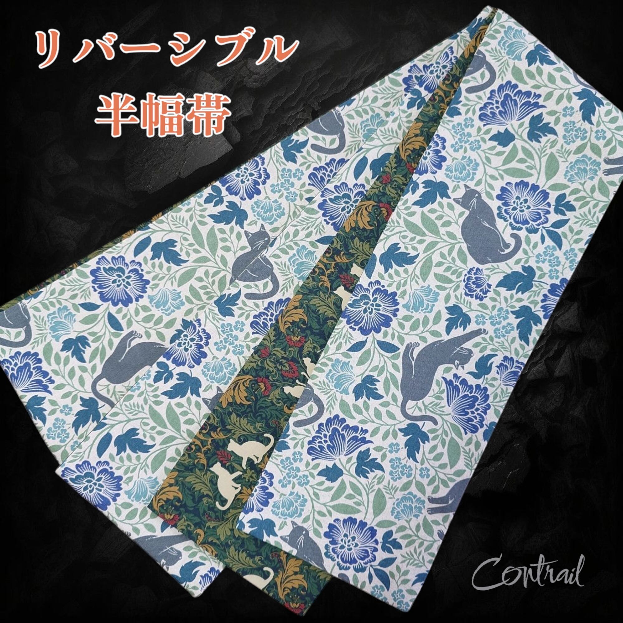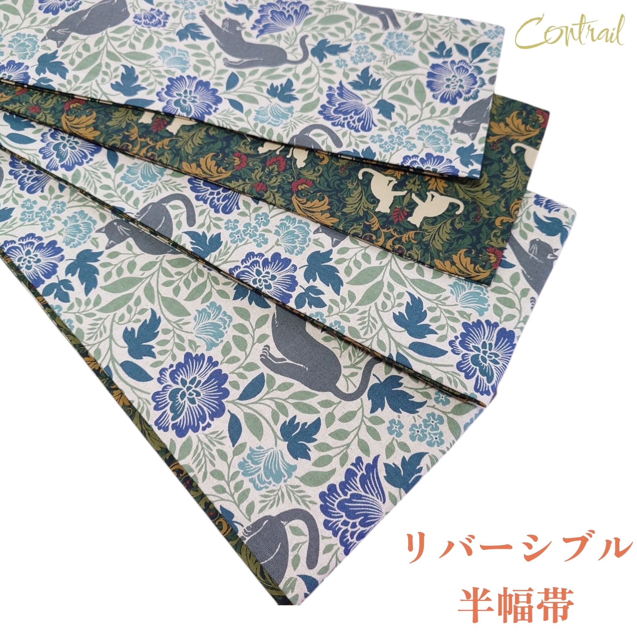 hob121 虎 大人の半幅帯 細帯 リバーシブル 黒猫 猫 ダマスク