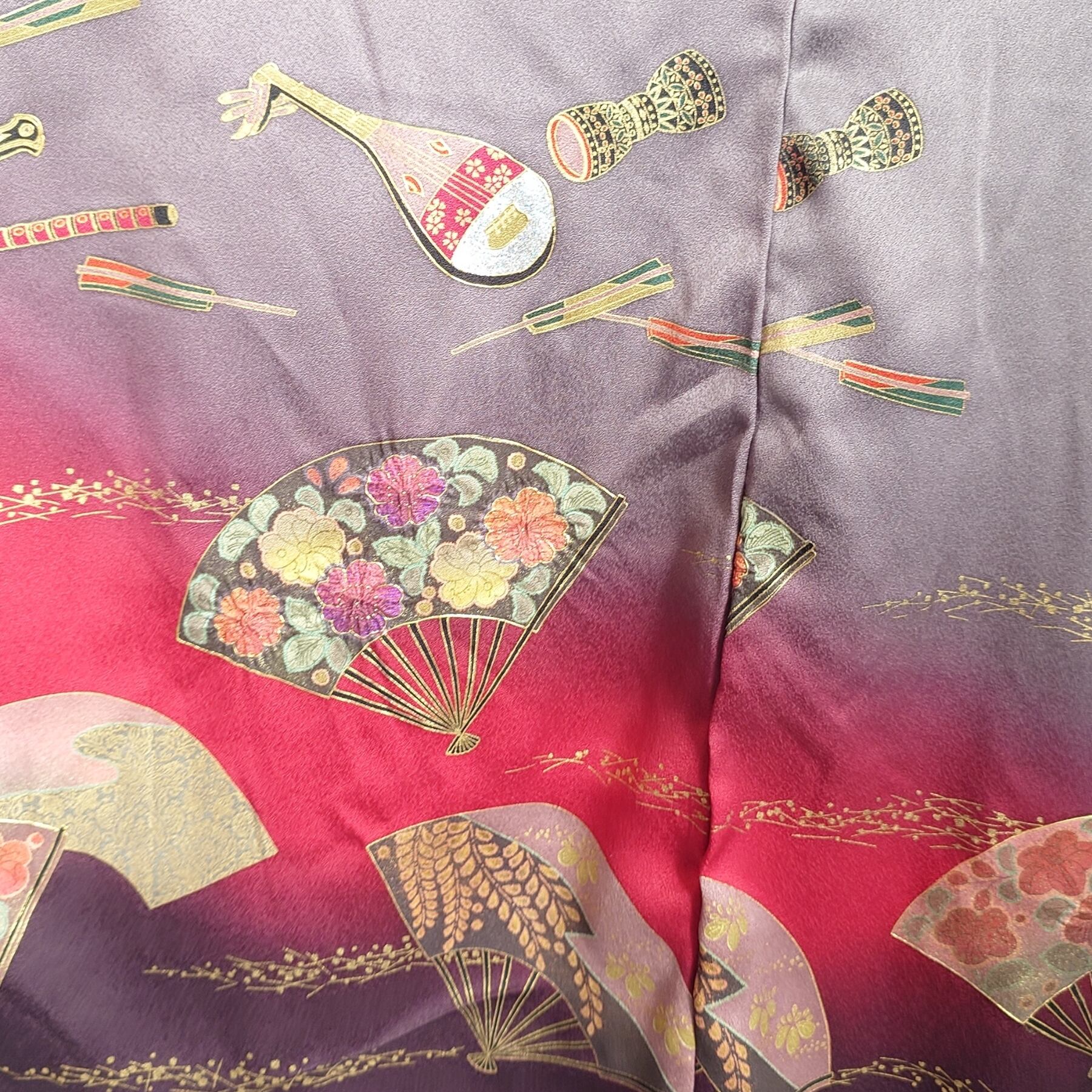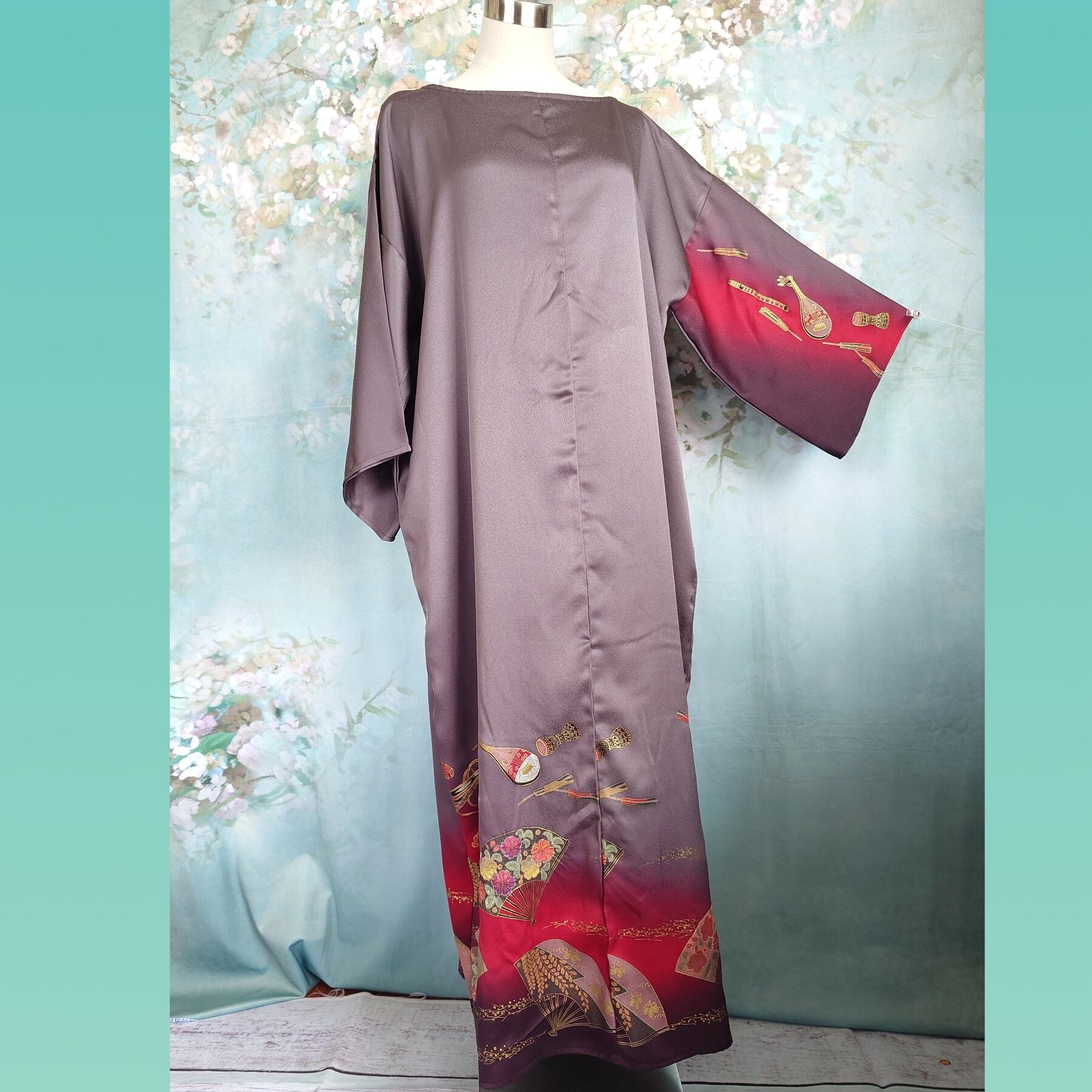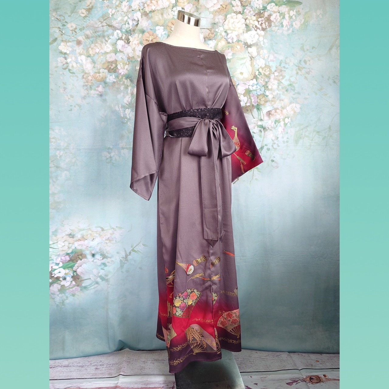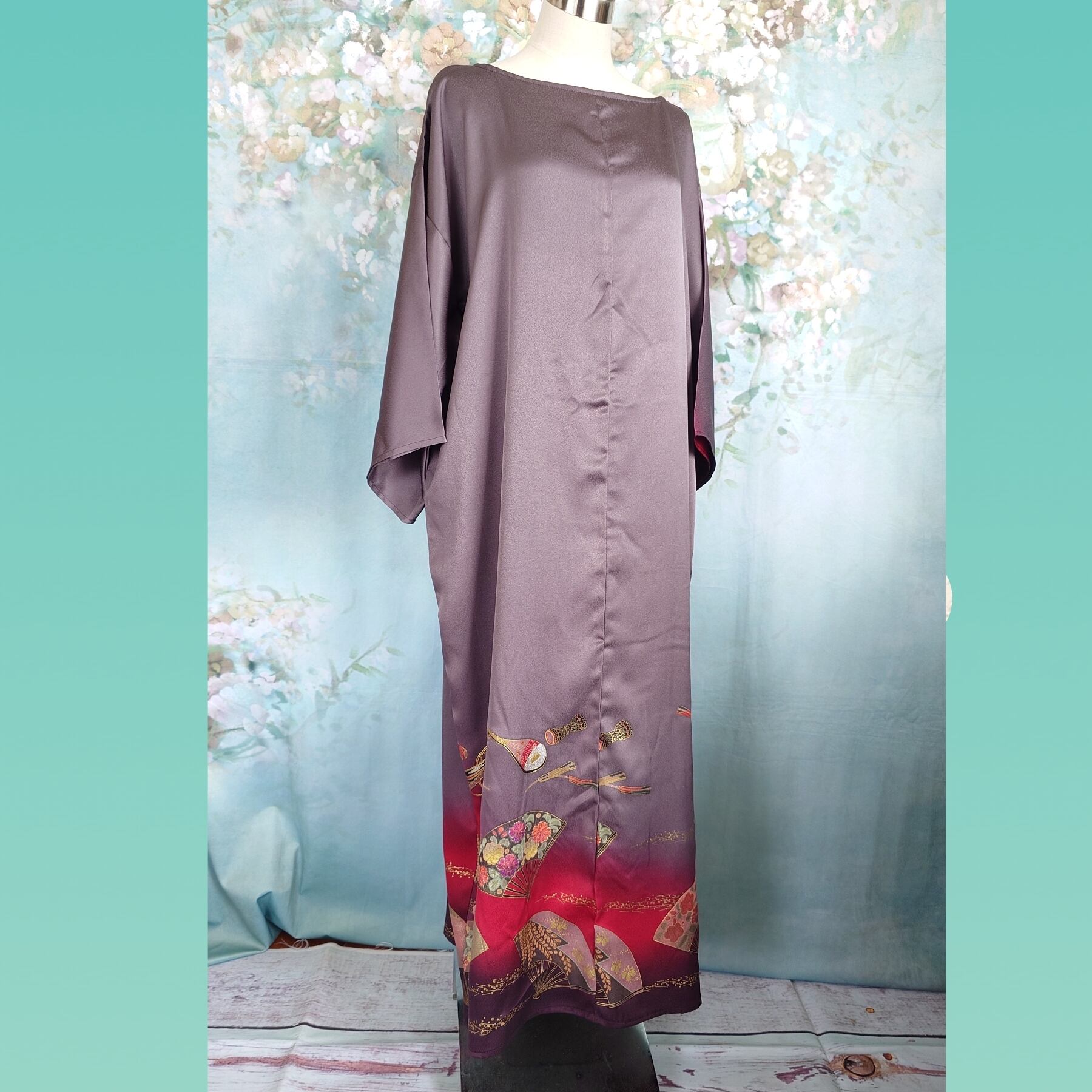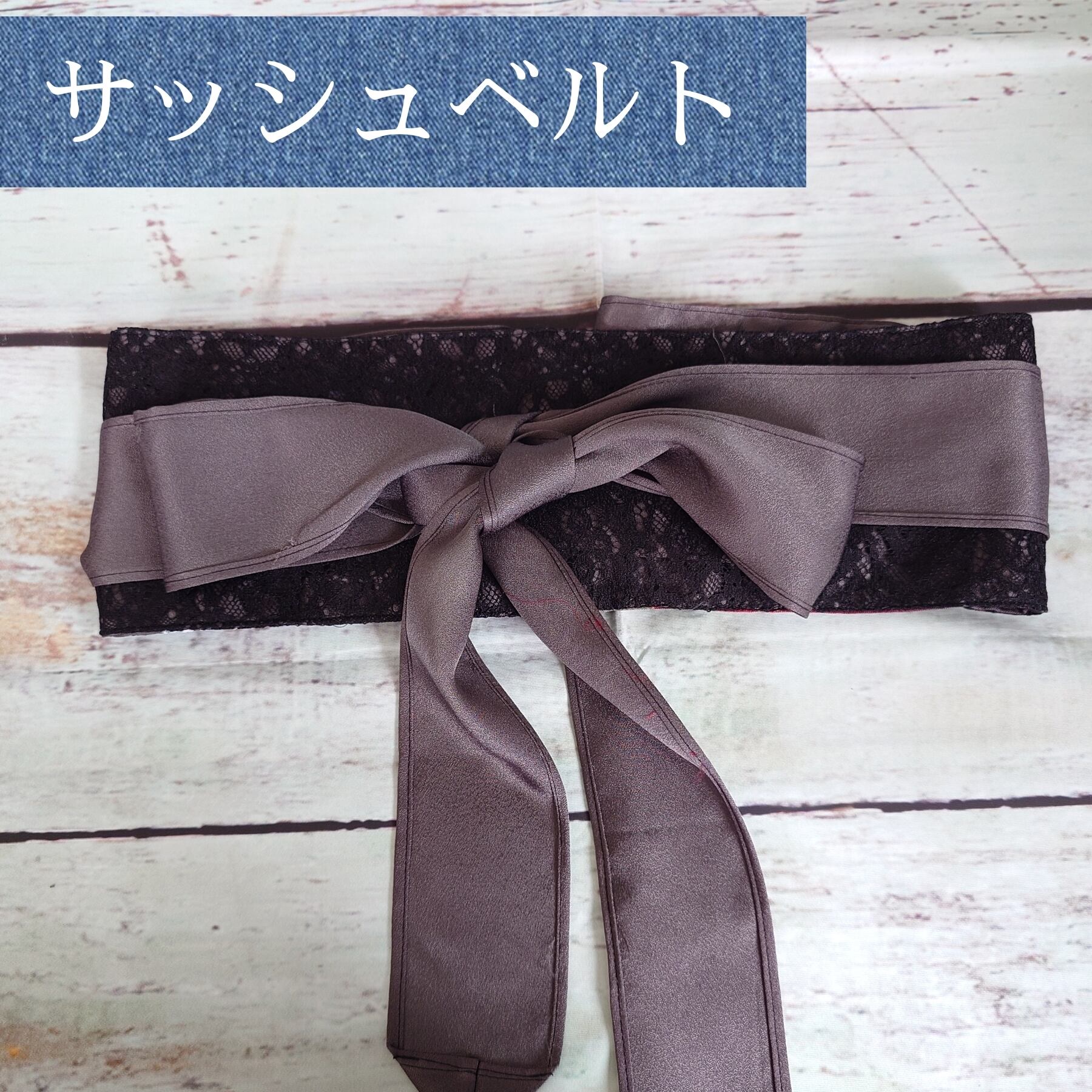 d70 L〜LLサイズ マキシ丈ワンピース ウエストリボン付き 着物リメイク マキシ丈 正絹