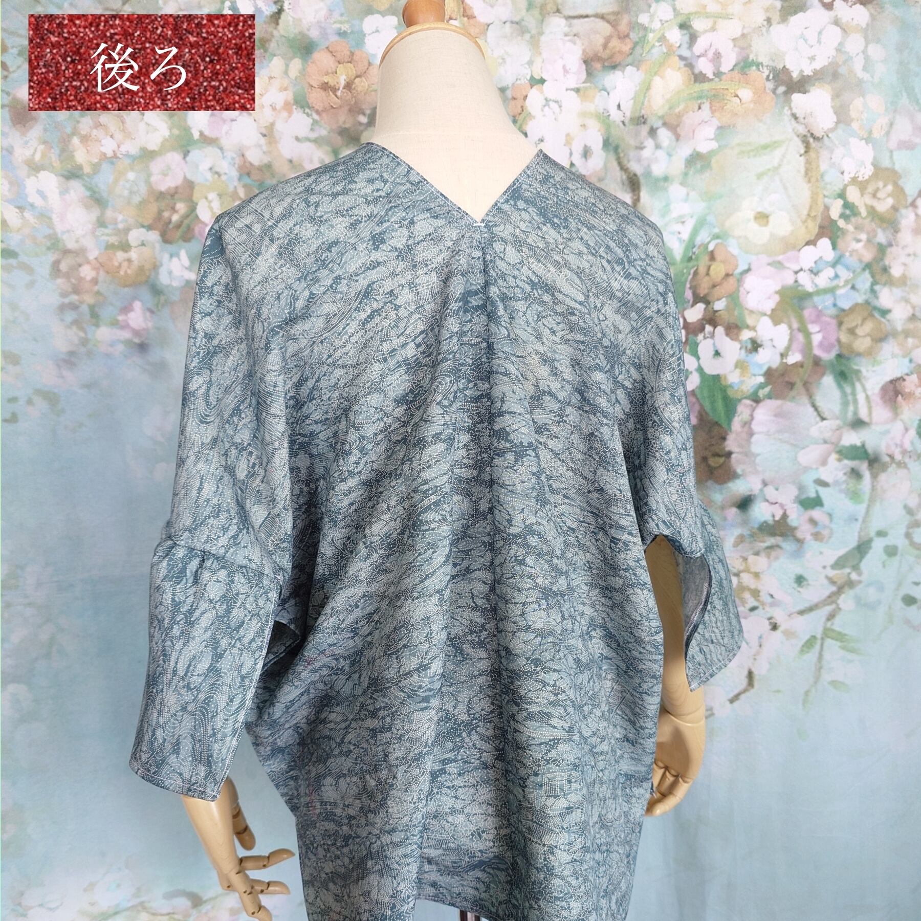t25 チュニックブラウス 着物リメイク 正絹 Vネックブラウス
