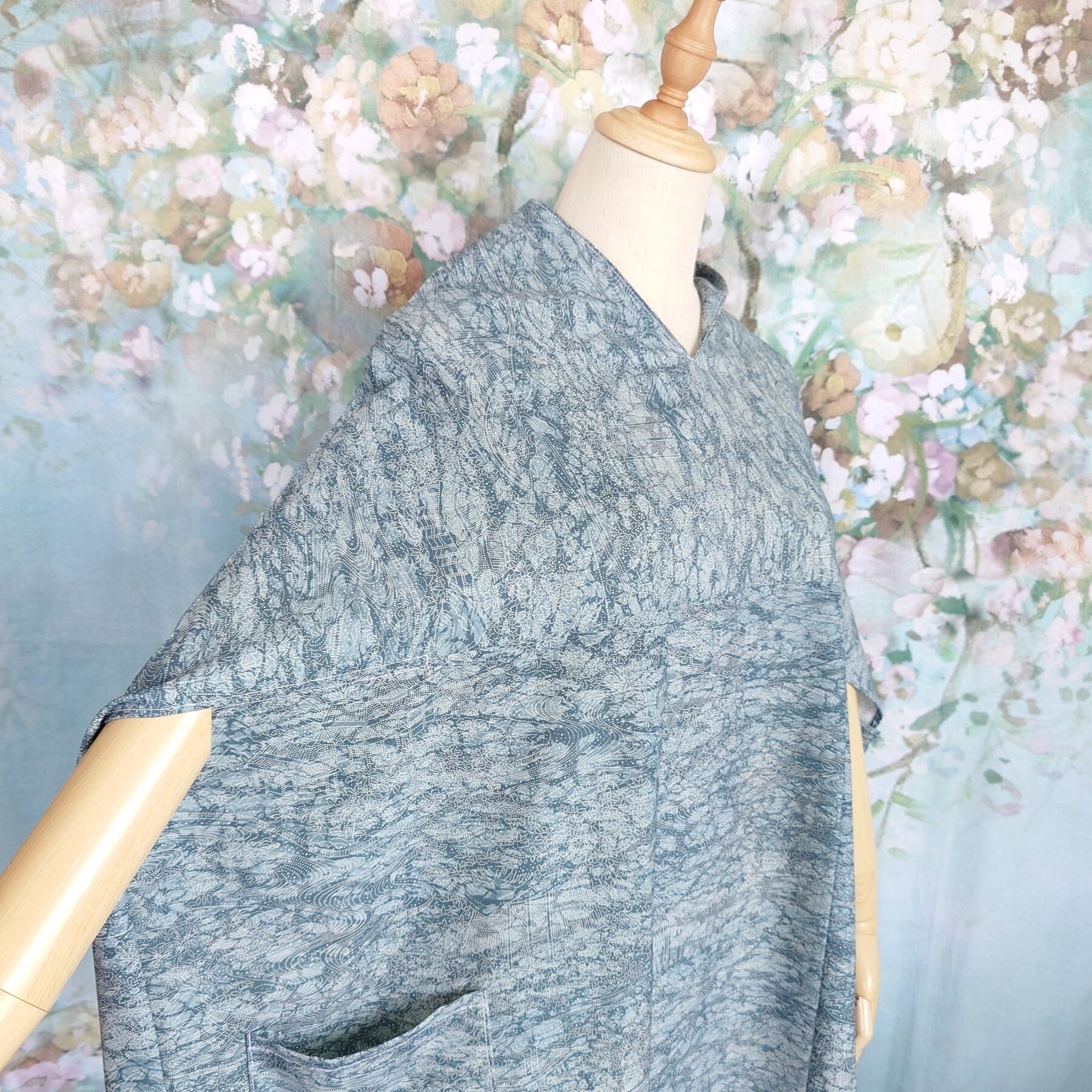 着物をほどいて私的に一番素敵に見える配置を考え裁断、縫製しました。