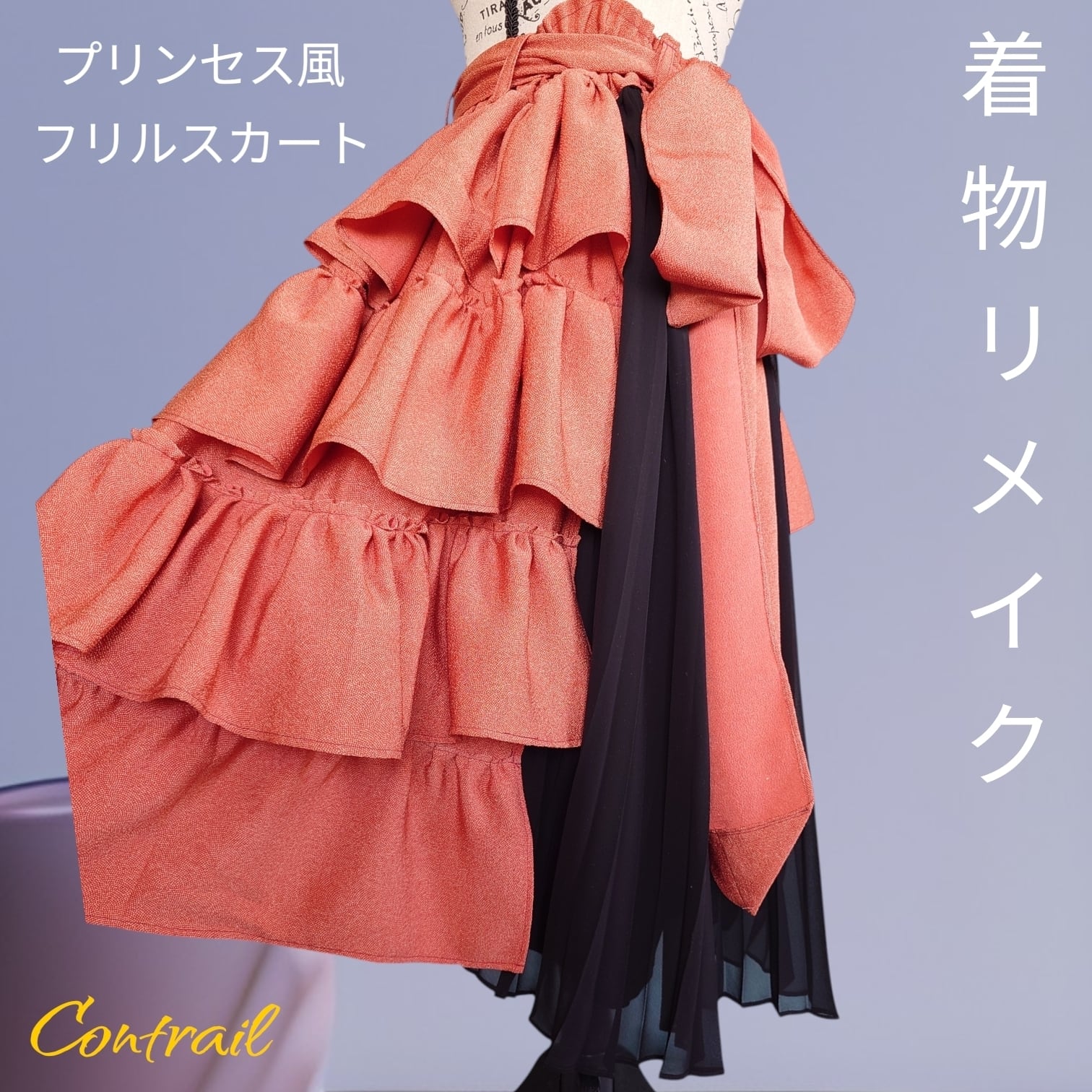 s19 フリルスカート プリンセス風スカート 着物リメイク 江戸小紋