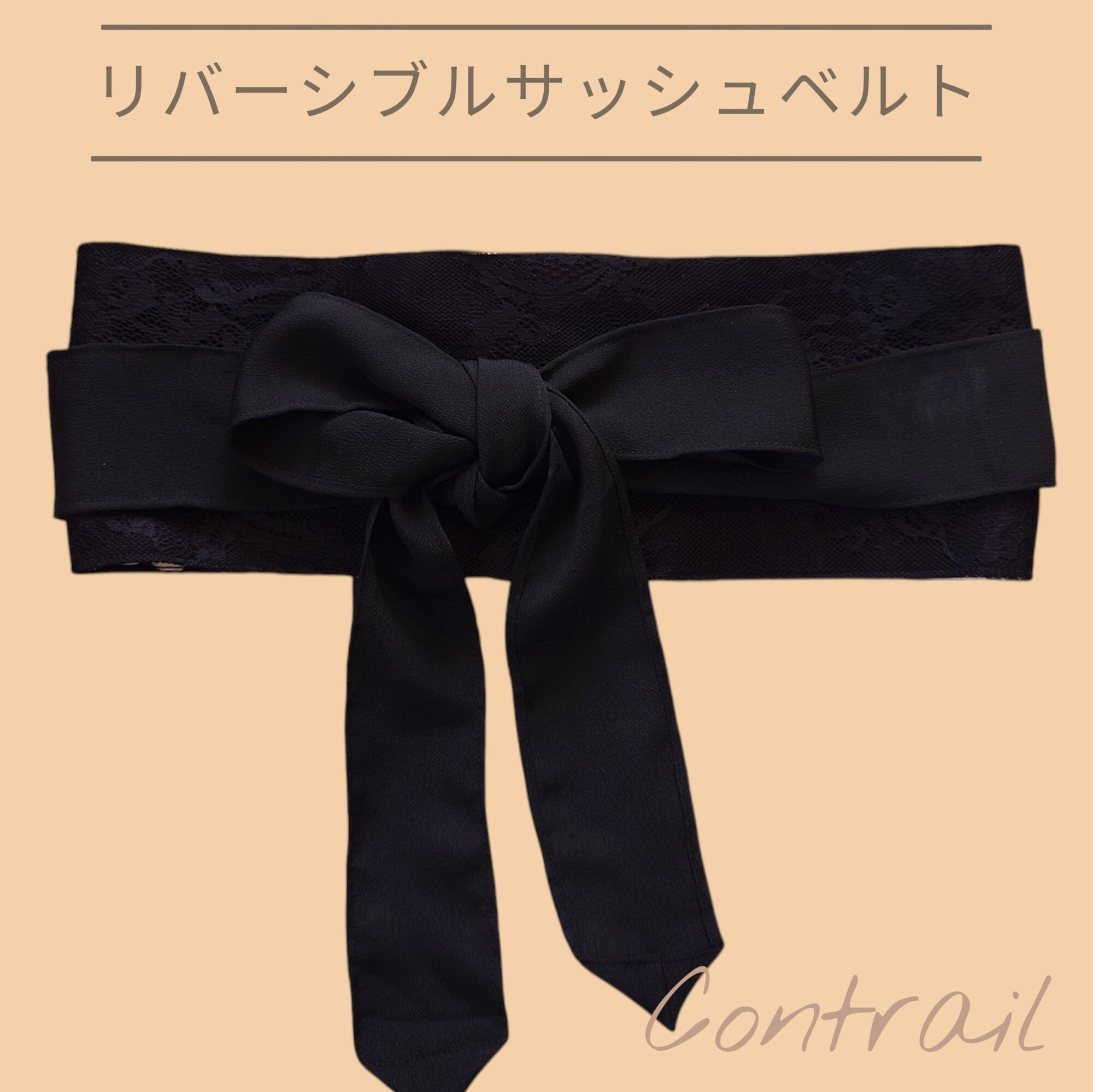 46 サッシュベルト リバーシブル仕様 着物リメイク 簡易帯 黒留袖