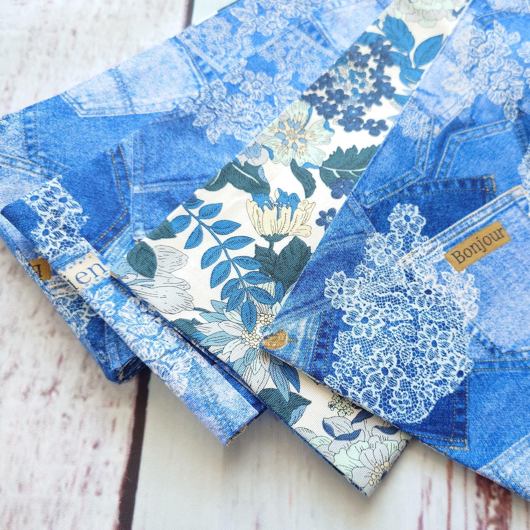ho151 長尺 4.4m 大人の半幅帯 細帯 リバーシブル ハンドメイド ジーンズ風プリント