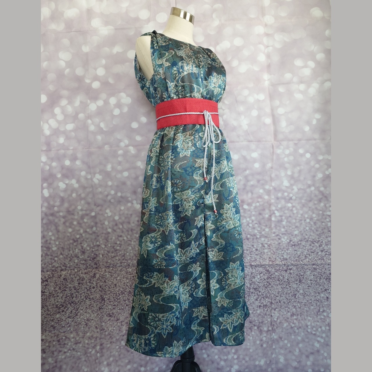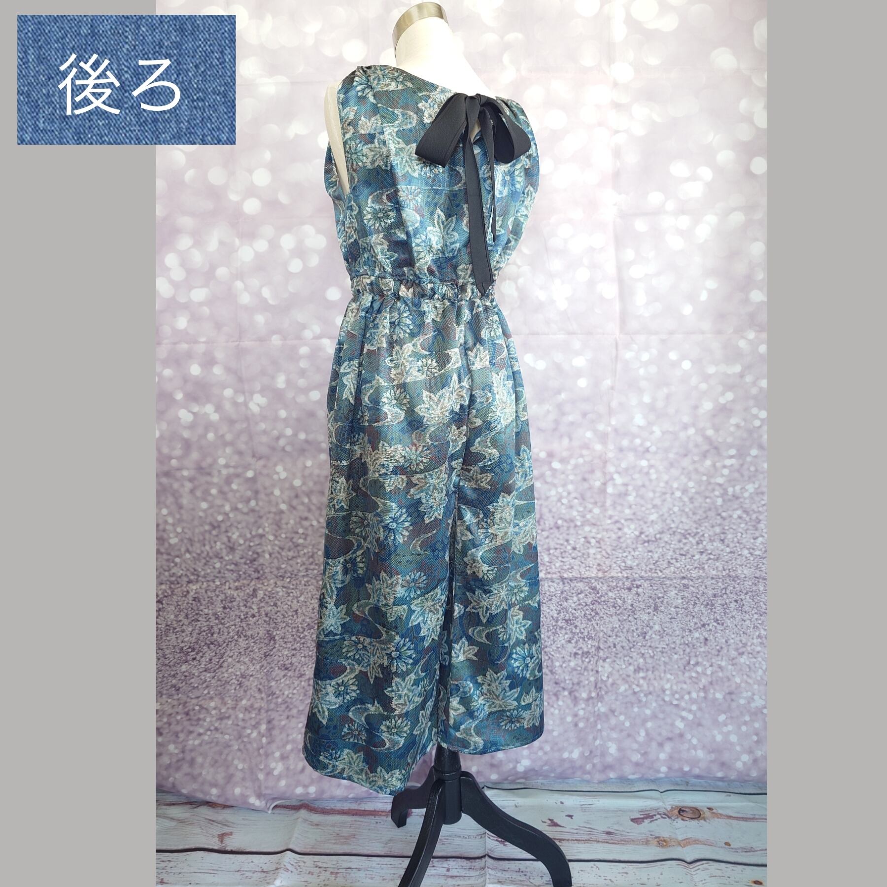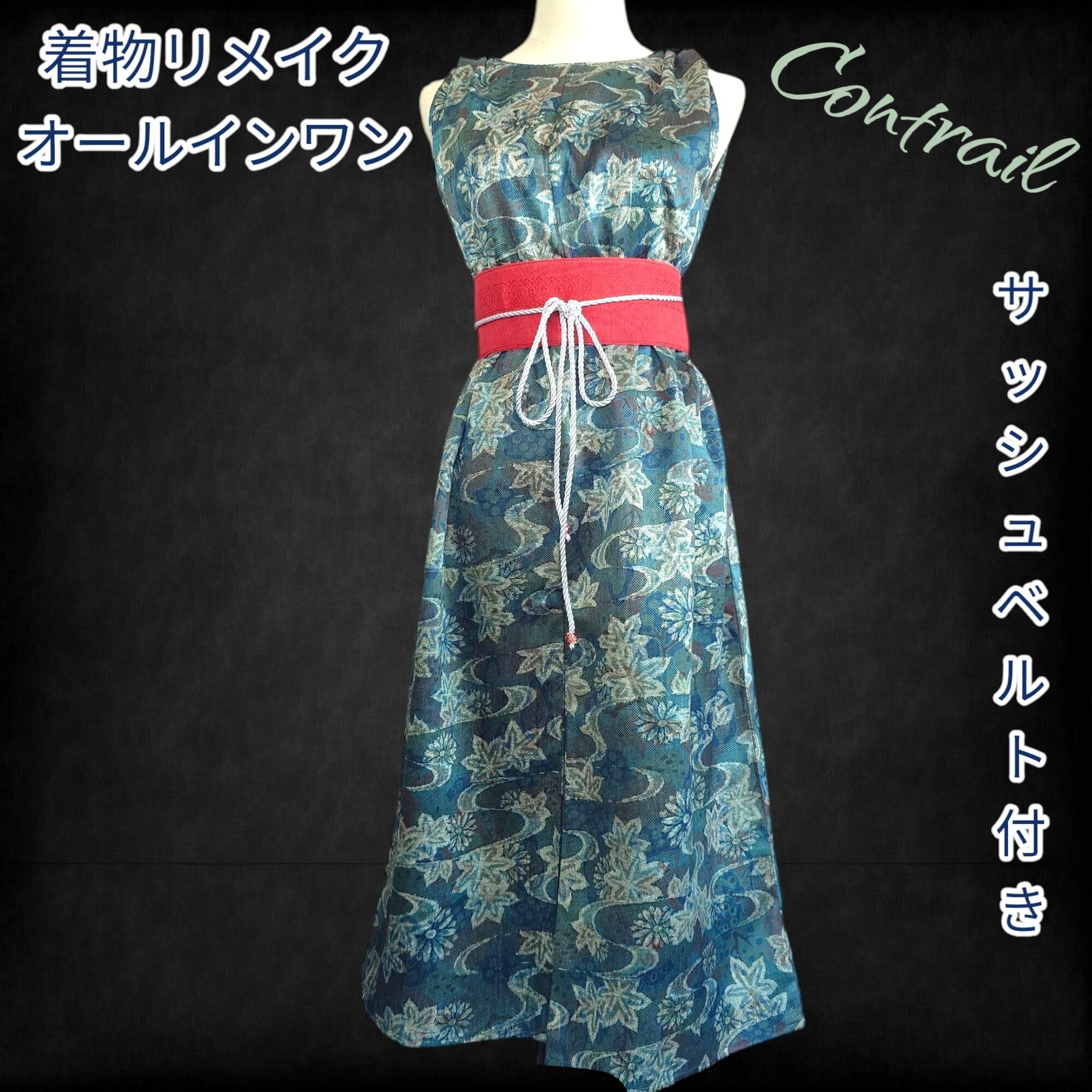 d81 オールインワン サッシュベルト付き 大島紬風 着物リメイク