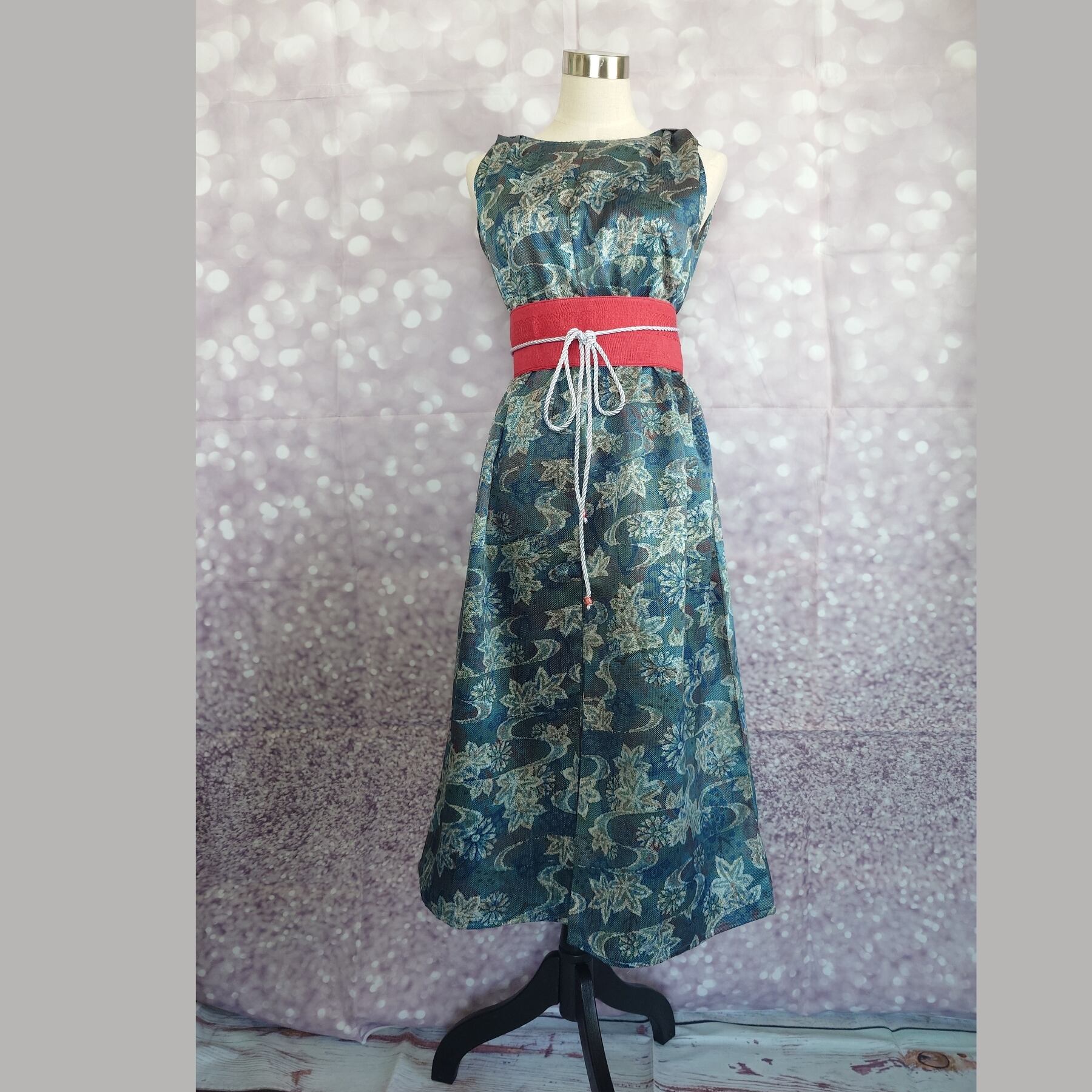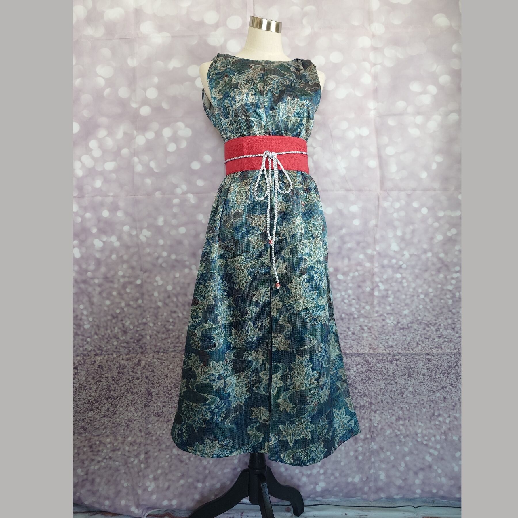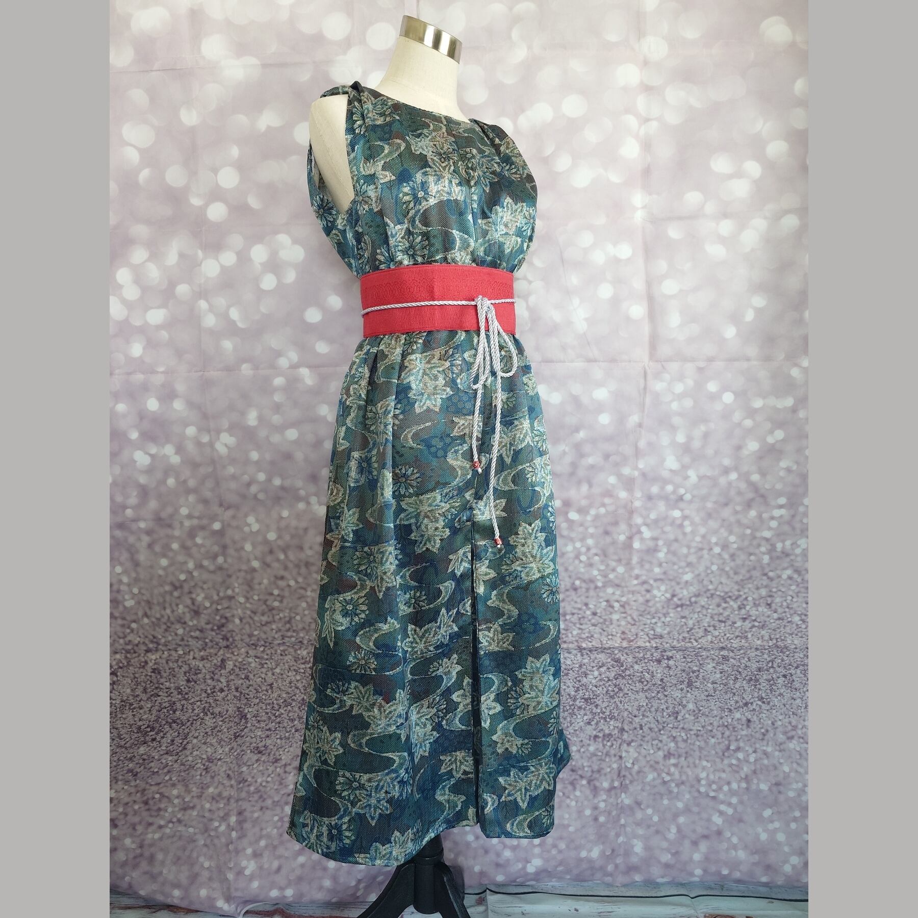 d81 オールインワン サッシュベルト付き 大島紬風 着物リメイク