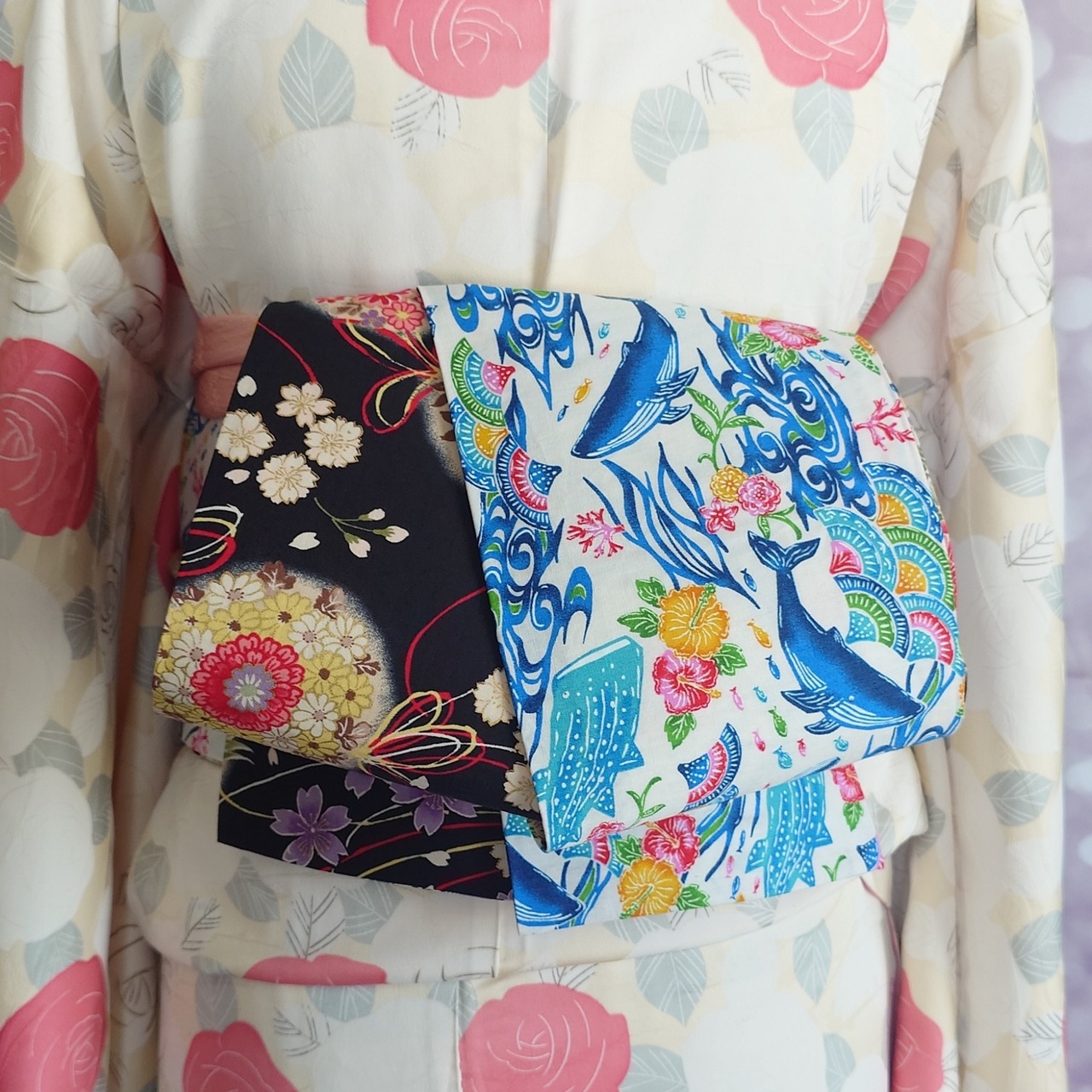 ✔いろいろな体型に合わせられるのが帯の良いところです。