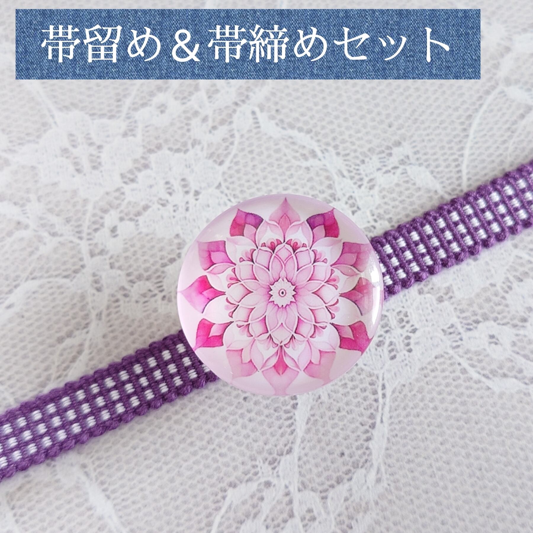 No.145 帯留め&帯締め2点セット ハンドメイド 帯留め 帯飾り 和装小物