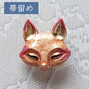 No.190 帯留め&帯締め2点セット ハンドメイド 帯留め 帯飾り 和装小物 お稲荷さま 狐 三分紐