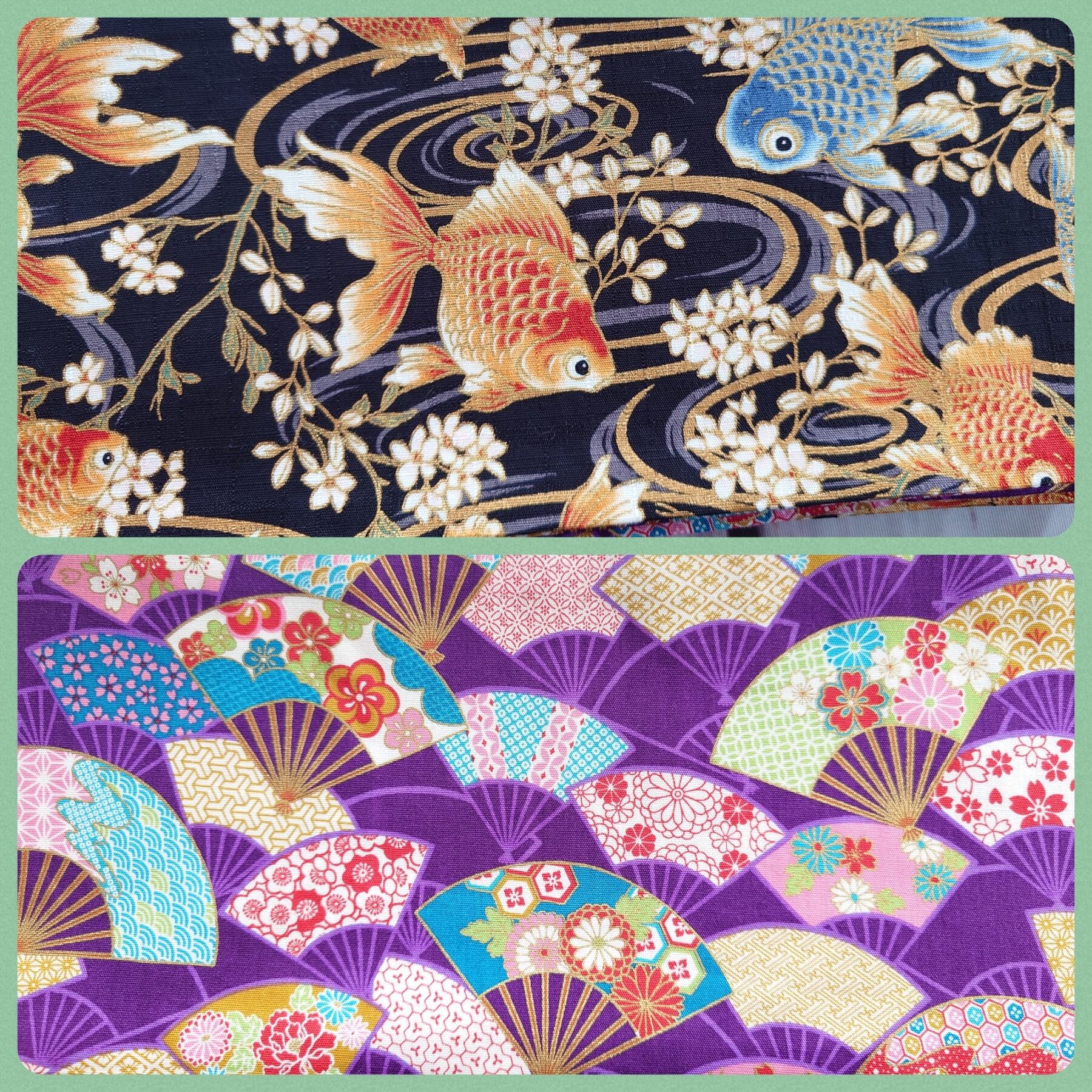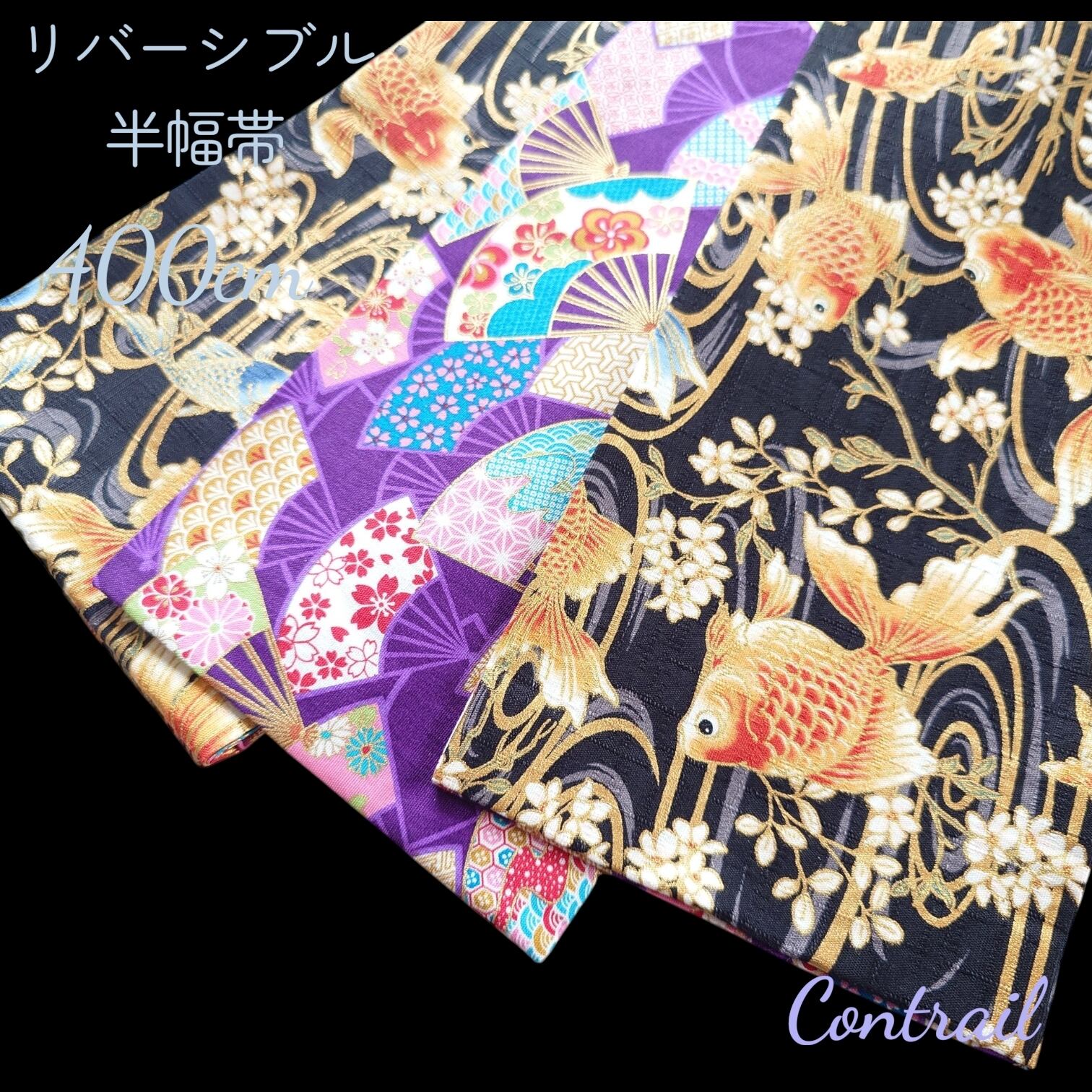 hob181 4m 大人の半幅帯 細帯 リバーシブル 浴衣 着物 鯉 扇