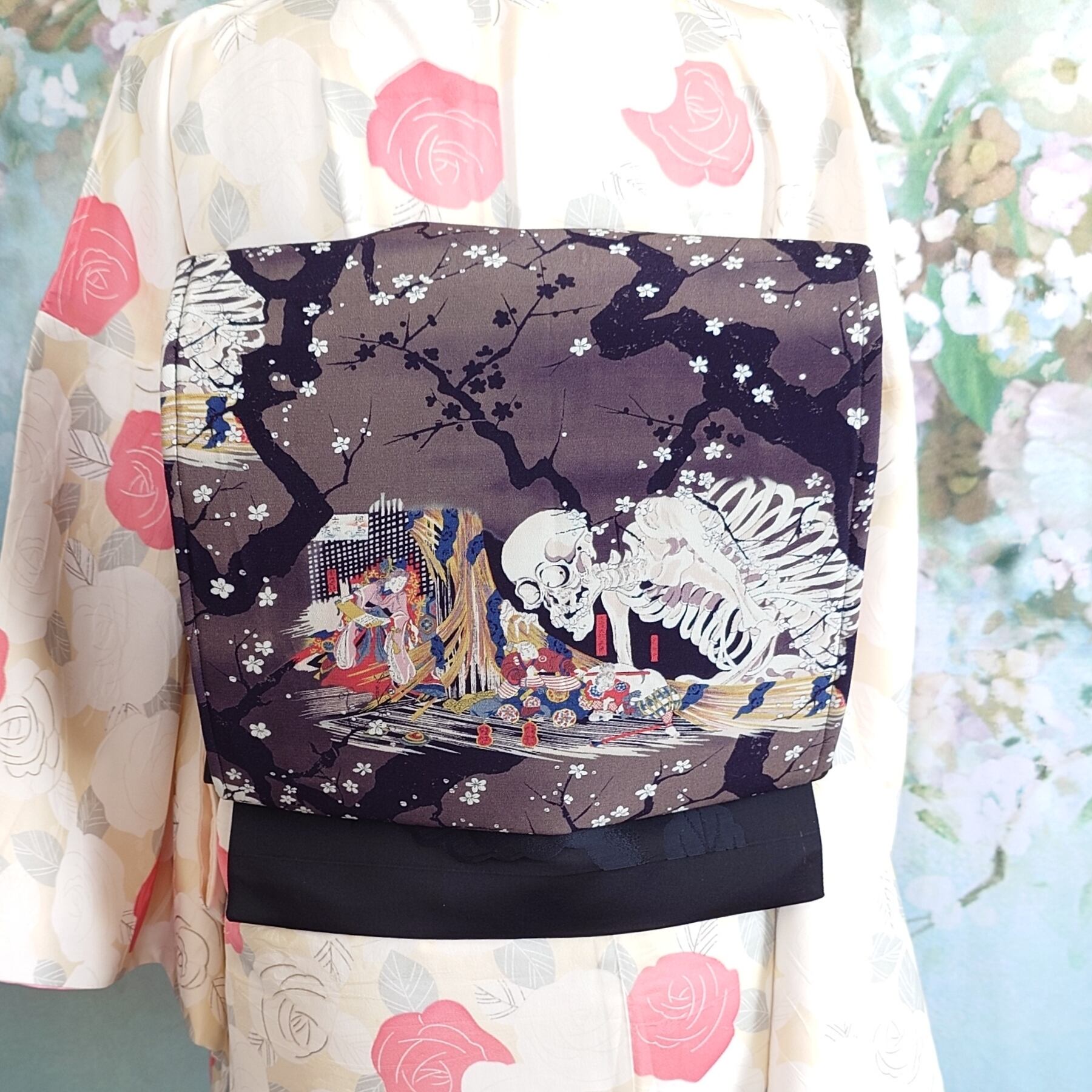 ob228 フック付 ワンタッチ二部式作り帯 一重太鼓結び ガシャ髑髏 滝夜叉姫