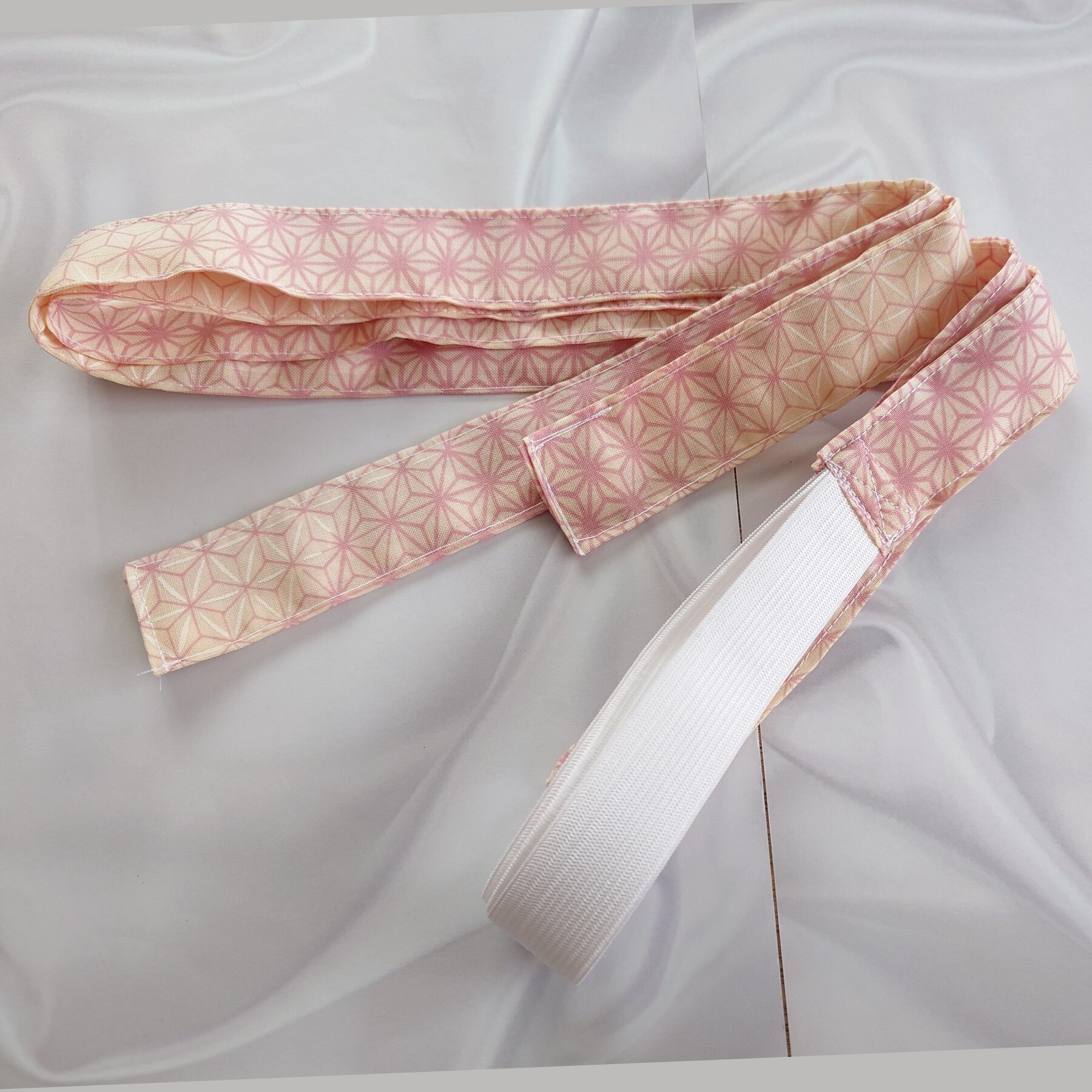 ゴムバンドとモスリンの反物から作成しました