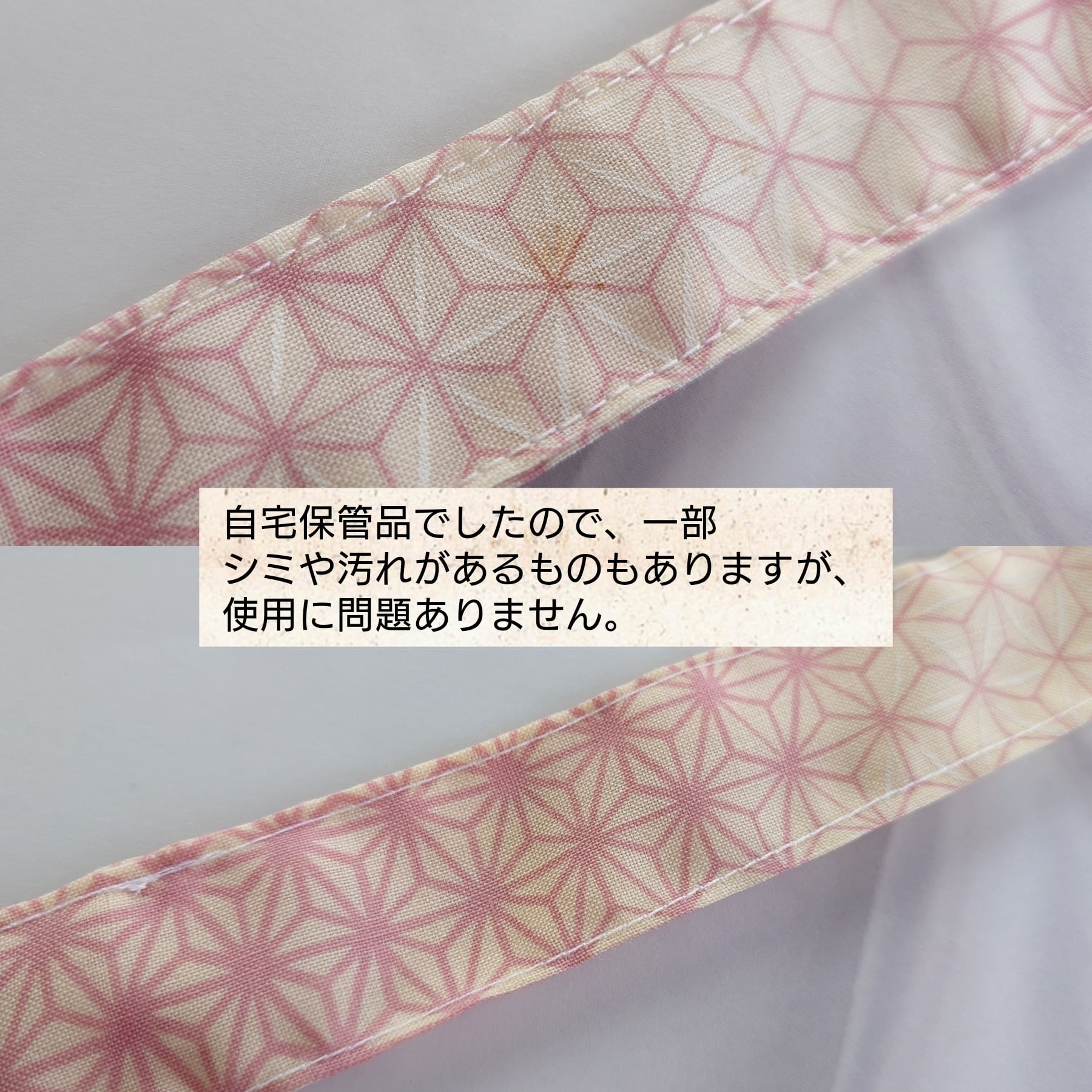 ✔自宅保管のモスリンの反物を使用しています。なかにはシミや汚れがある場合もありますが、使用に問題ありません。