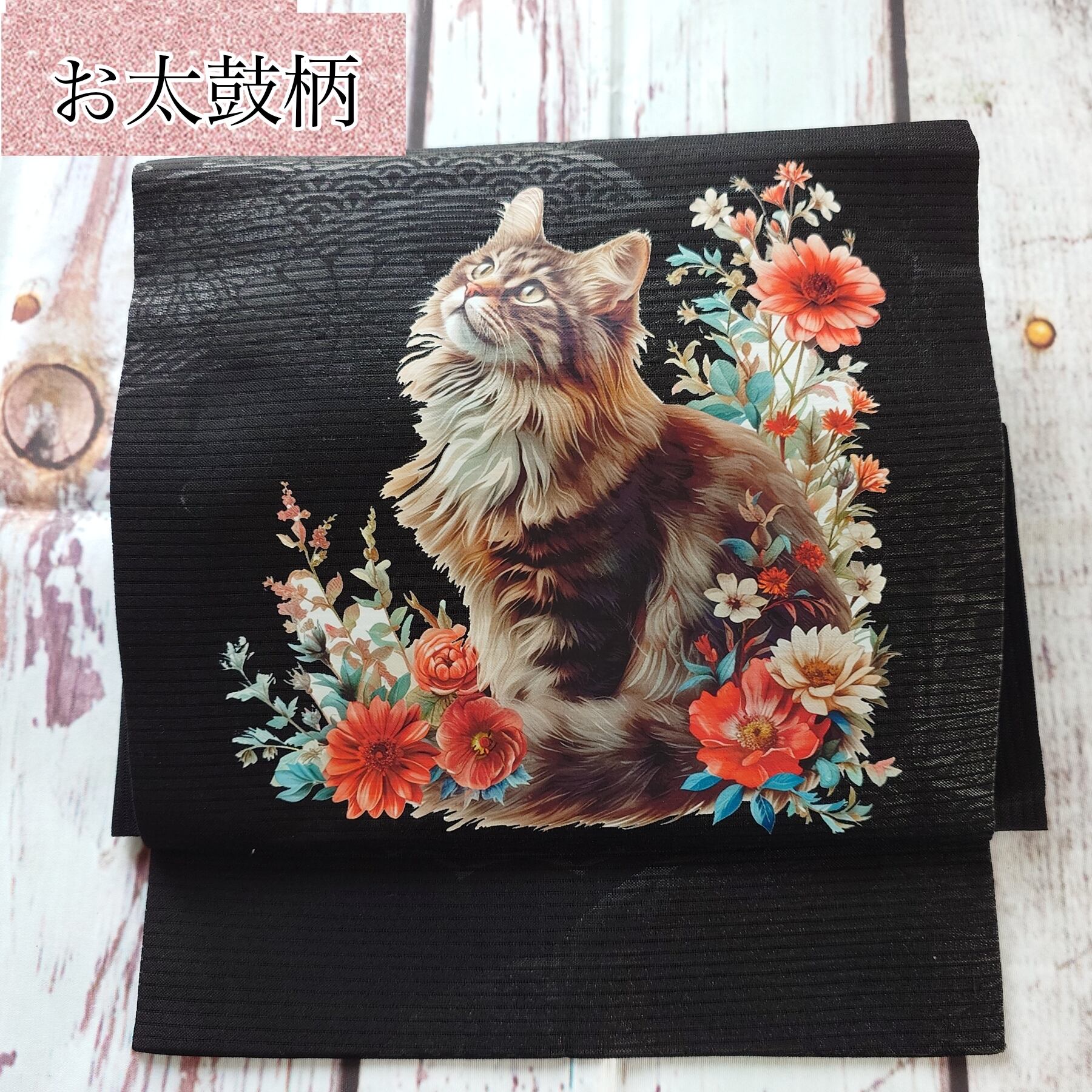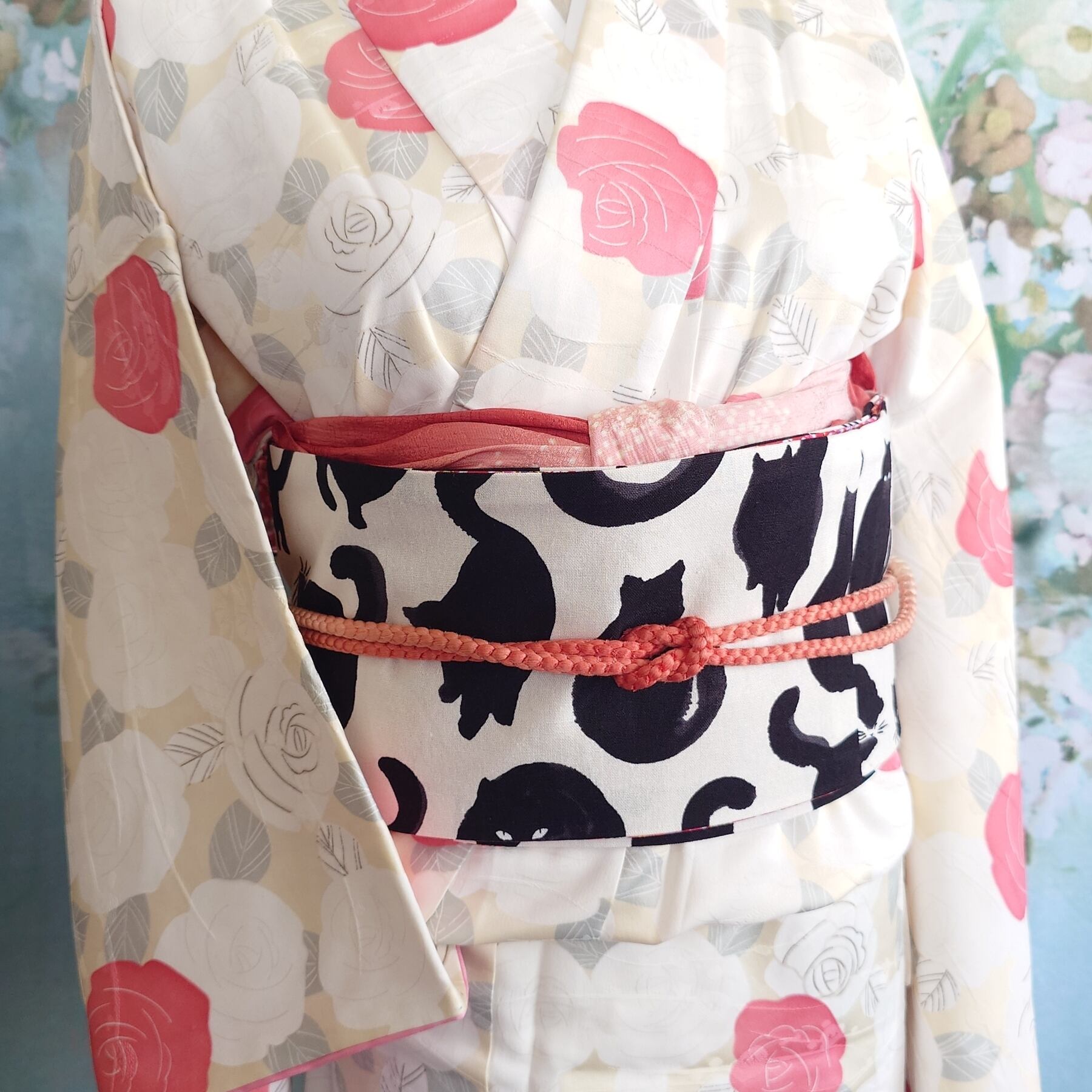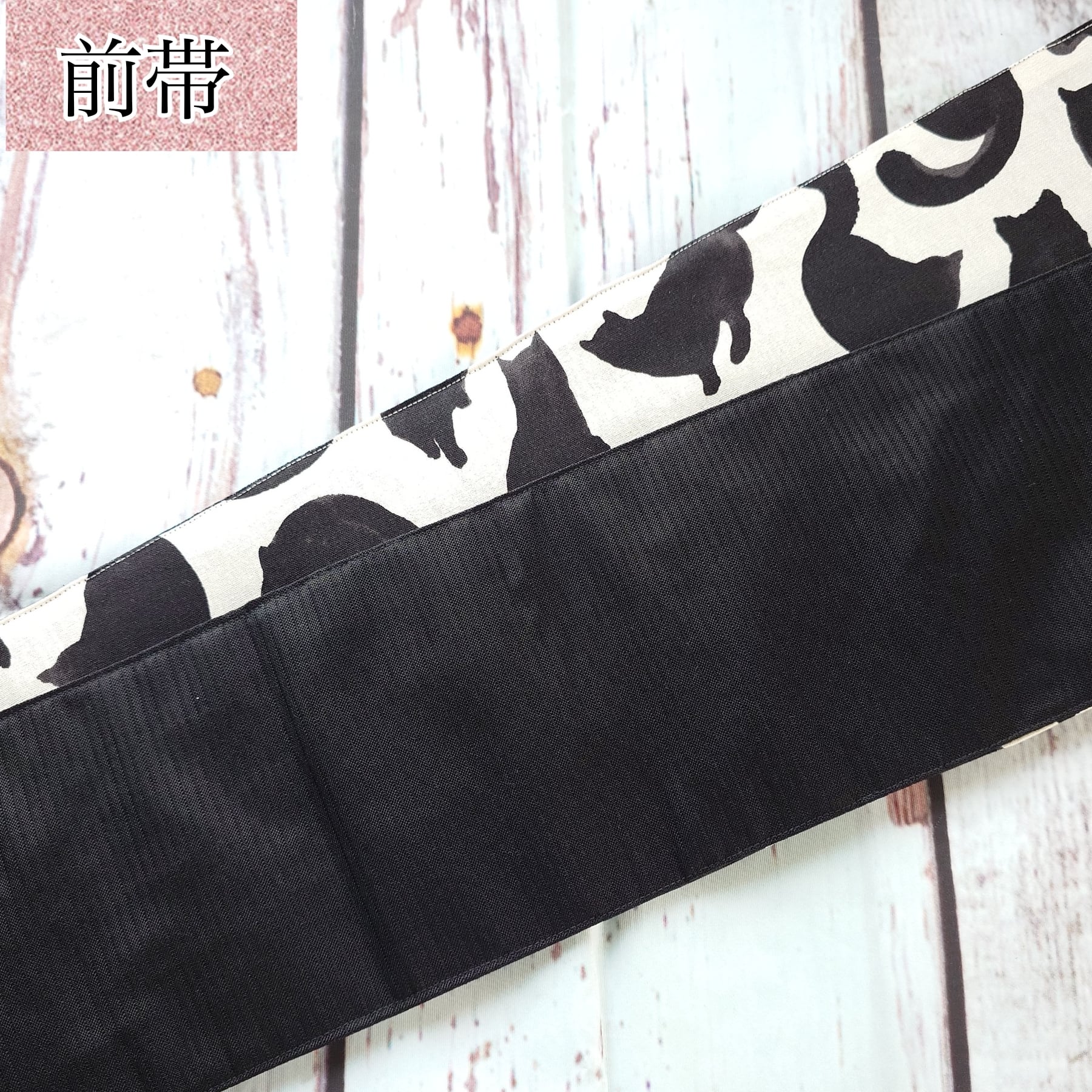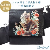 ob187 夏帯 フック付 二部式作り帯 一重太鼓結び 名古屋帯 簡単帯 着物 浴衣 猫