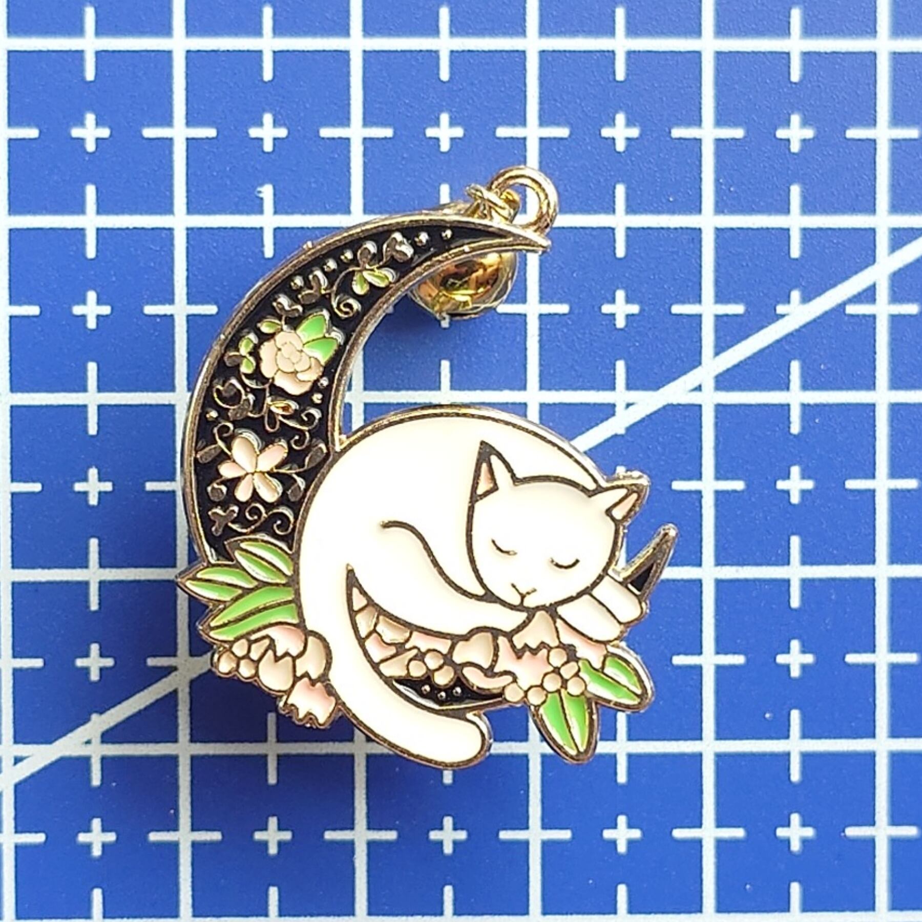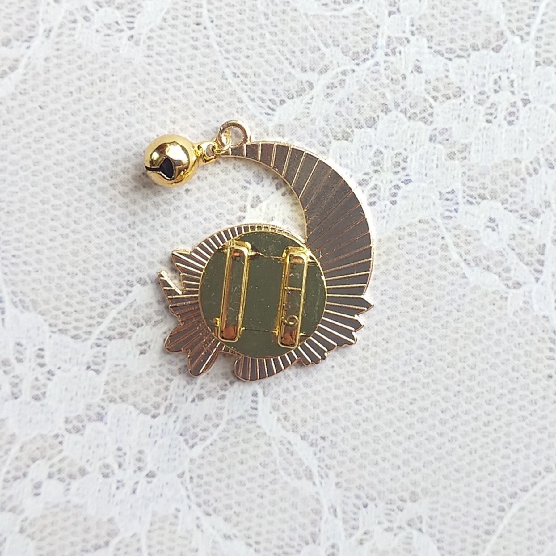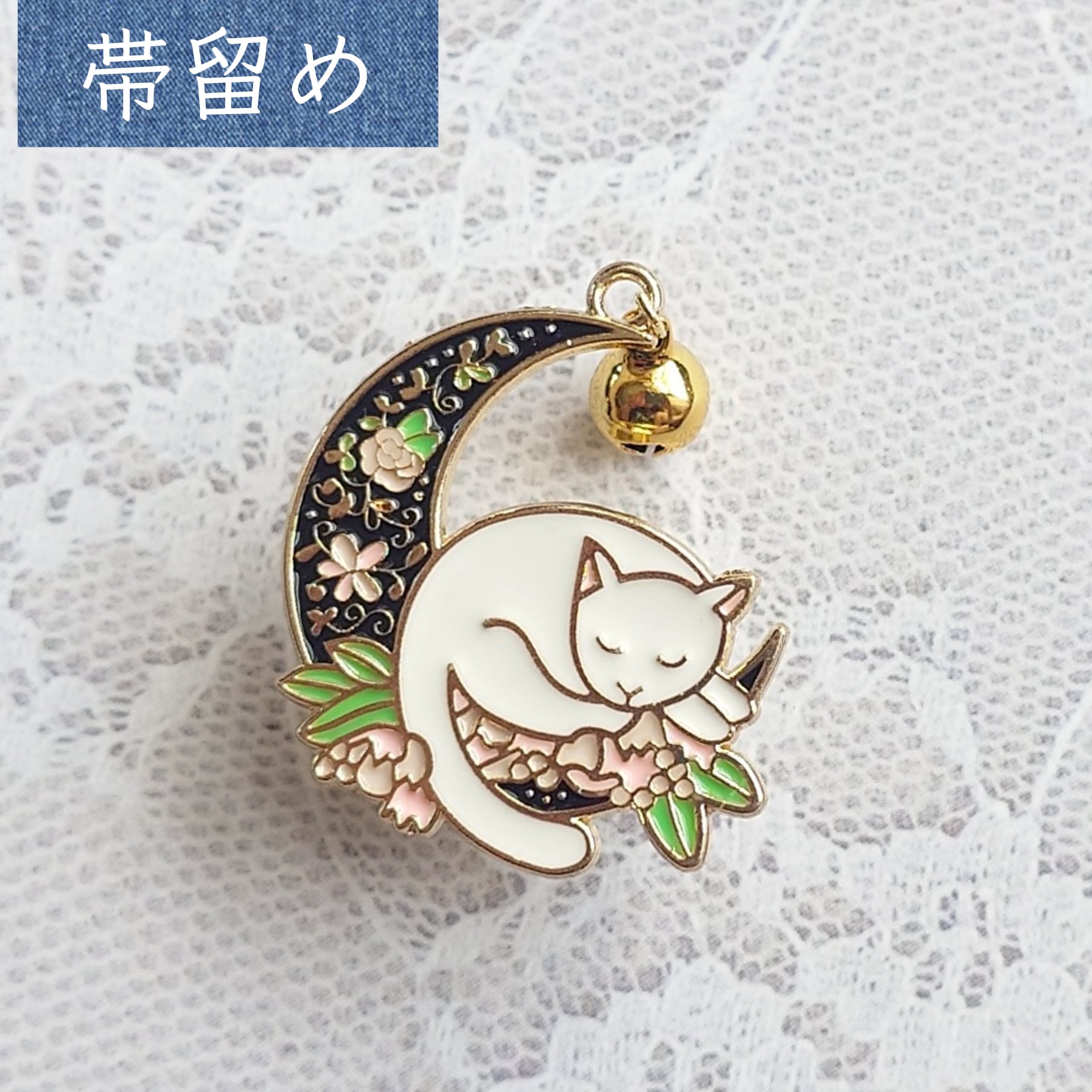 No.163 帯留め&帯締めセット 和装小物 三分紐用 お月様と猫 鈴付き