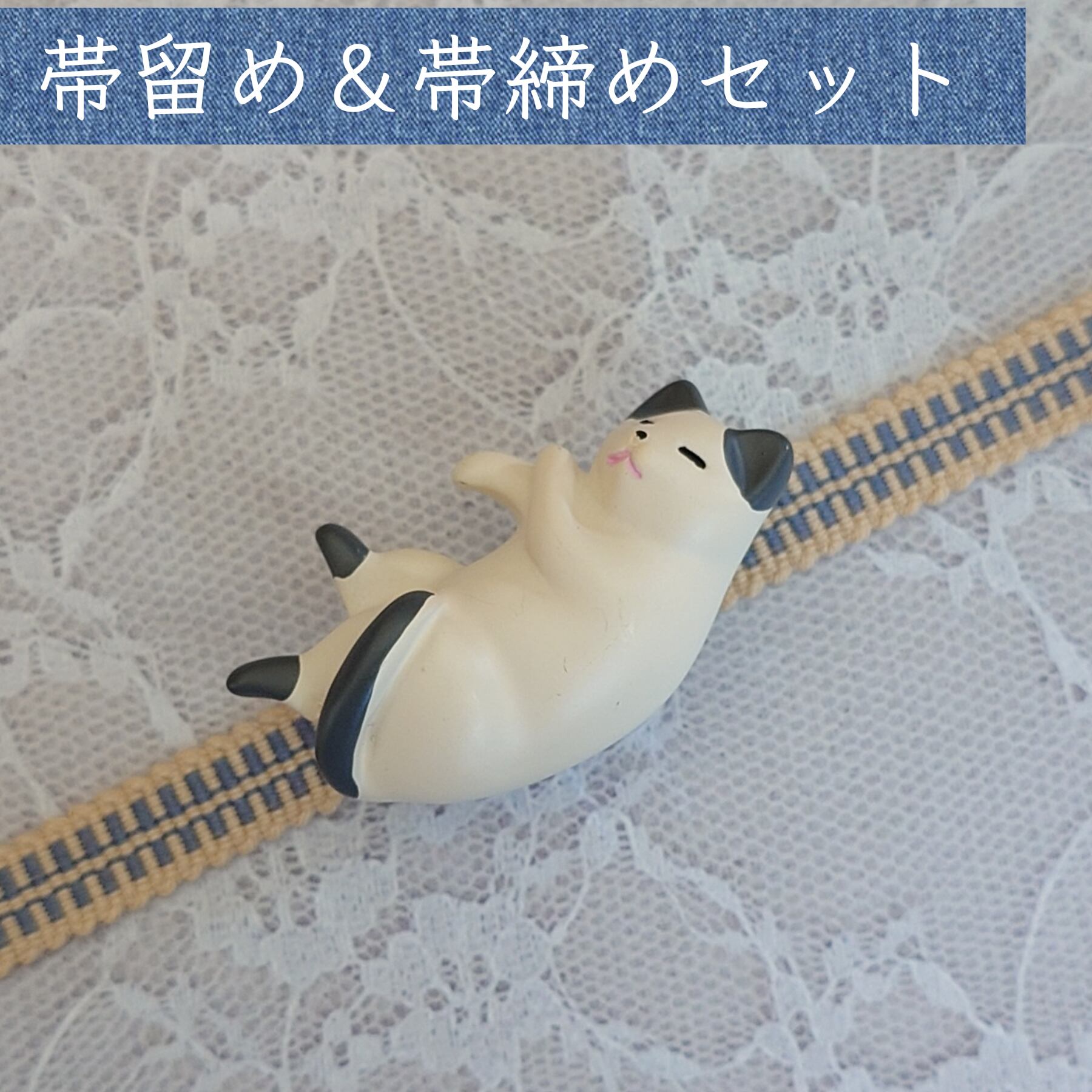 No.171 帯留め&帯締めセット 和装小物 三分紐用 猫