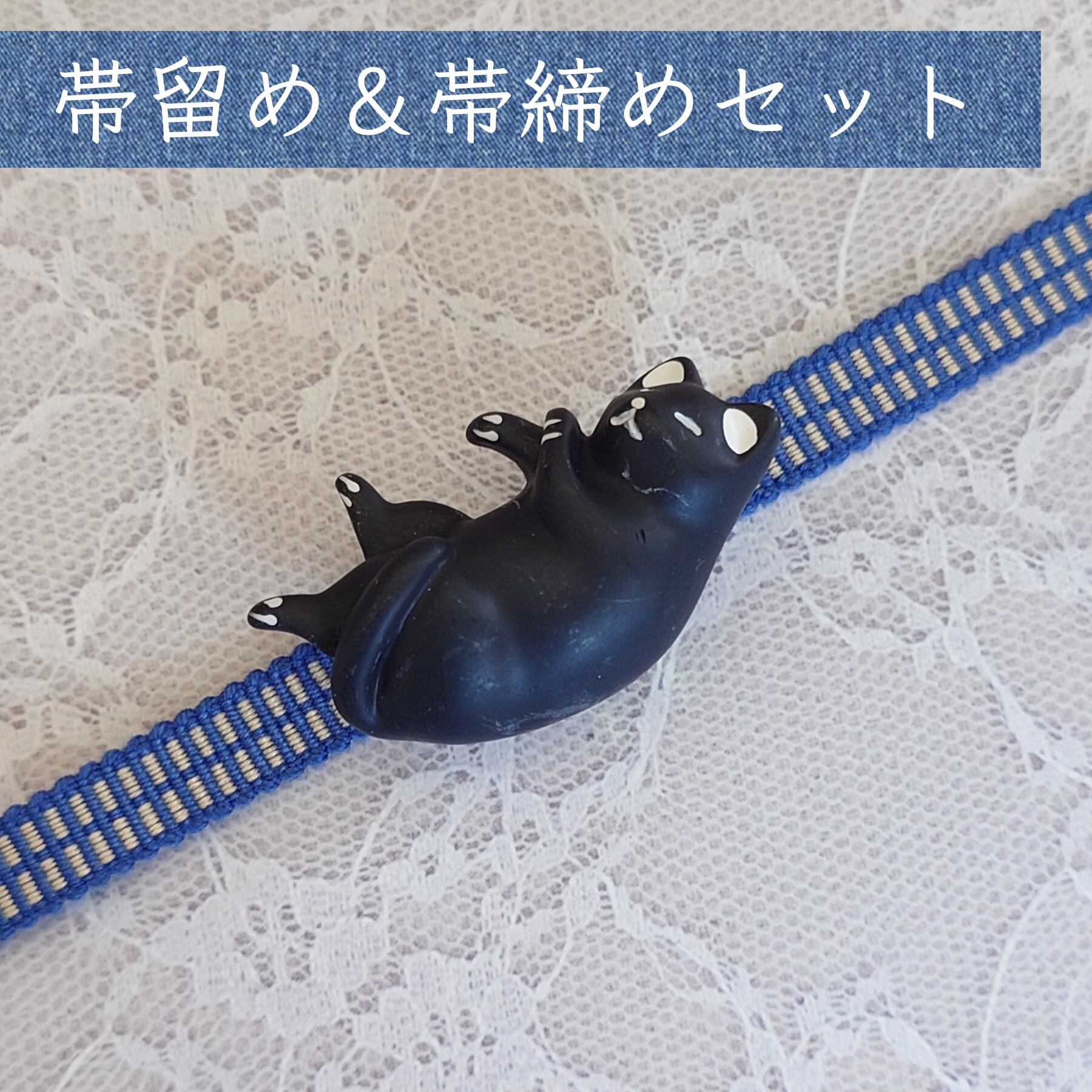 No.173 帯留め&帯締めセット 和装小物 三分紐用 猫
