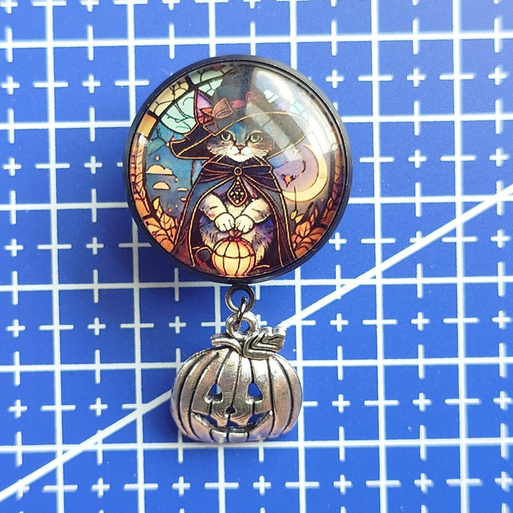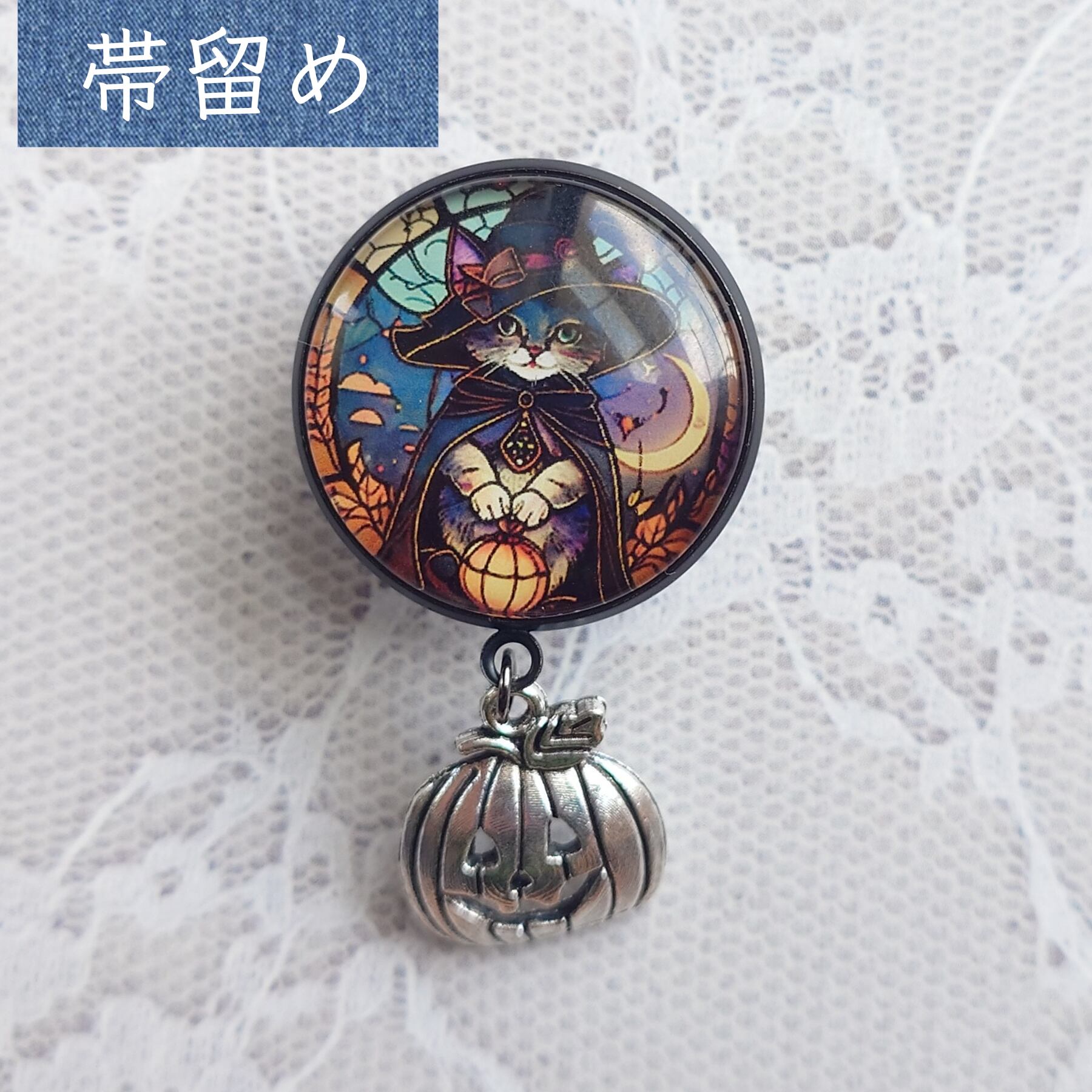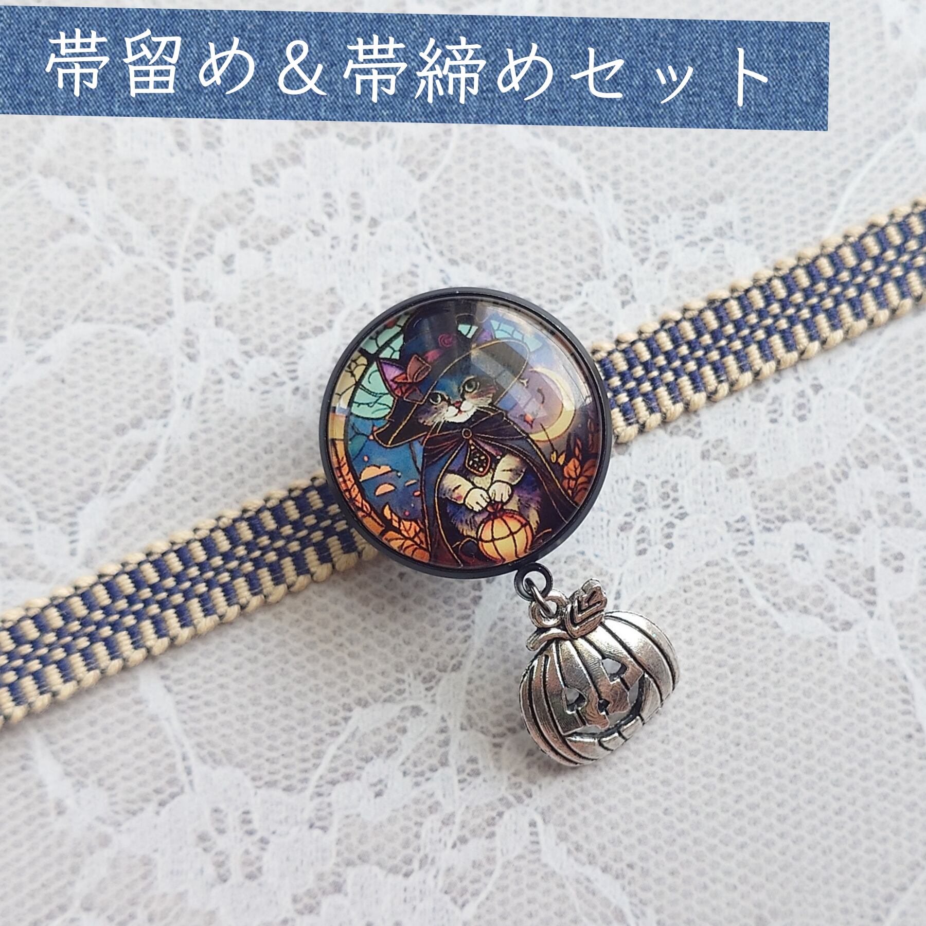 No.176 帯留め&帯締めセット 和装小物 三分紐用 ハロウィン 黒猫の魔女