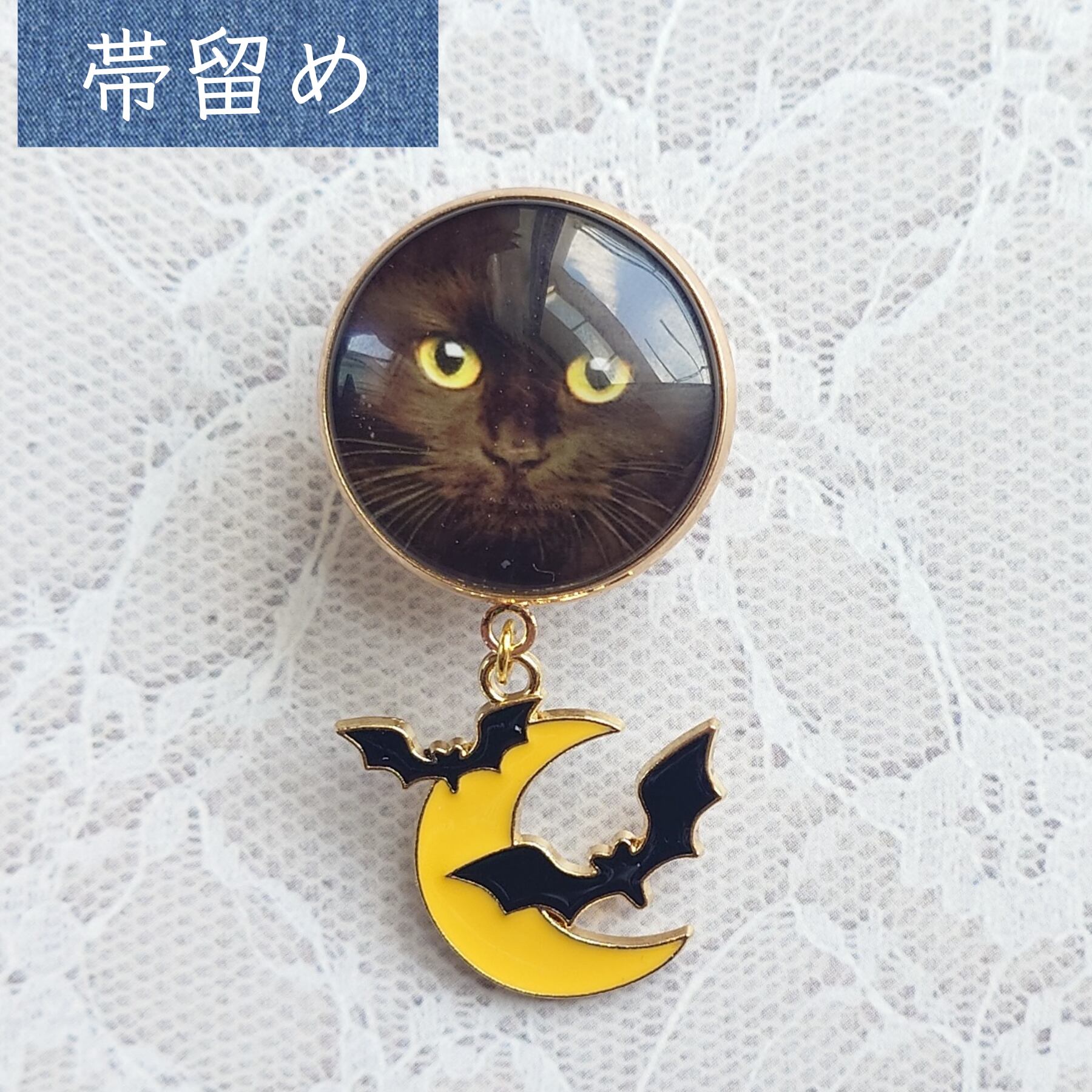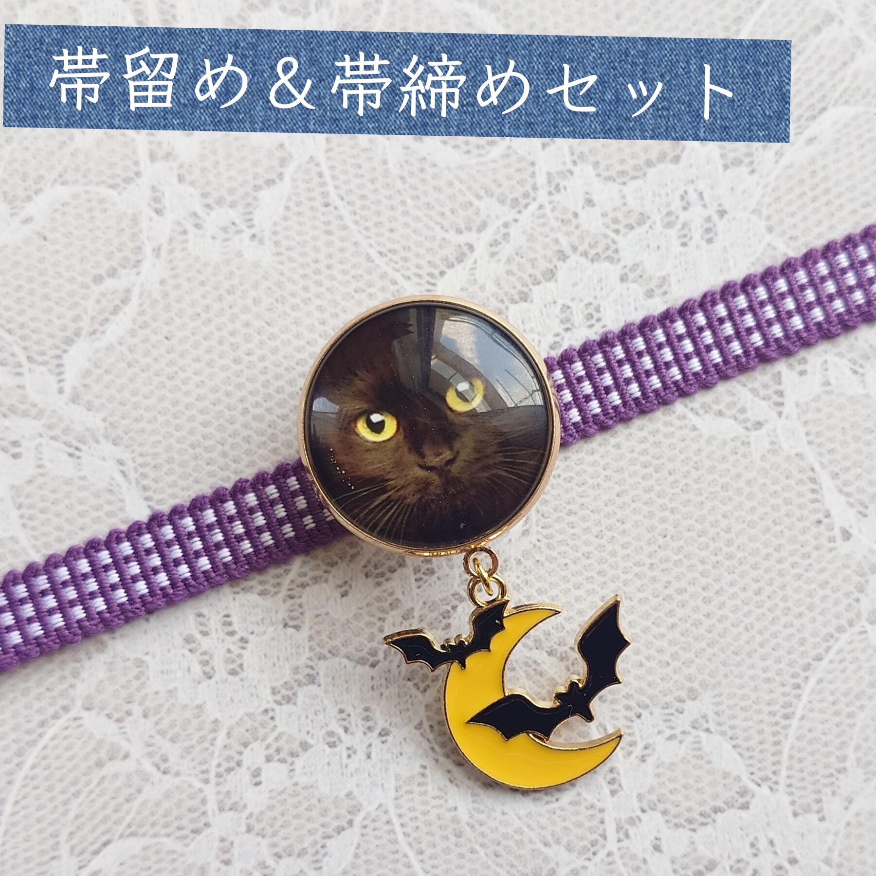 No.178 帯留め&帯締めセット 和装小物 三分紐用 ハロウィン 黒猫