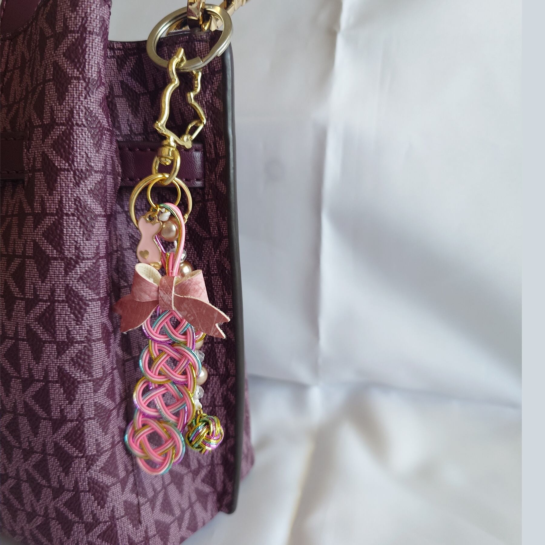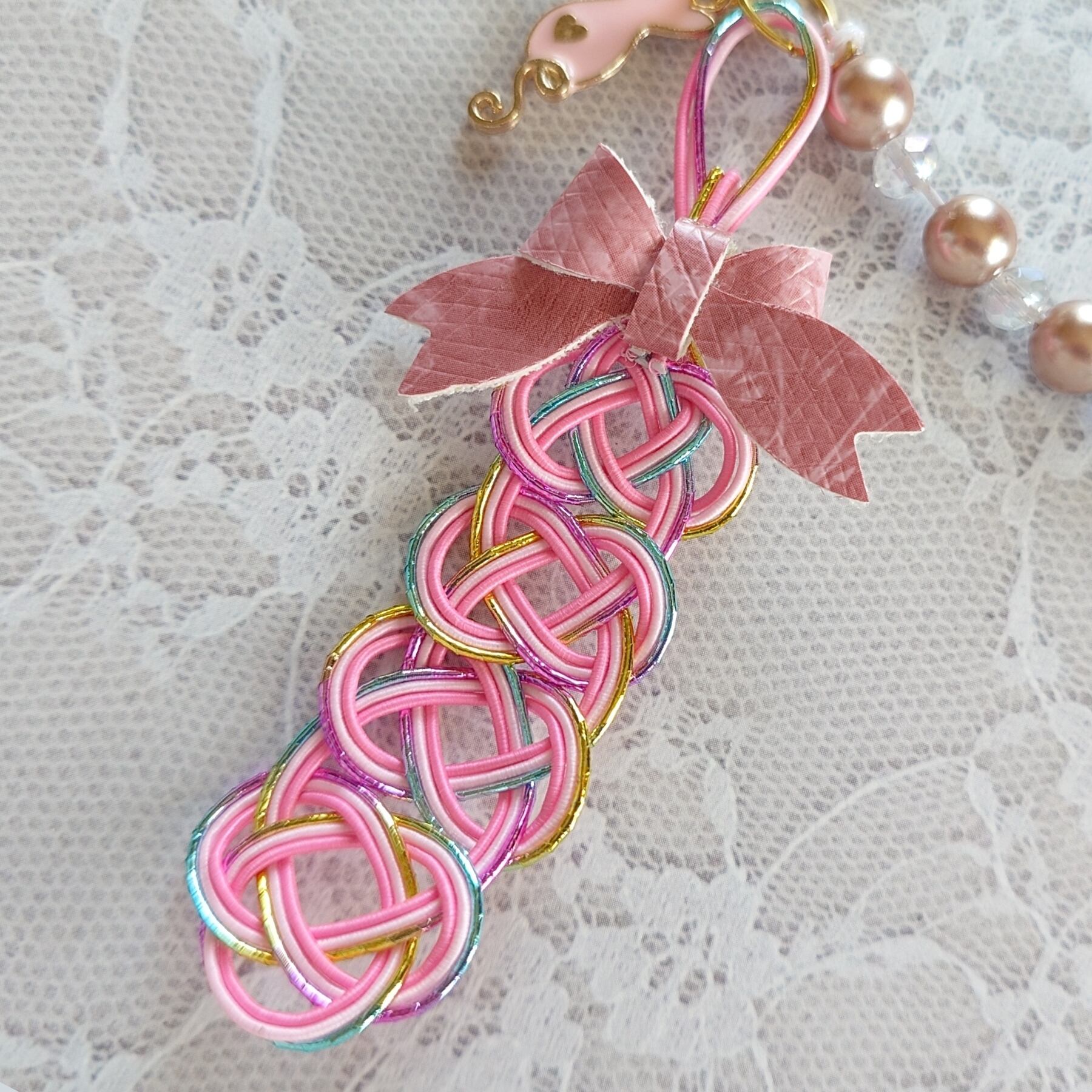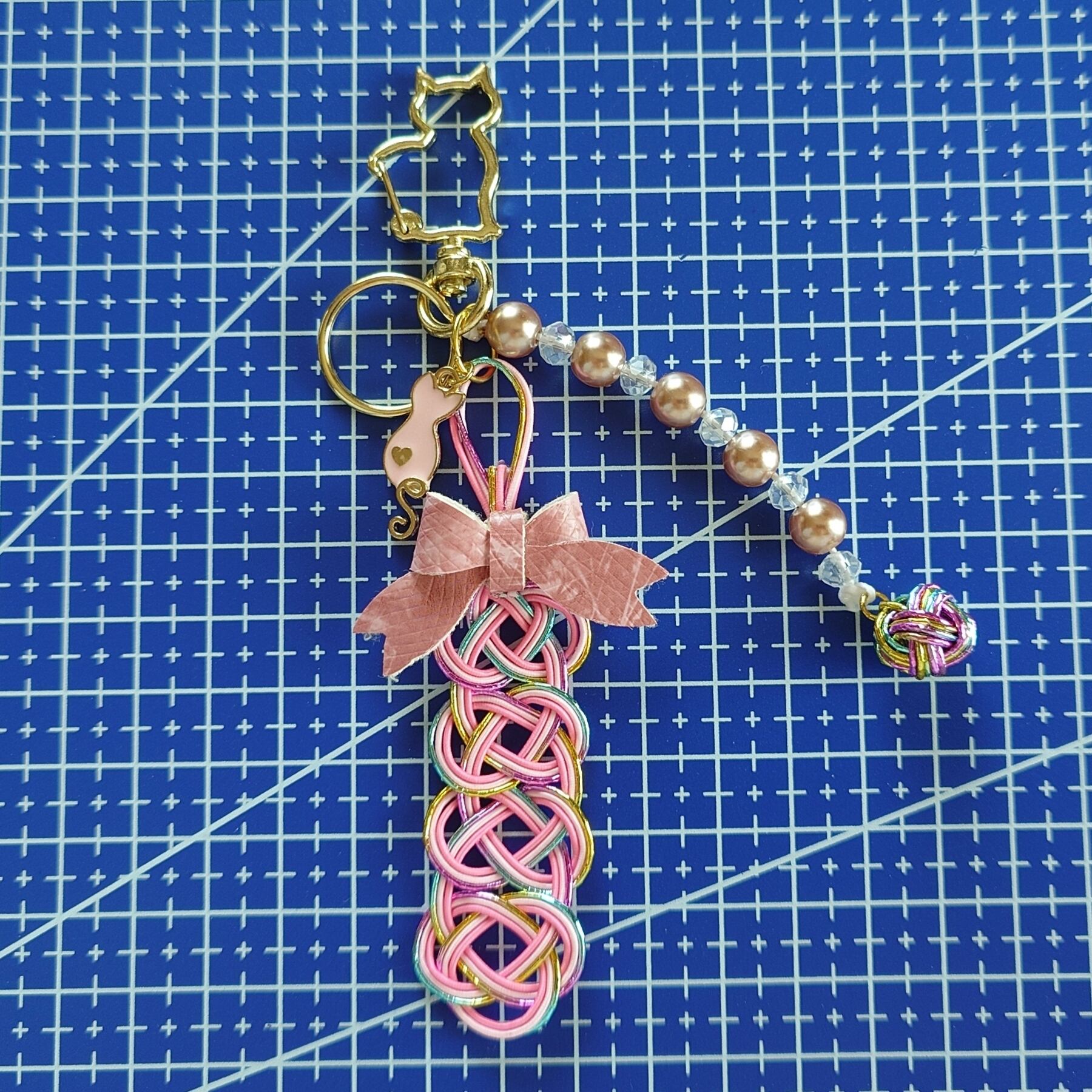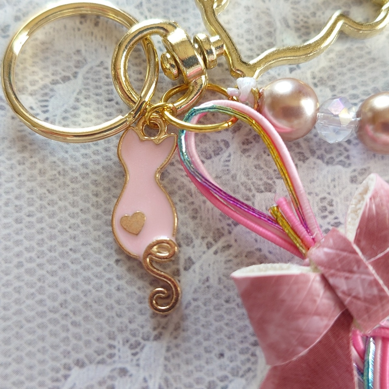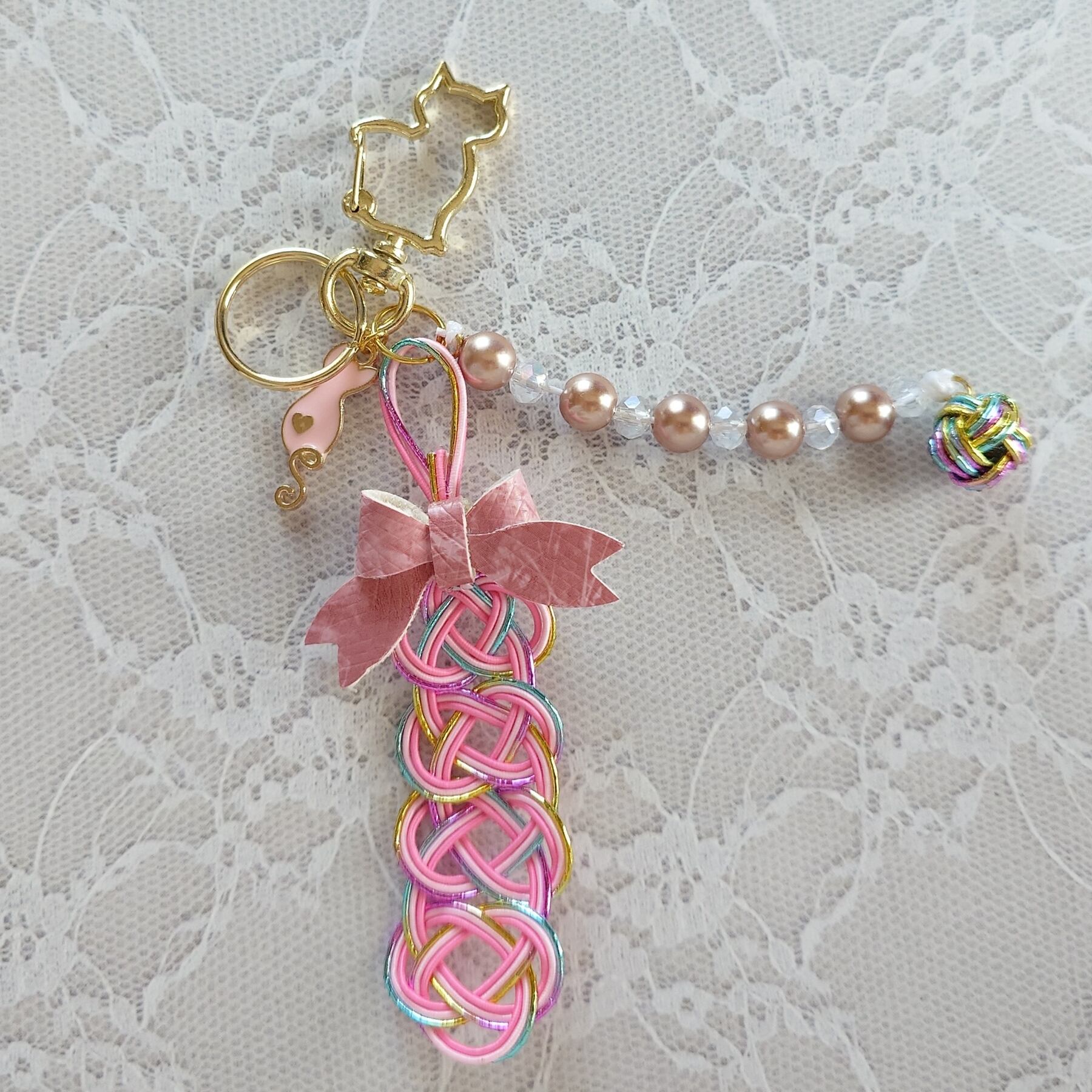 No.5 バッグキーリング チャーム 猫とリボン 水引