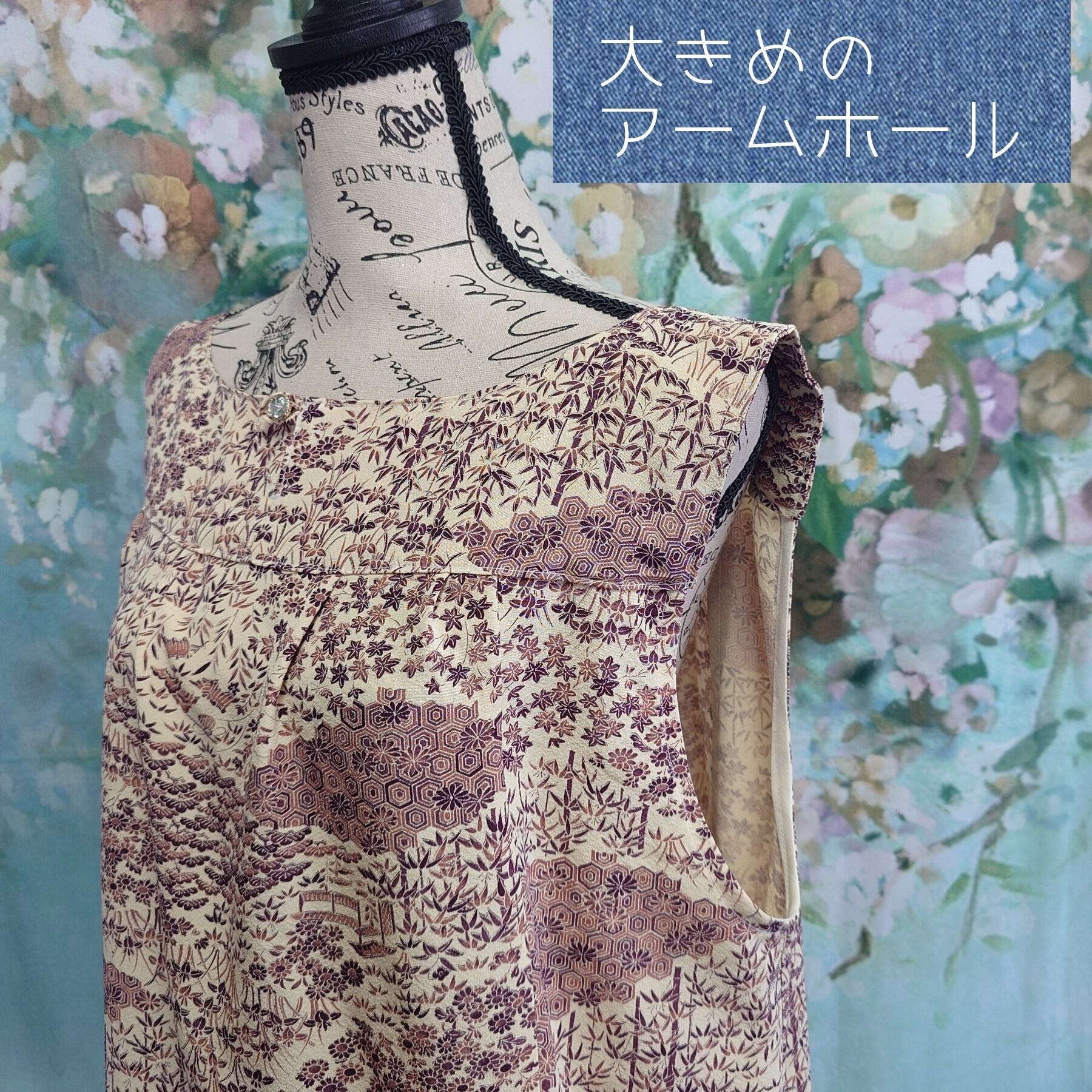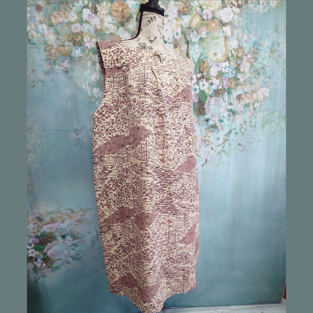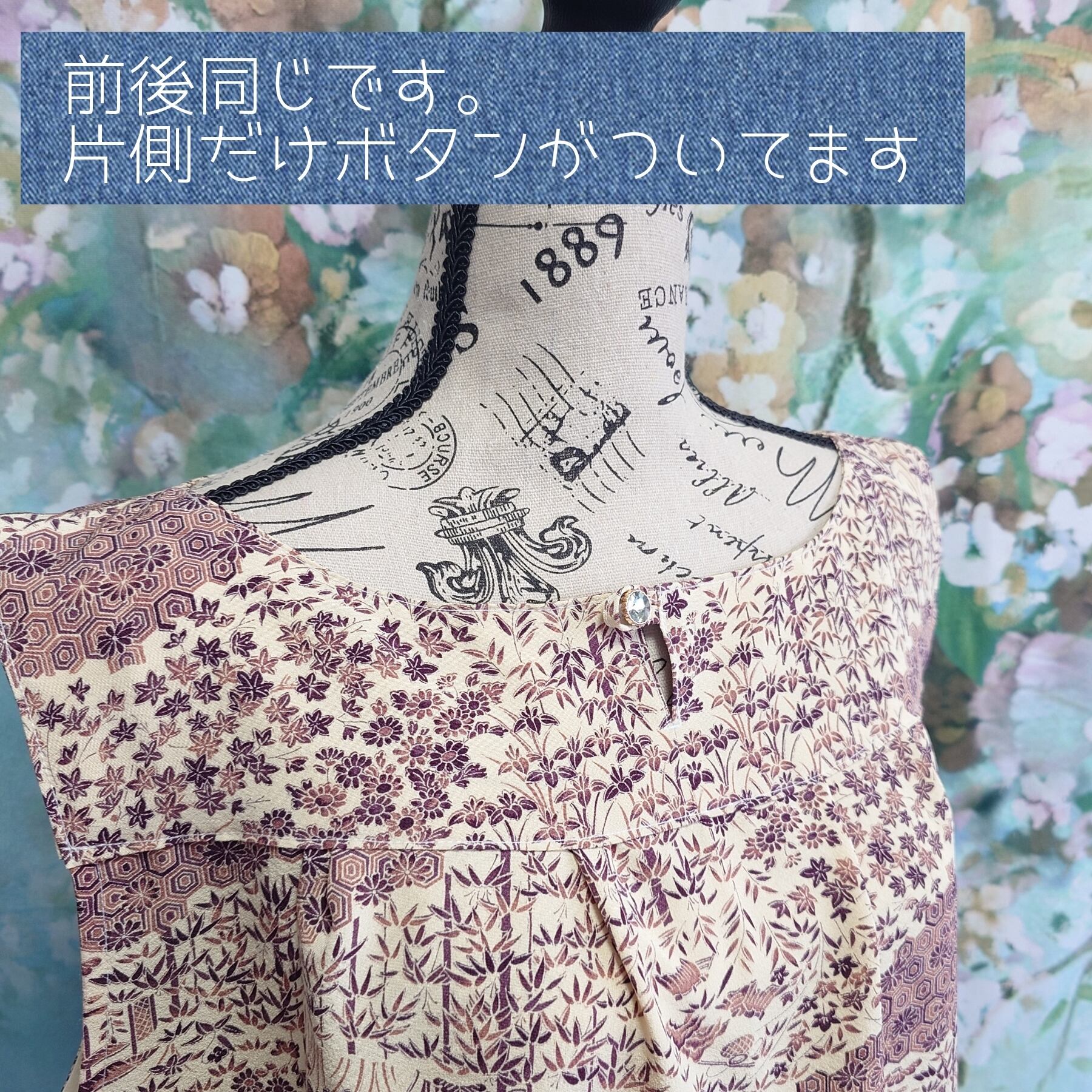 d83 ノースリーブ ワンピース ボートネックタイプ 着物リメイク 小紋リメイク 3Lサイズ
