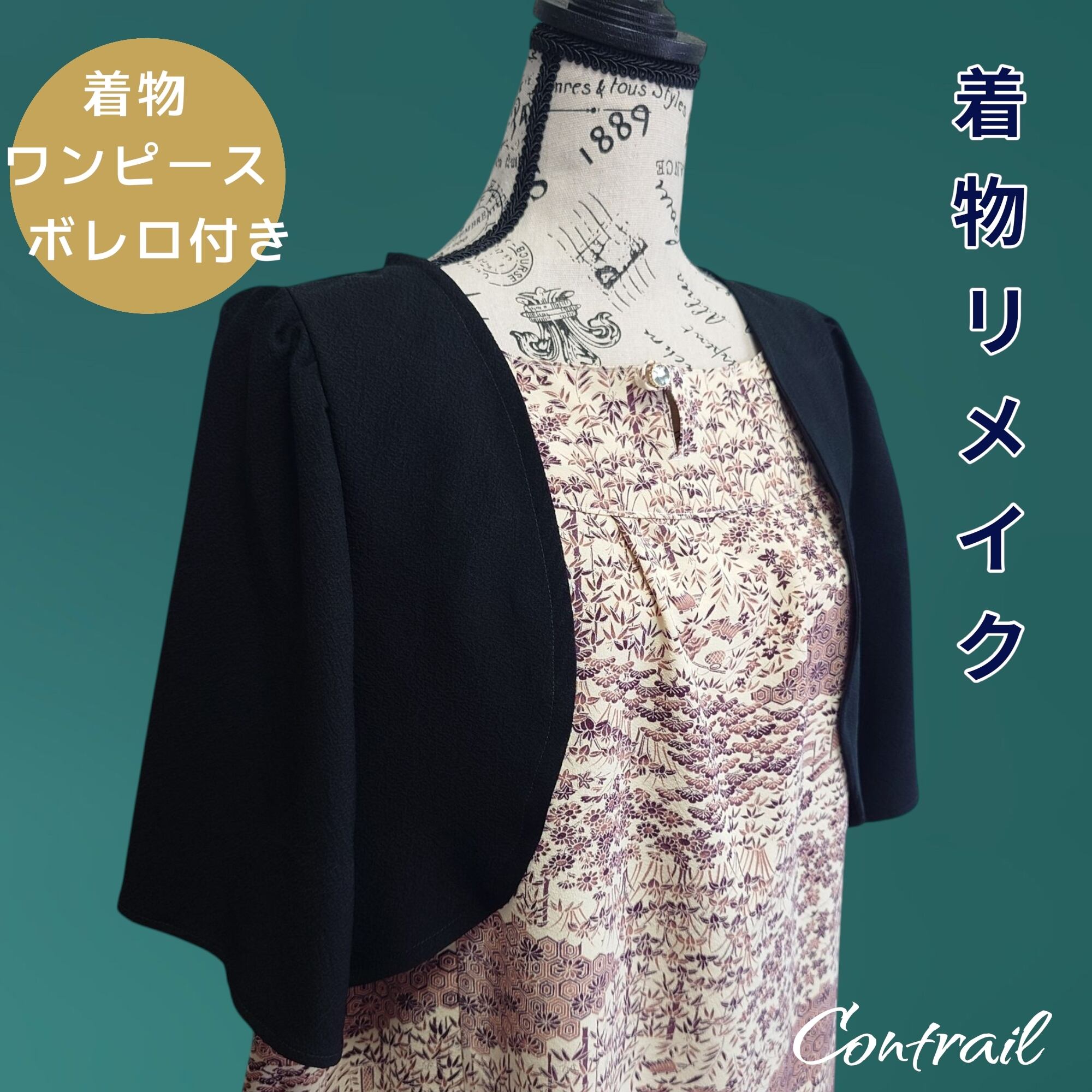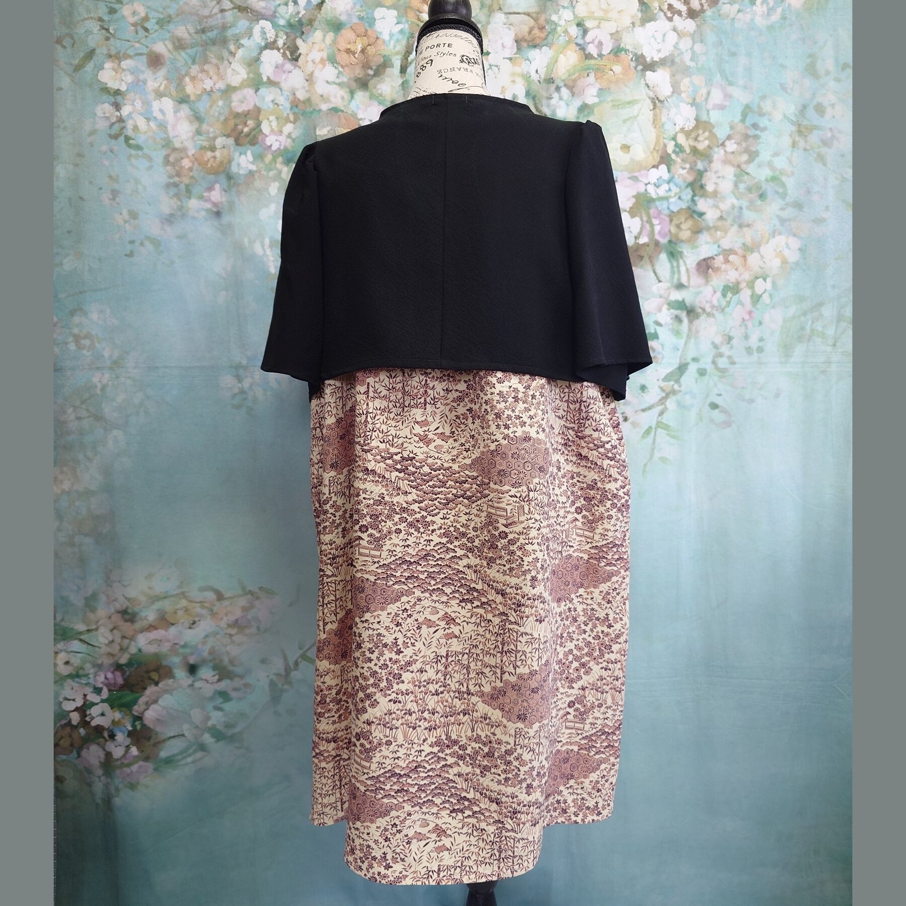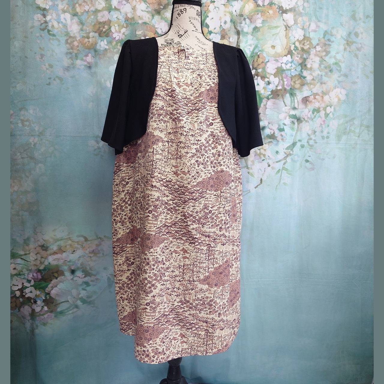 d83 ノースリーブ ワンピース ボートネックタイプ 着物リメイク 小紋リメイク 3Lサイズ