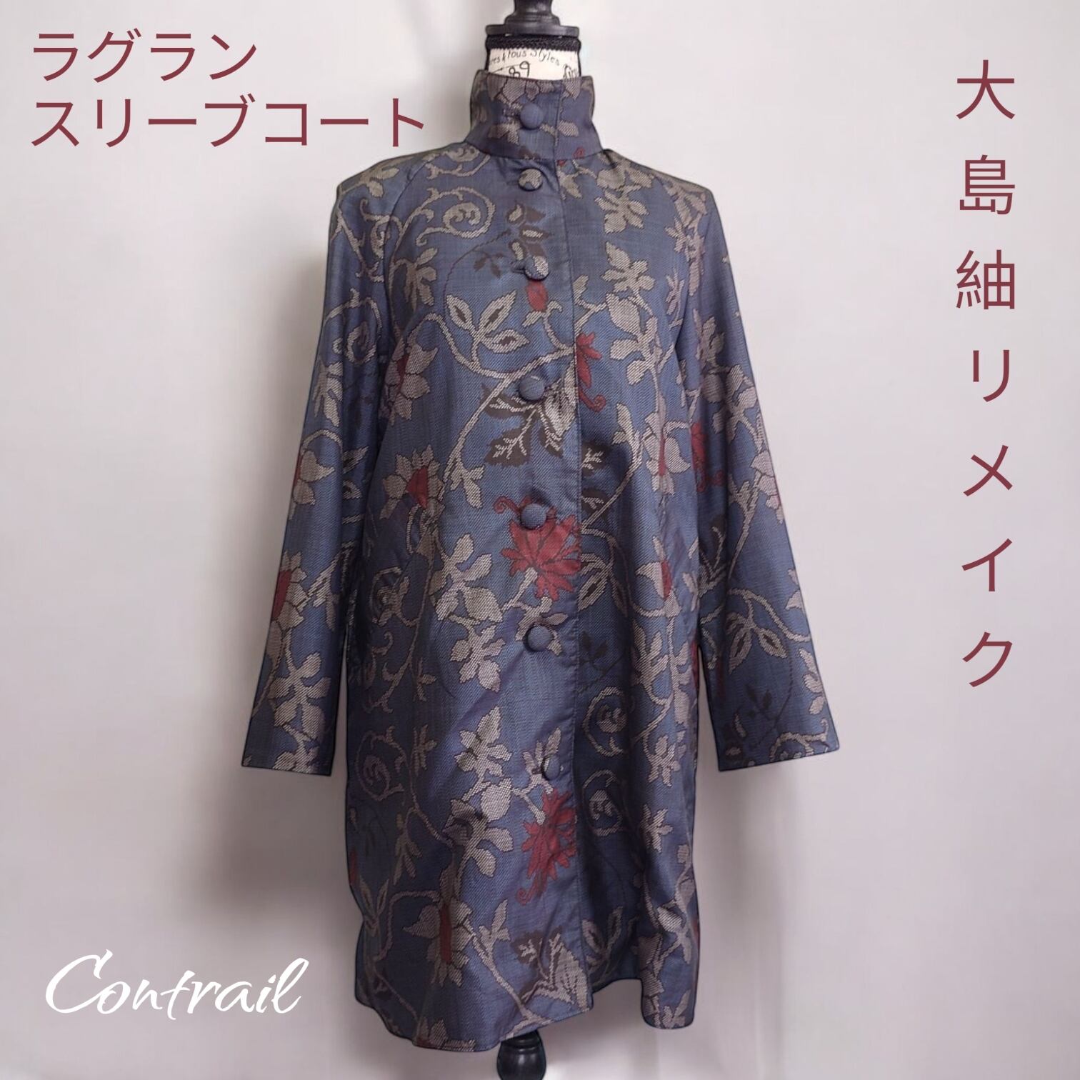 **【大島紬リメイク】ラグランスリーブ 総裏付きコート**