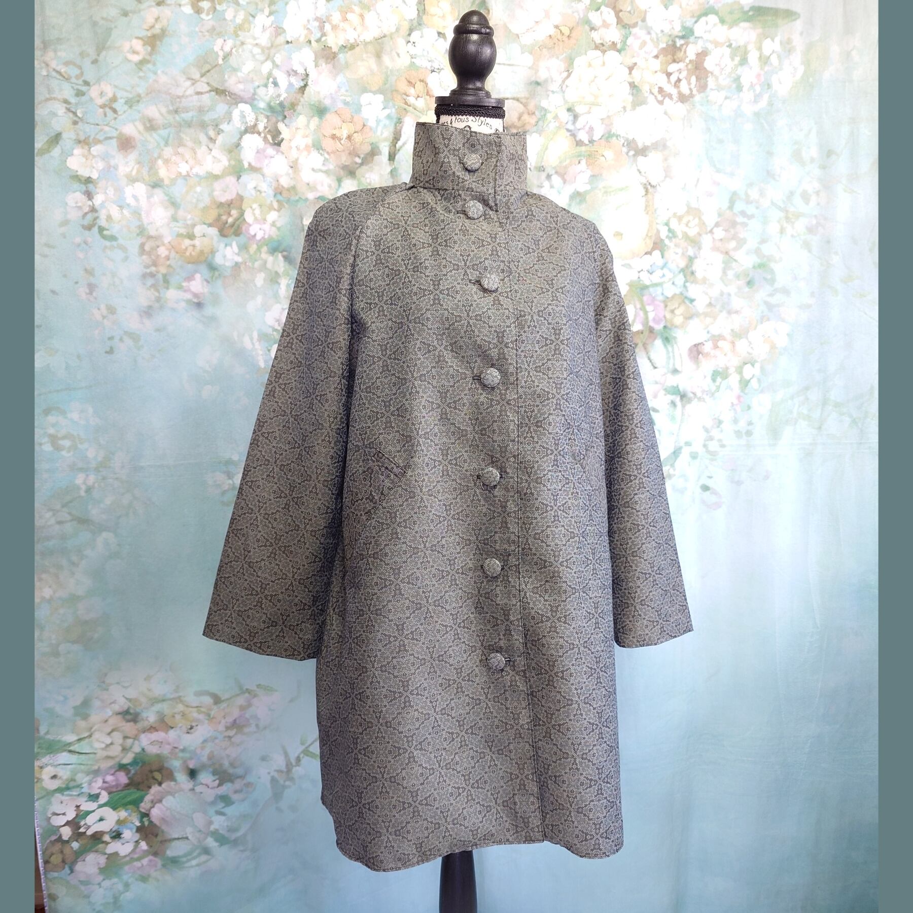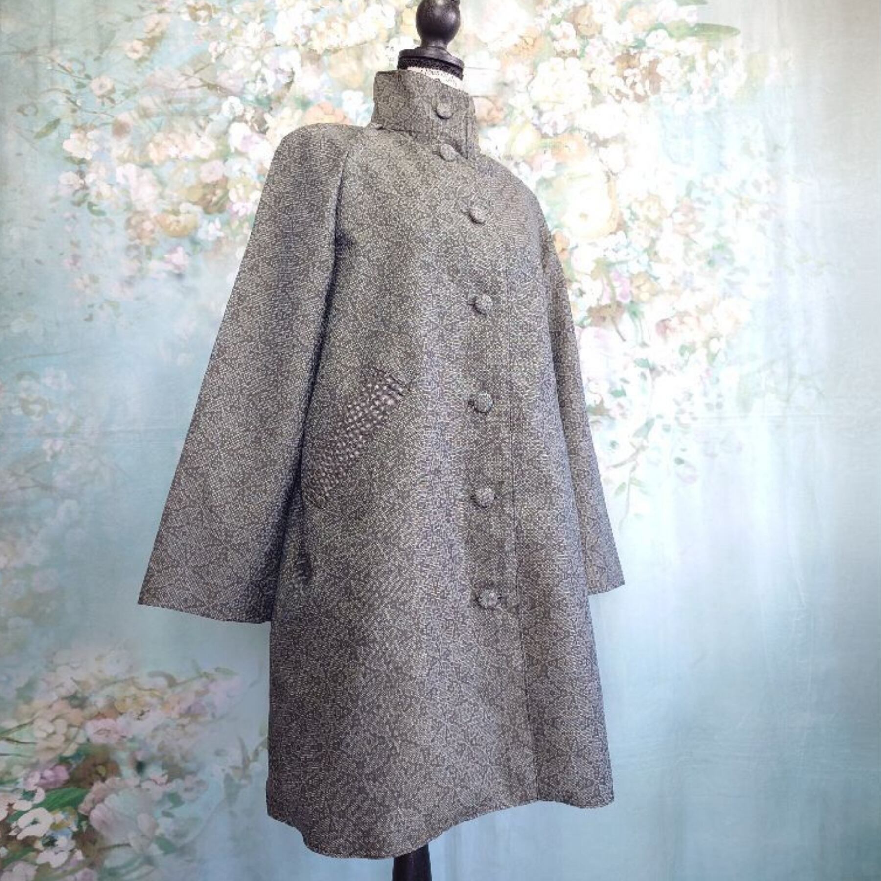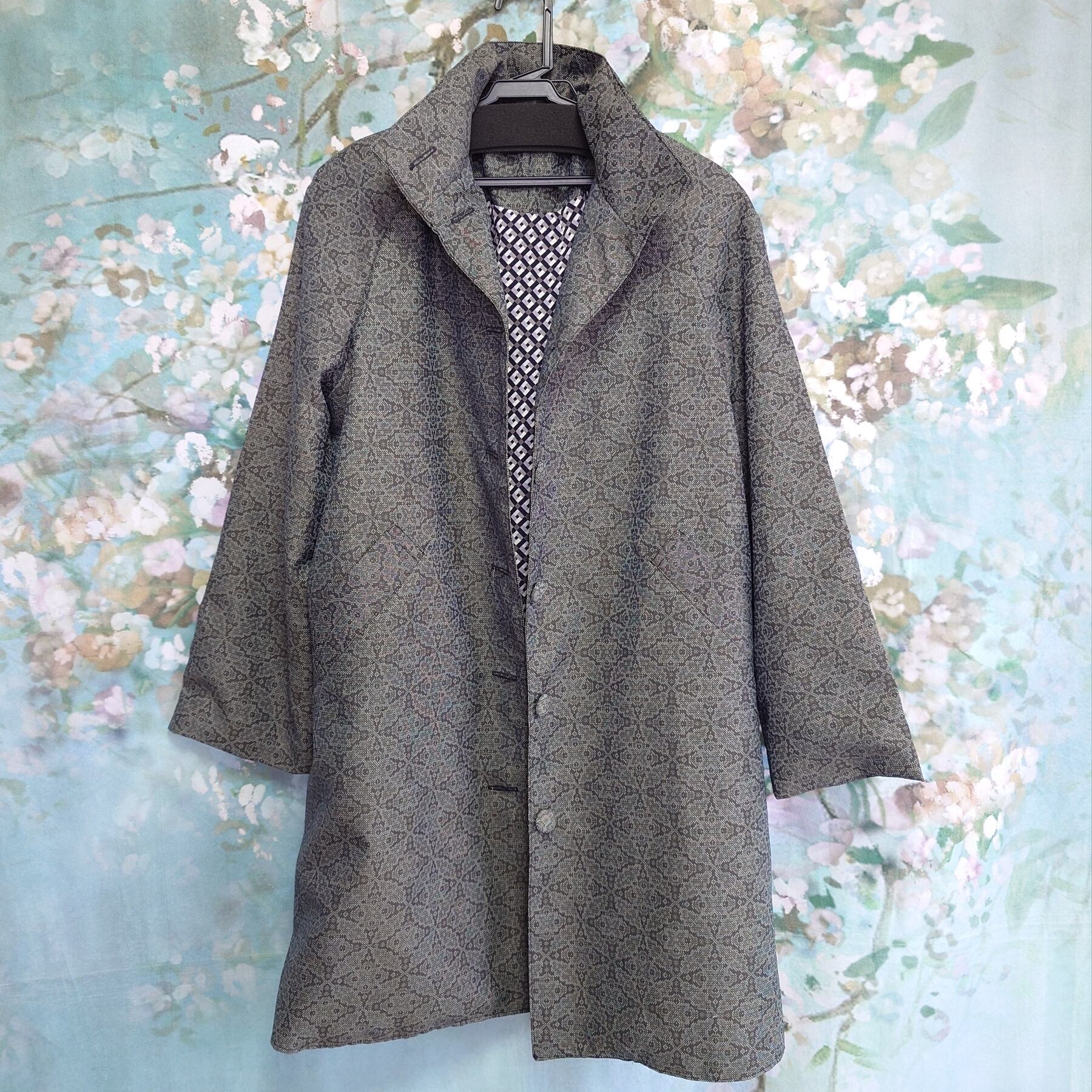 伝統的な紬の風合いを活かした、温かみのあるウール混素材のリメイクコートです。