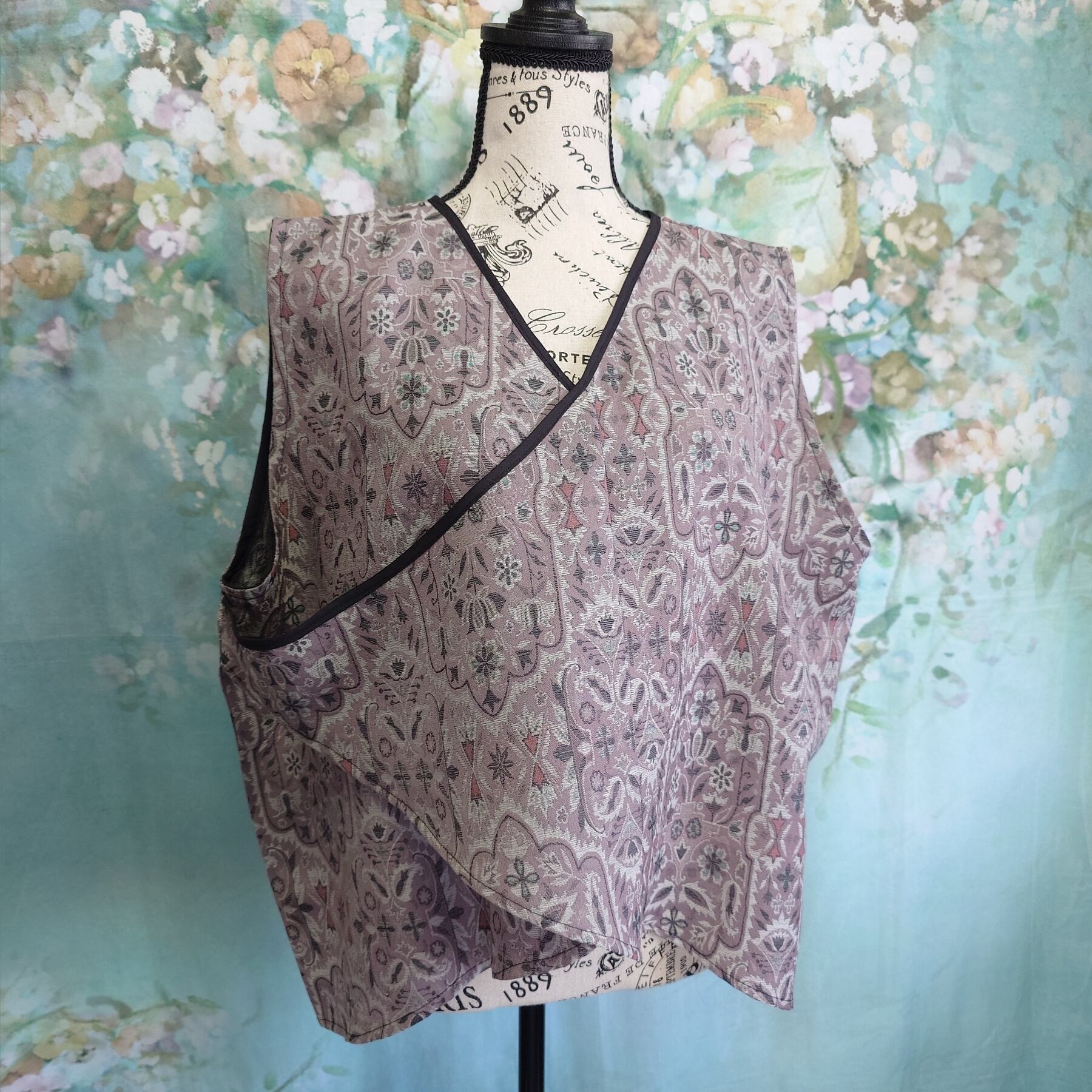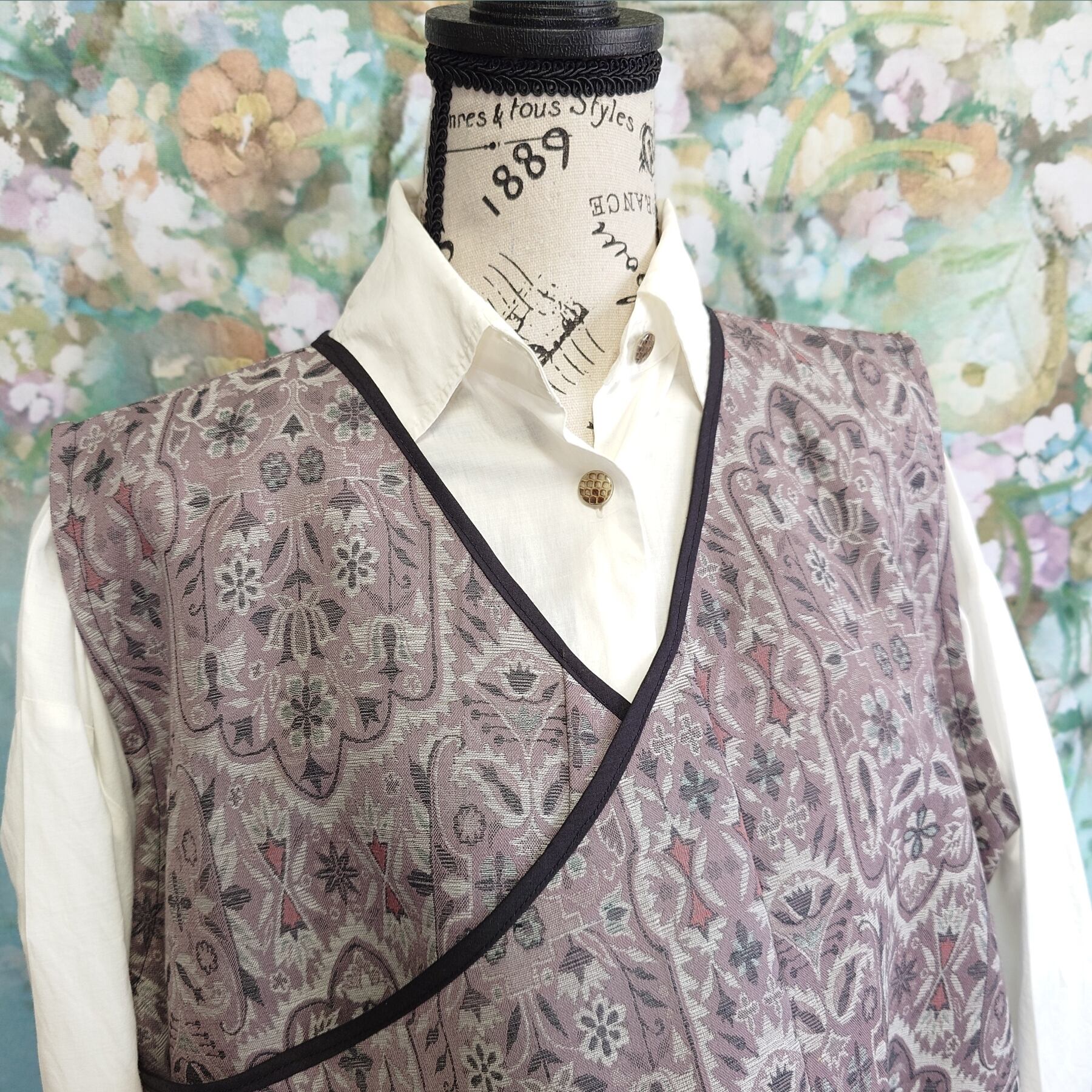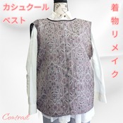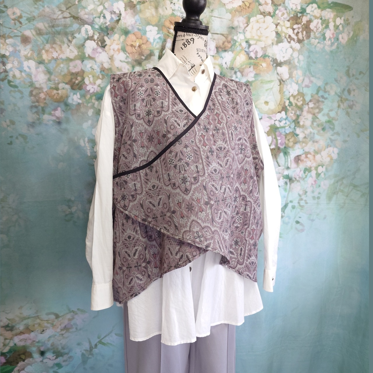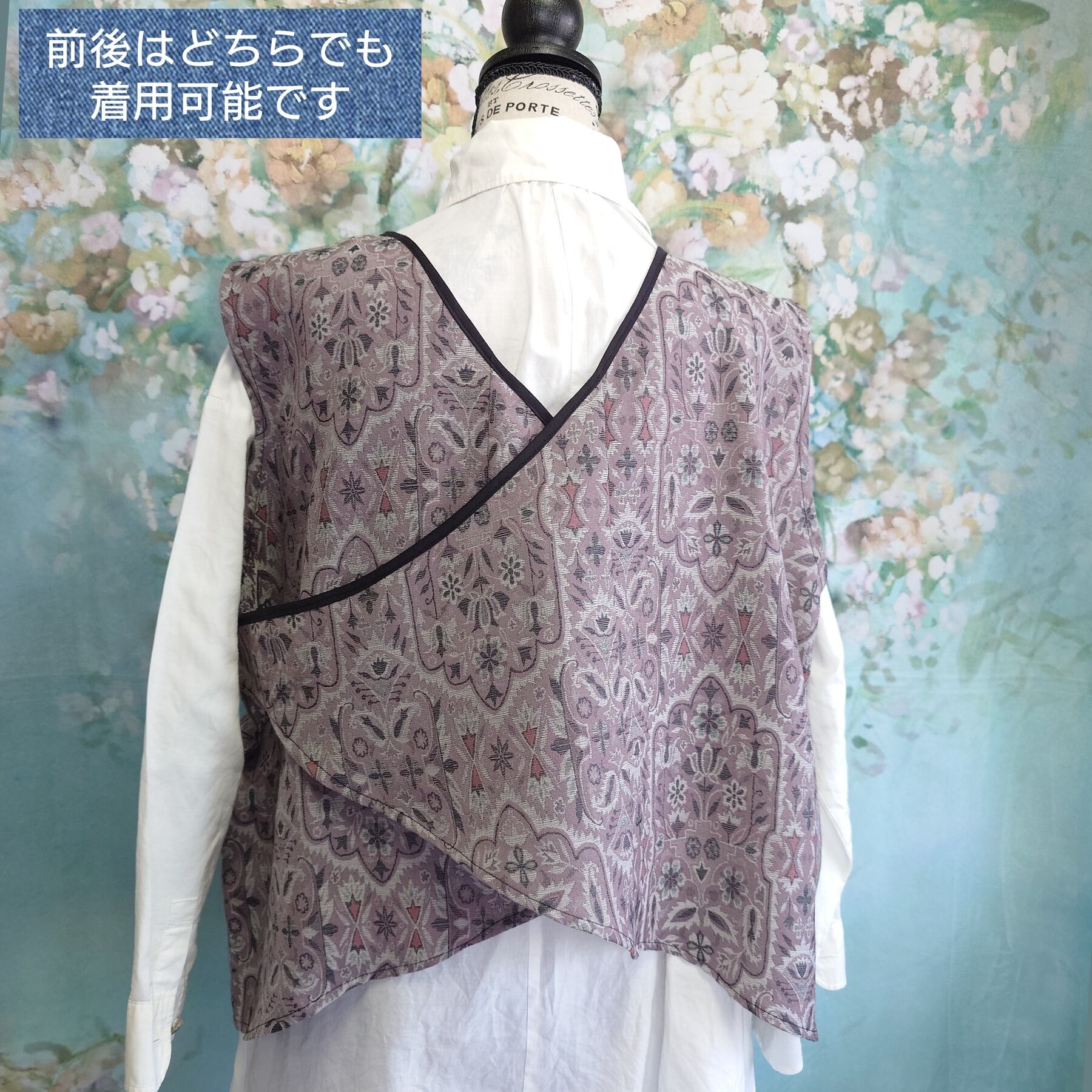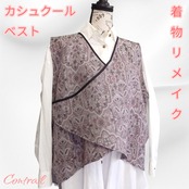 ●伝統的な紬織りの風合いを活かした、ウール混素材のリメイクのカシュクールベストです。