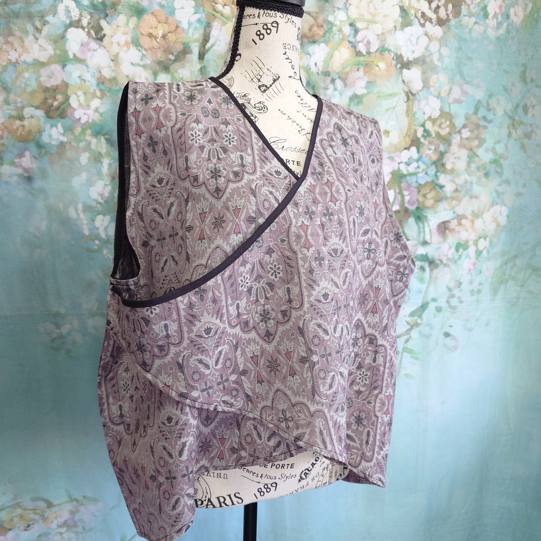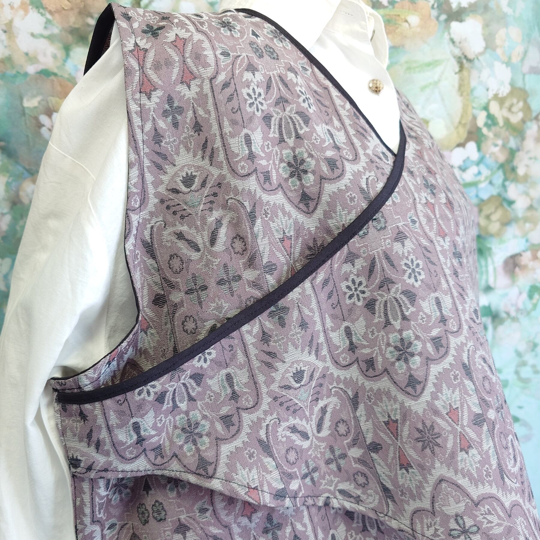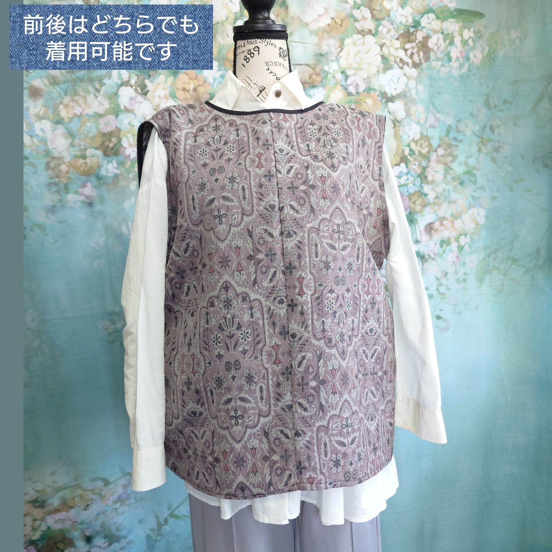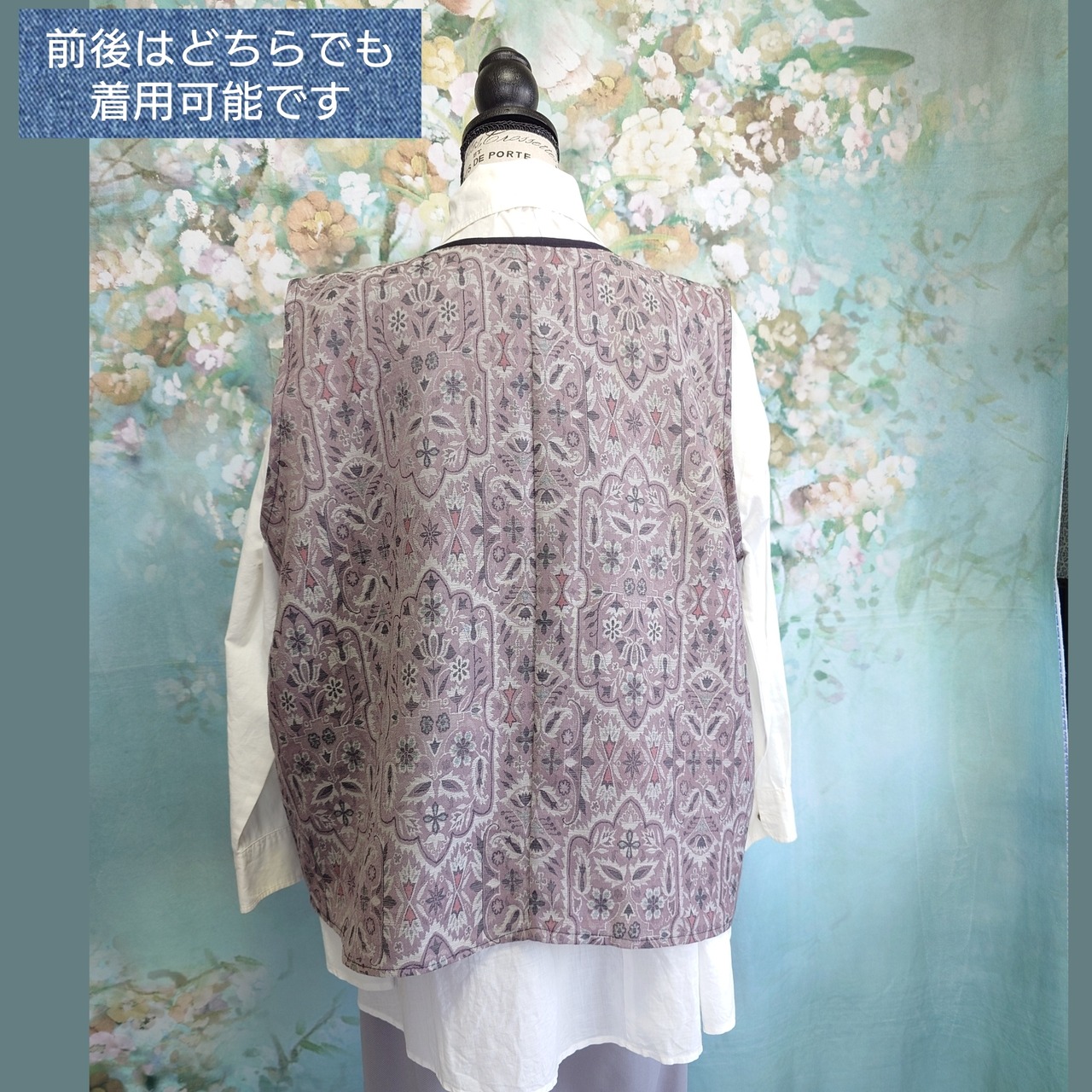 ●伝統的な紬織りの風合いを活かした、ウール混素材のリメイクのカシュクールベストです。