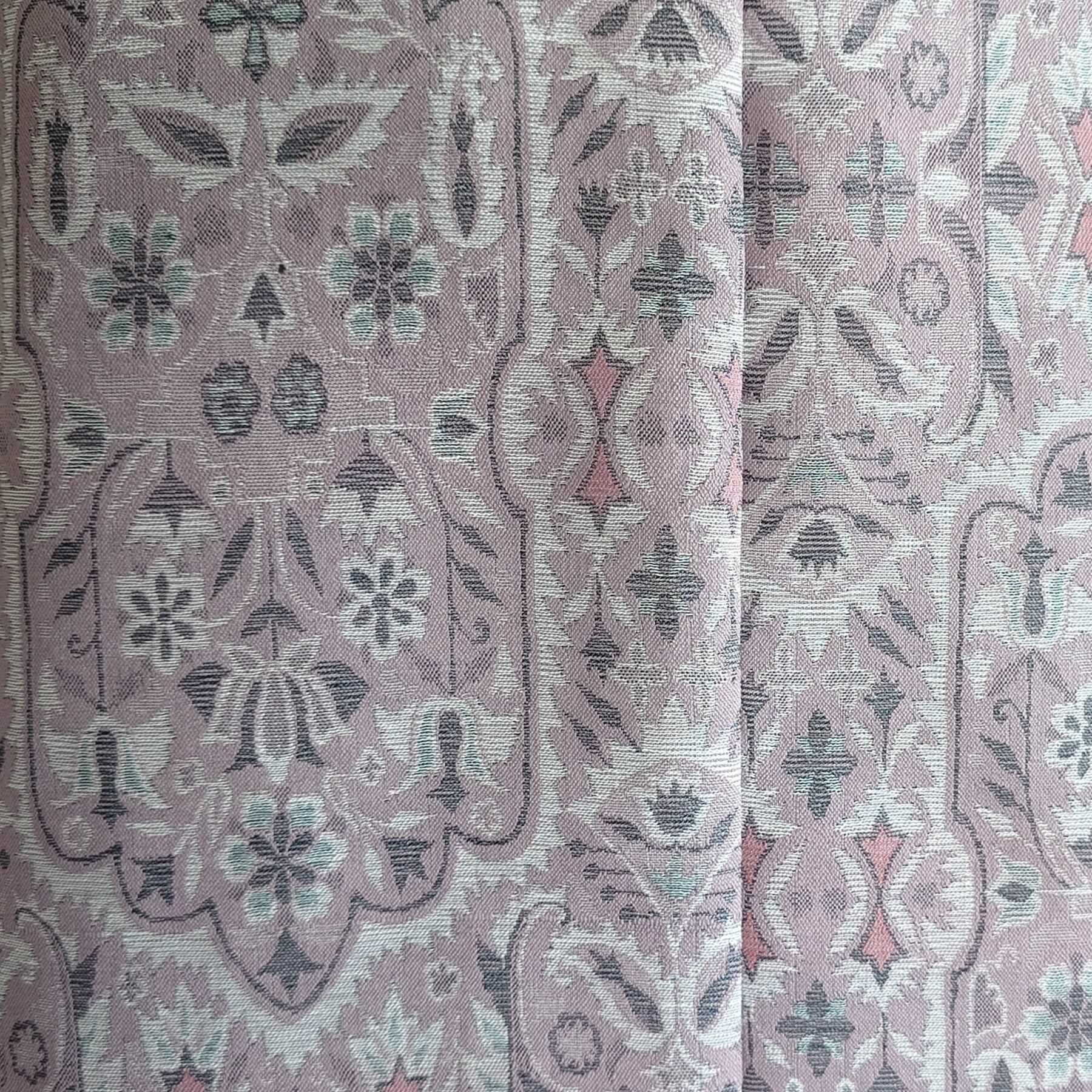 ●柔らかなシルバーグレーに、繊細な花柄や幾何学模様が織り込まれ、落ち着いた上品な印象を与えます。