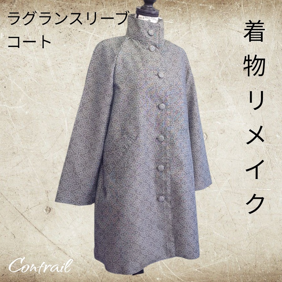 f8 着物リメイクロングコート 正絹 小紋 総裏付