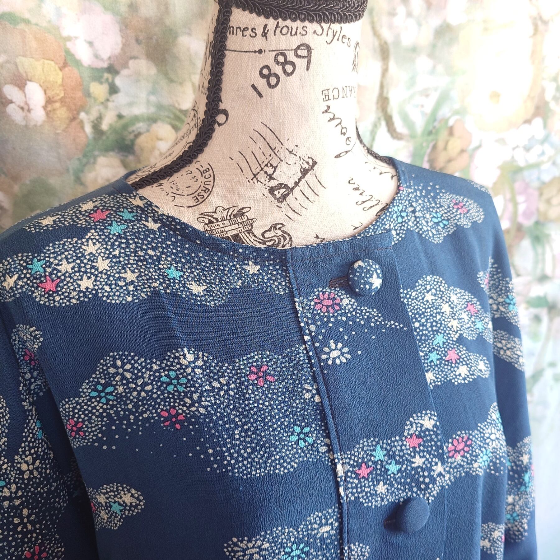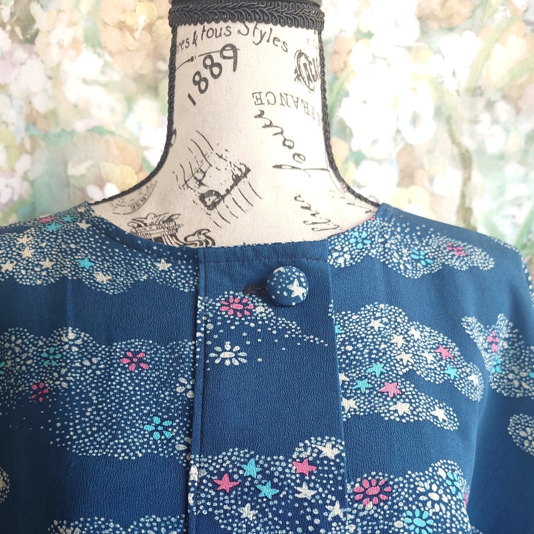 表地は、繊細な星と花の文様が浮かぶ正絹小紋。