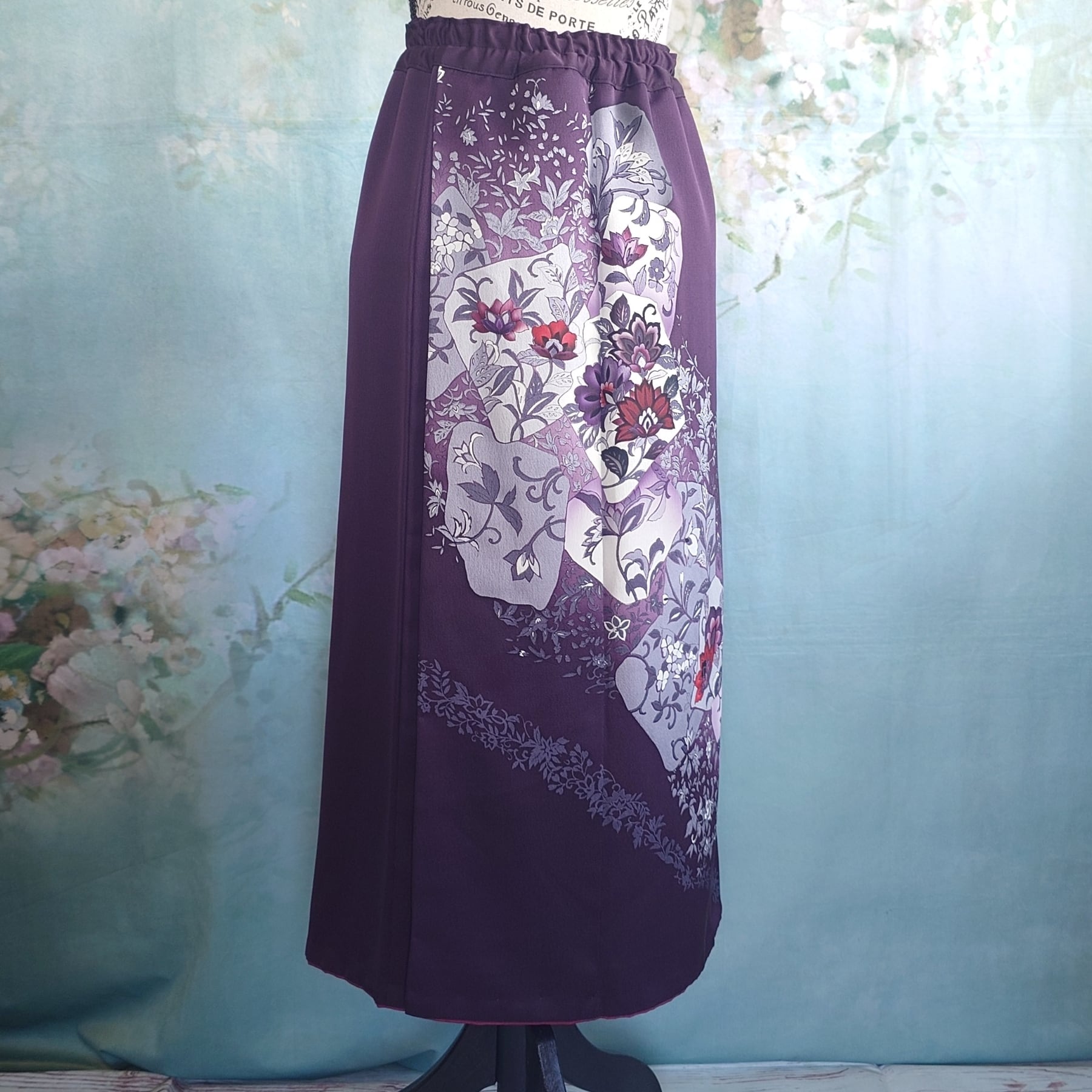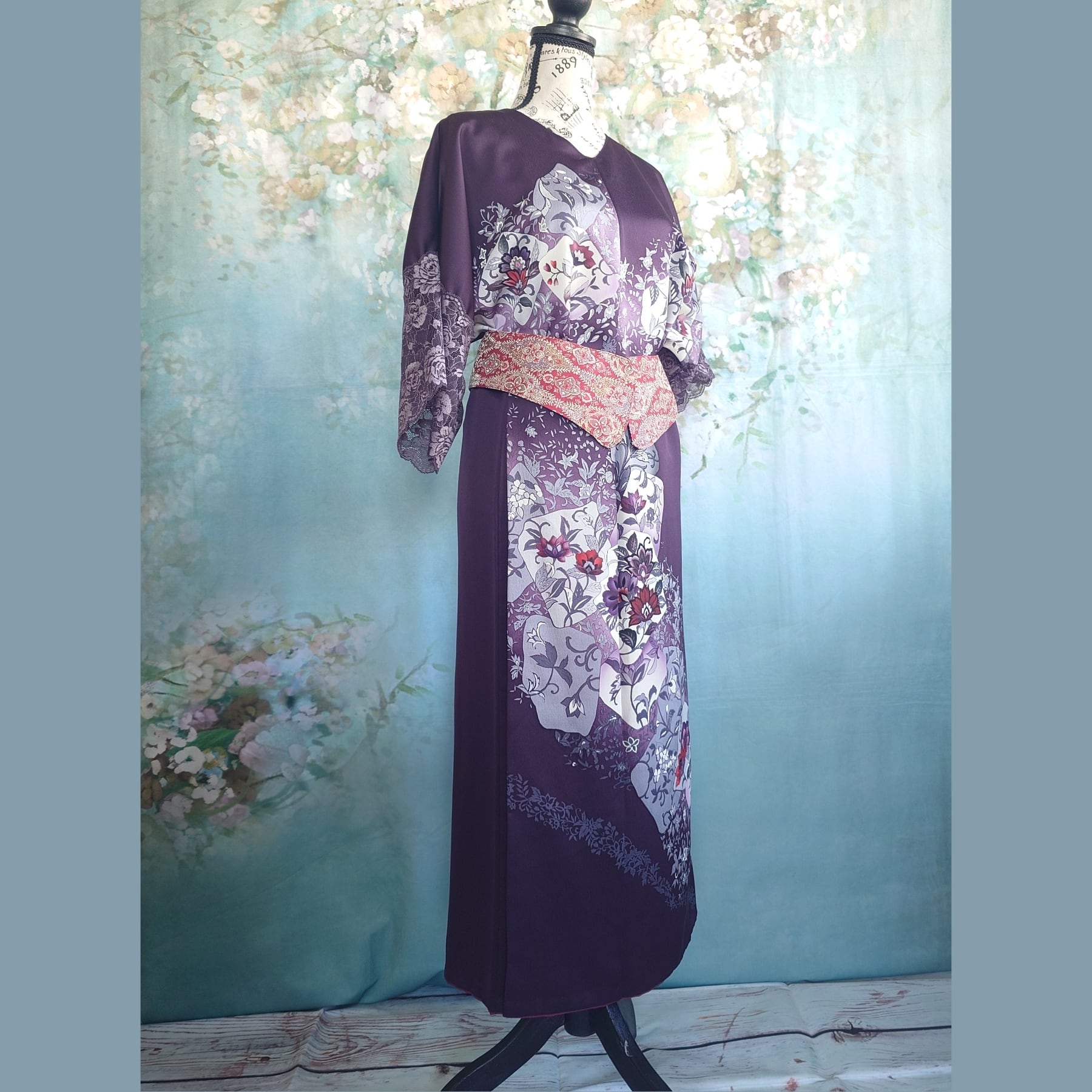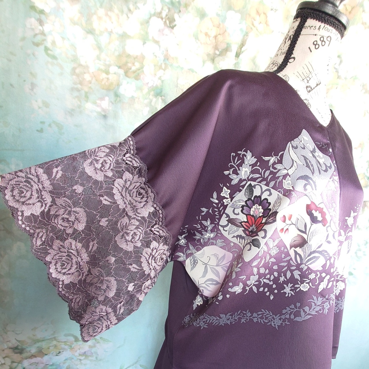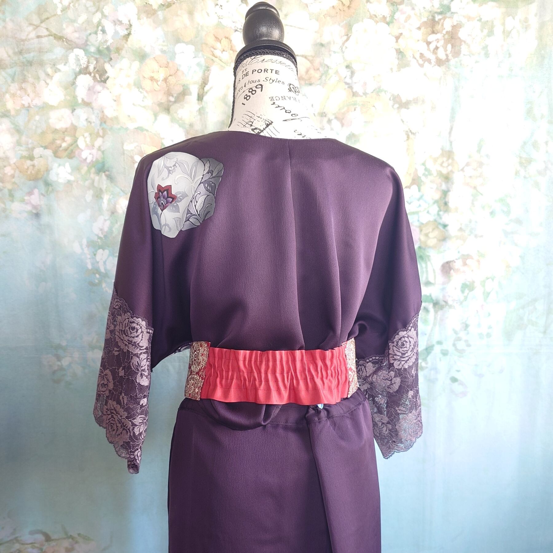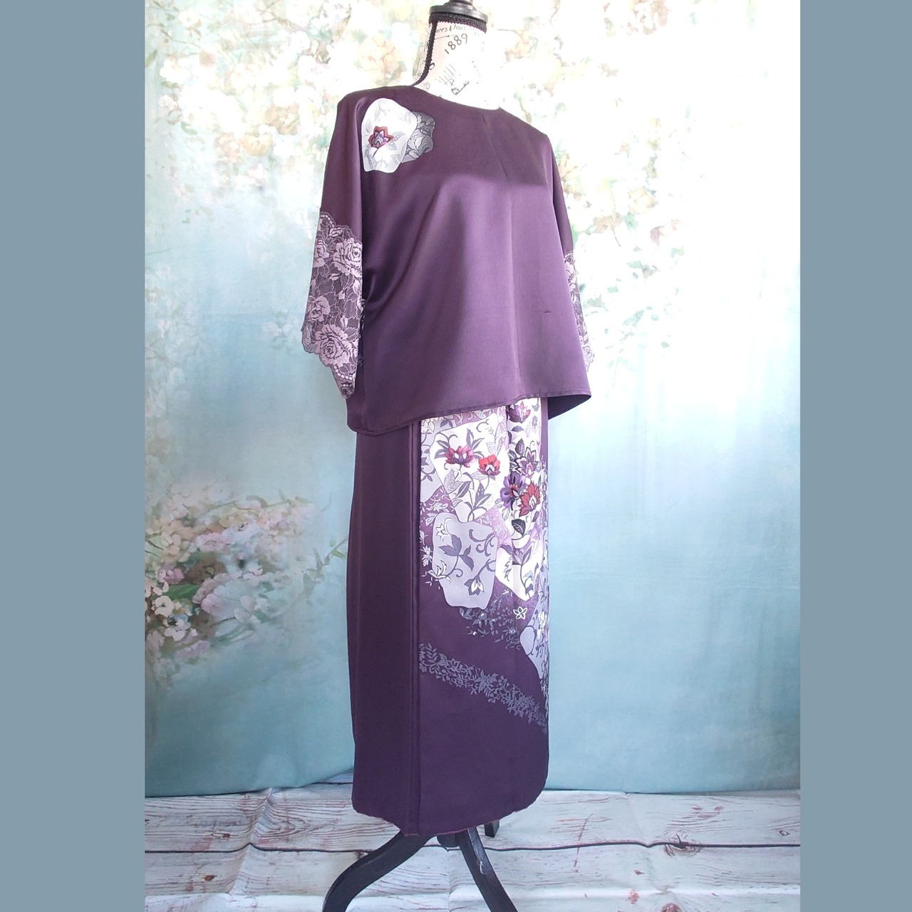 **着物リメイク 2wayセットアップ ~深紫の花園に包まれて~**