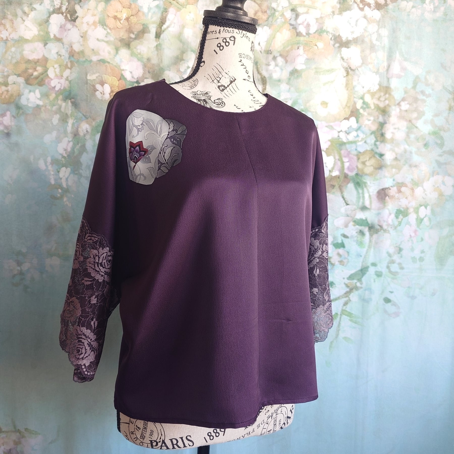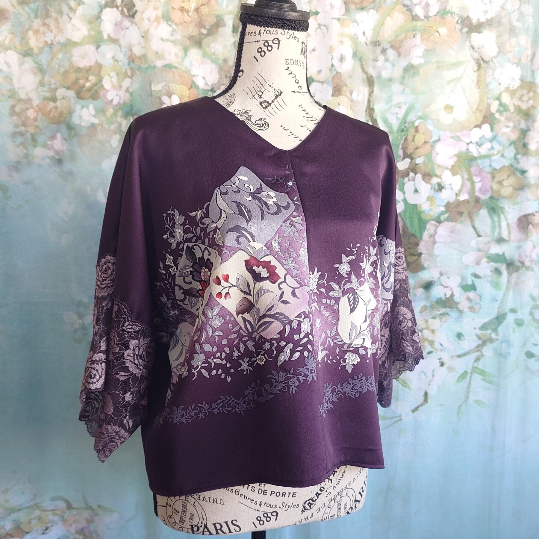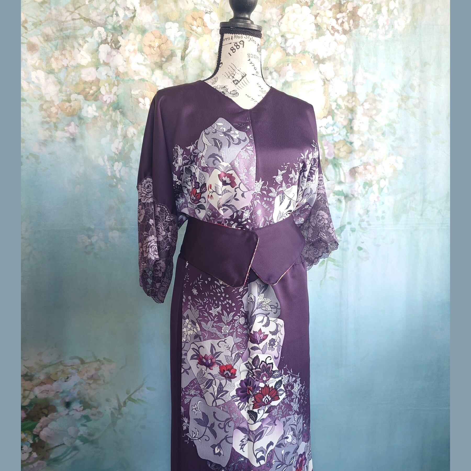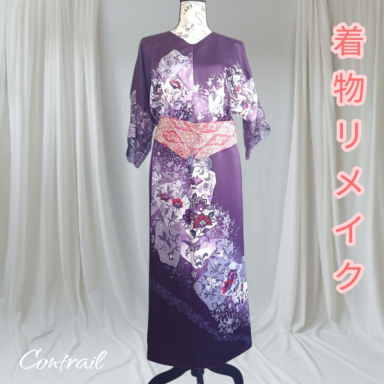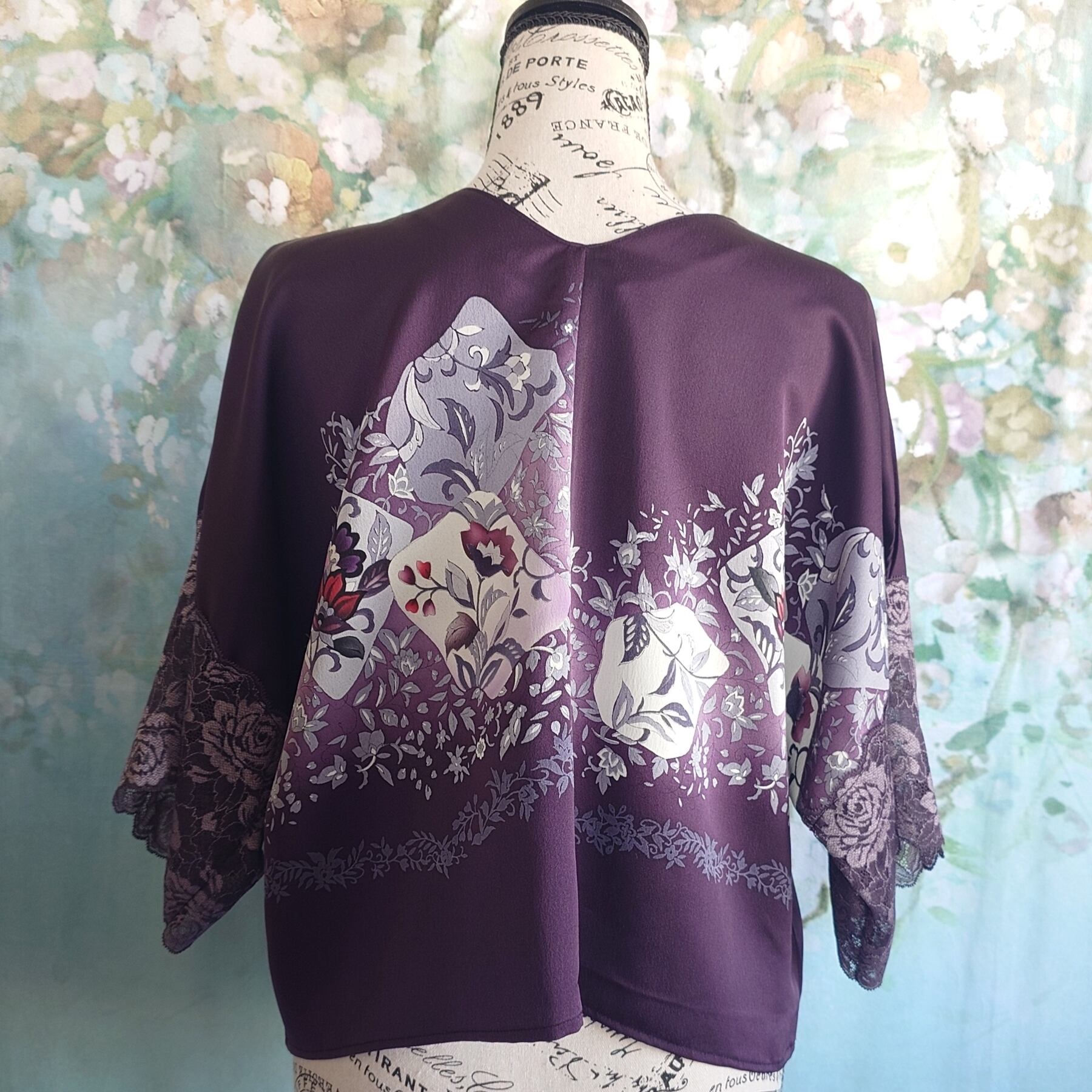 **着物リメイク 2wayセットアップ ~深紫の花園に包まれて~**