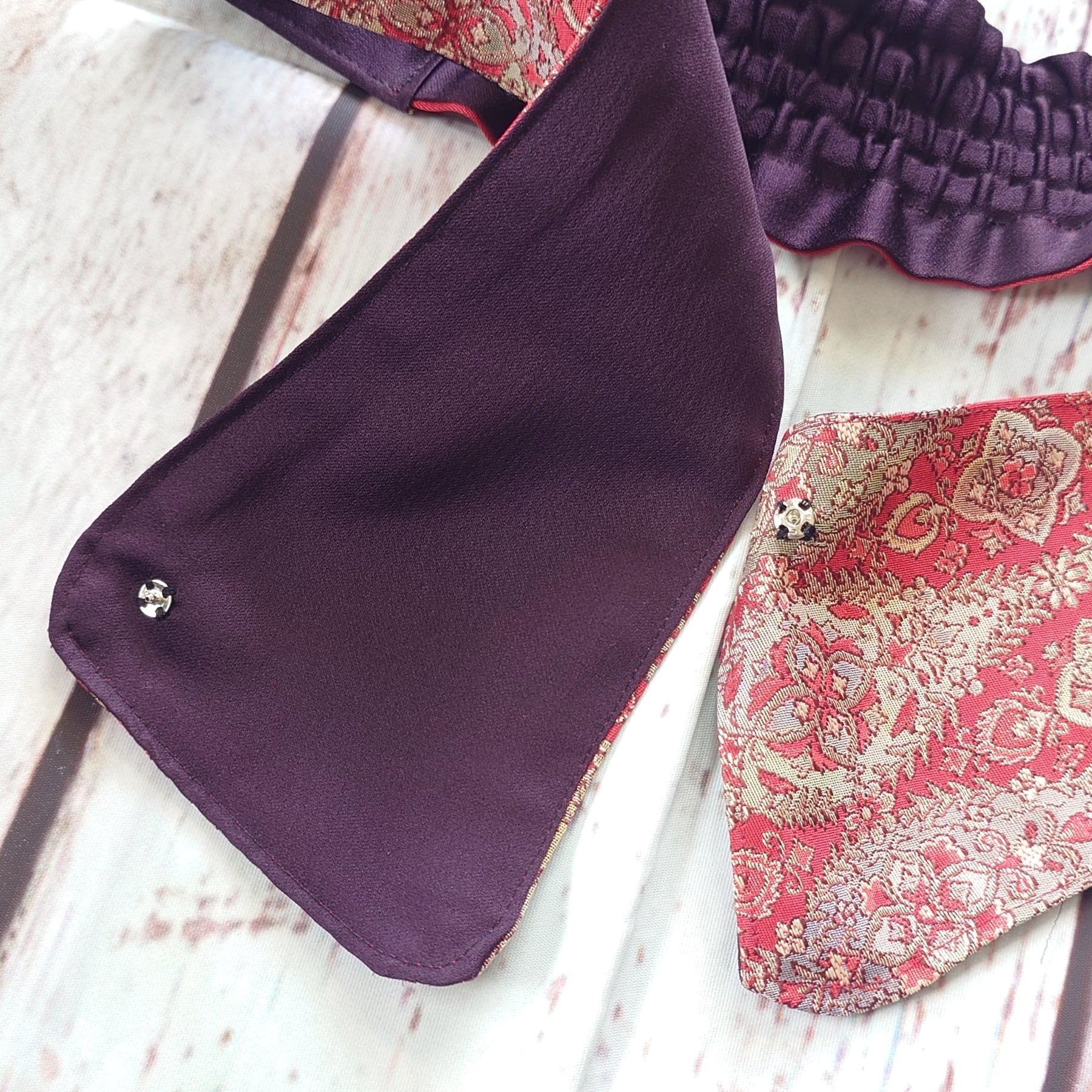 ●裁断・縫製の際は、細心の注意を払っておりますが、古布の為、どうしても避けられない色あせ・シミ・ほどき糸の残り・とき跡等がある場合がございます。