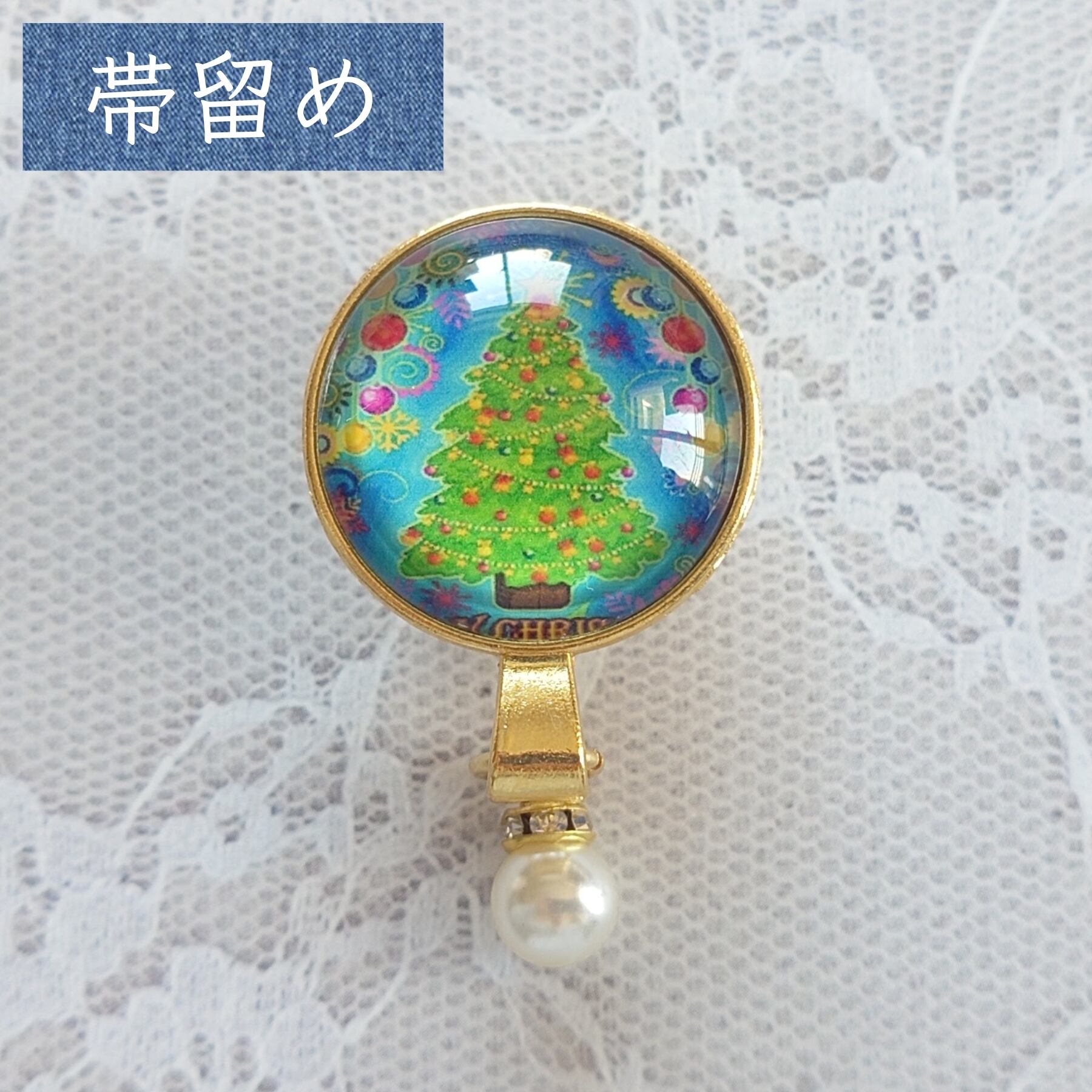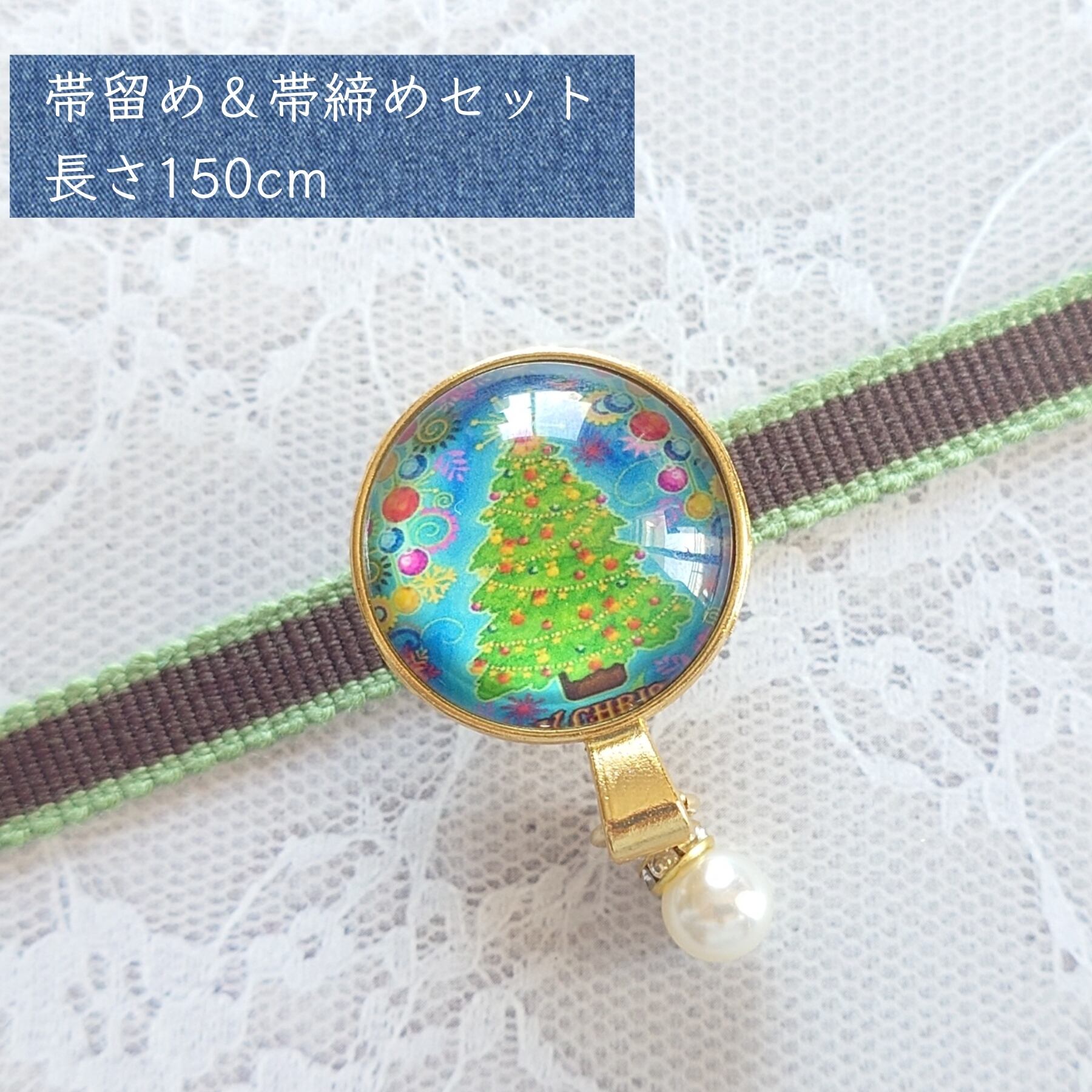 No.198 帯留め&帯締め2点セット 和装小物 三分紐用 クリスマス ツリー