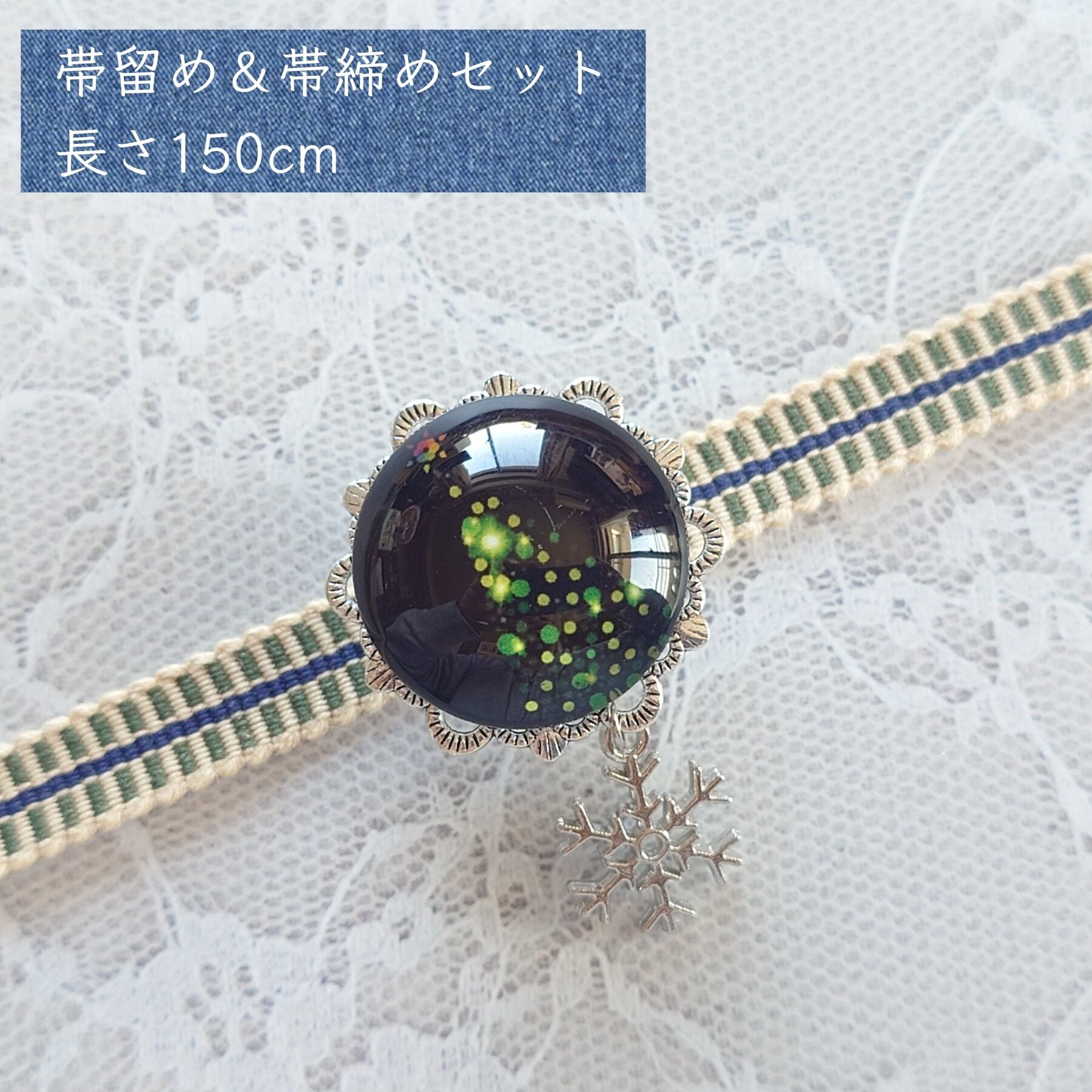 No.199 帯留め&帯締め2点セット 和装小物 三分紐用 クリスマス ツリー