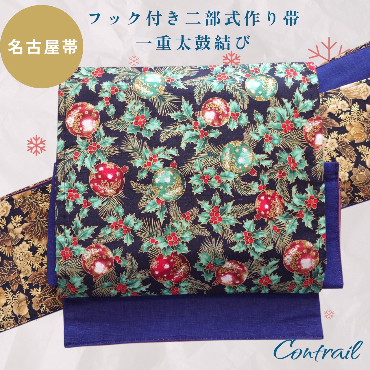 ob189 フック付き ワンタッチ 二部式作り帯 クリスマス ヒイラギ