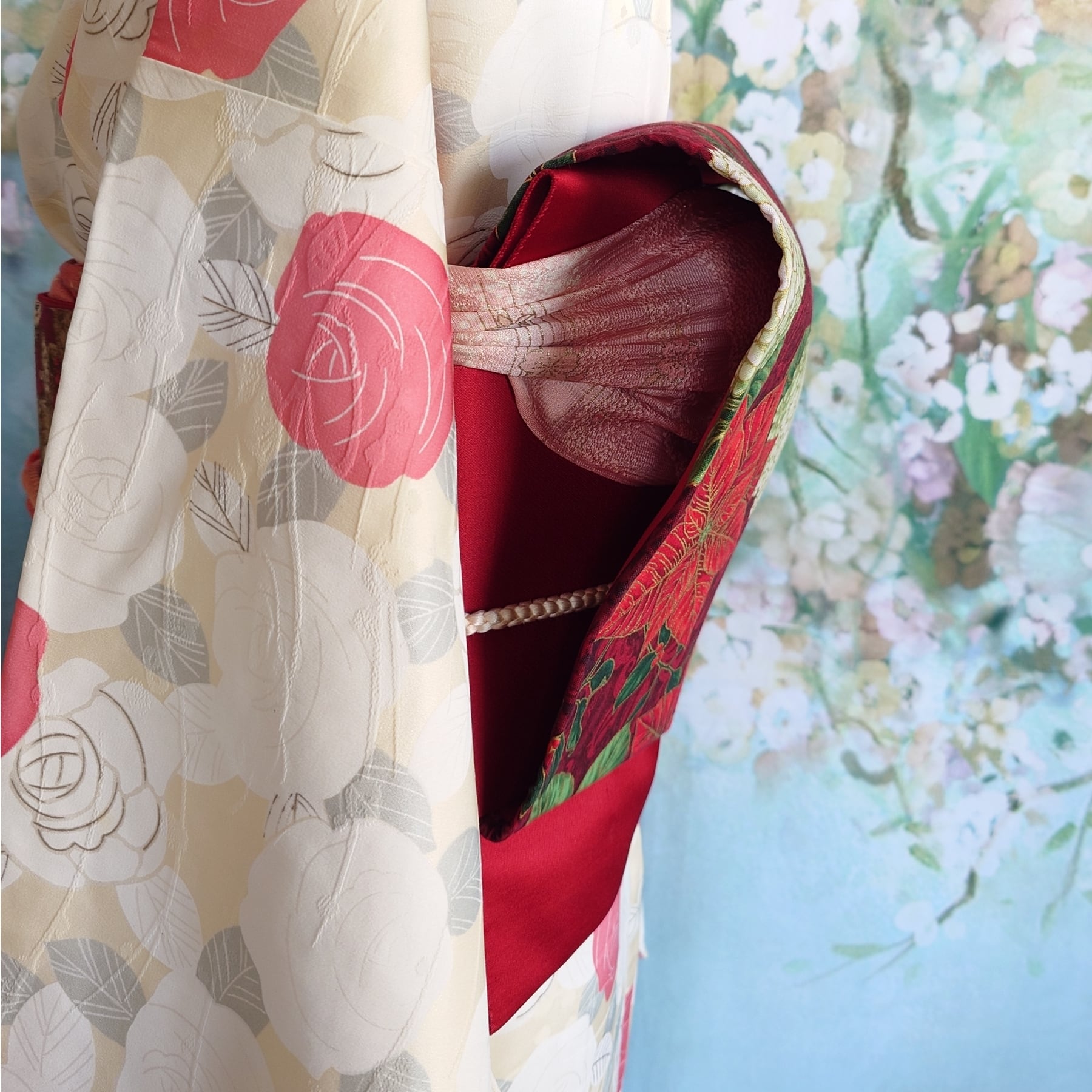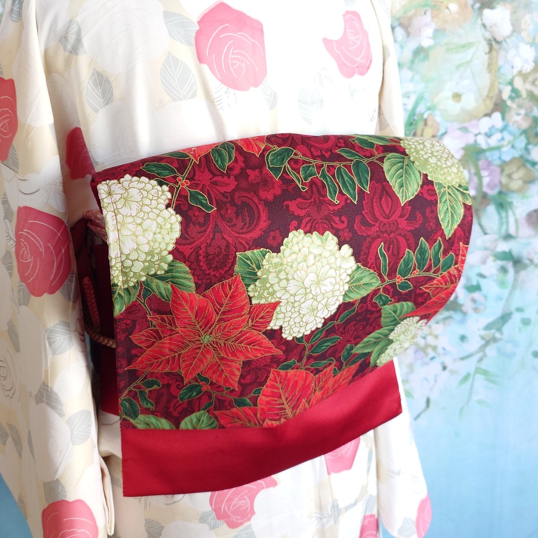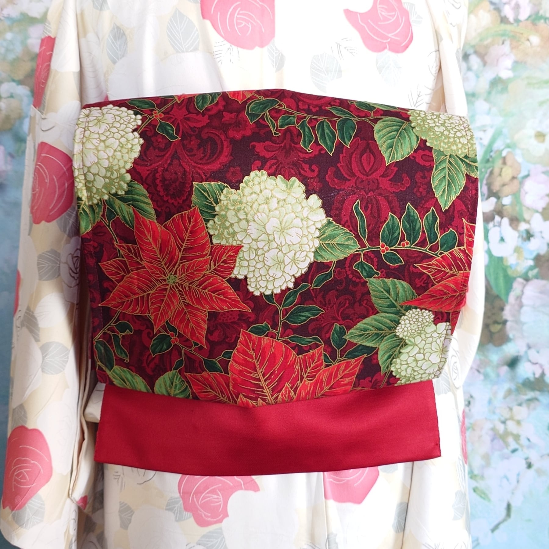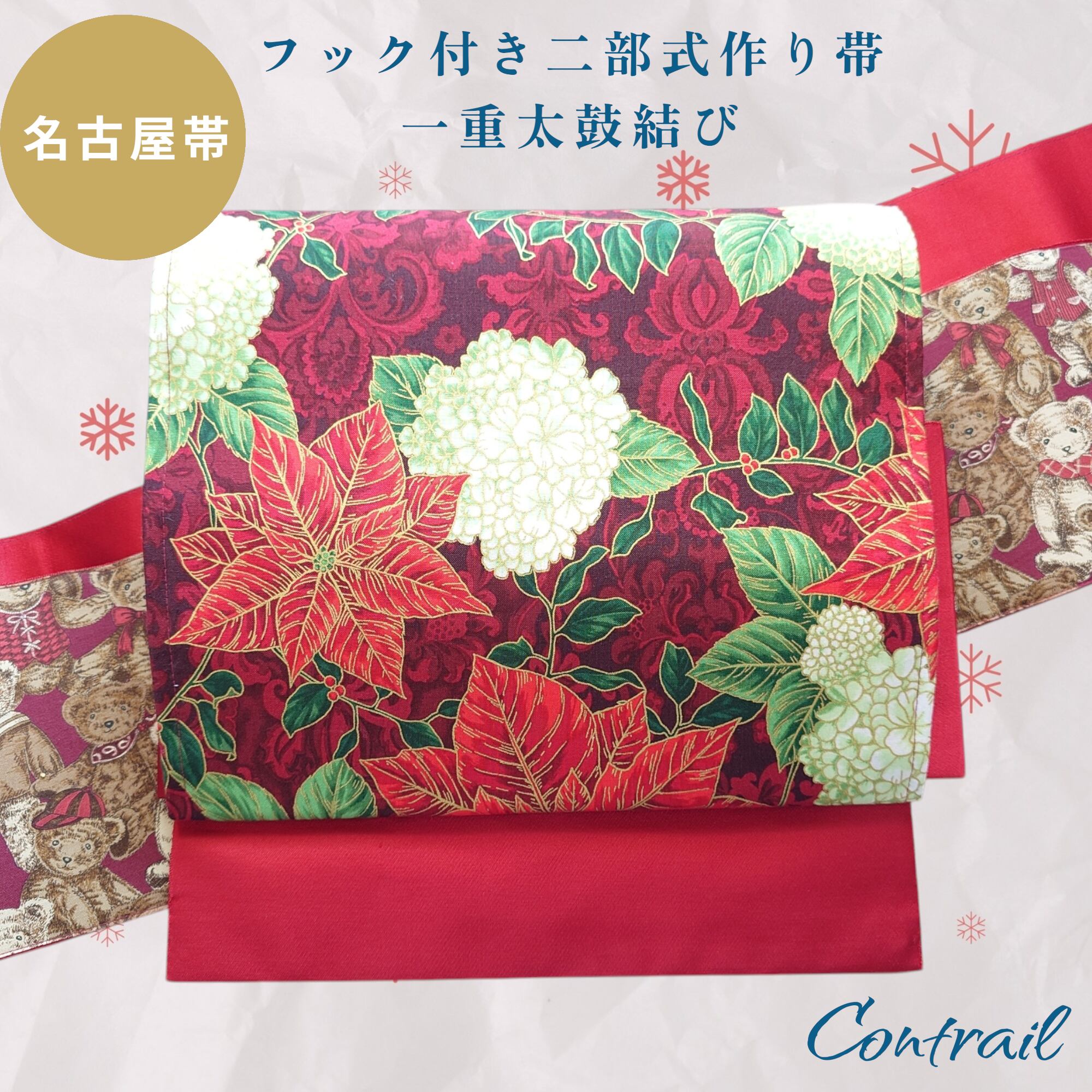 ob190 フック付き ワンタッチ 二部式作り帯 クリスマス ポインセチア