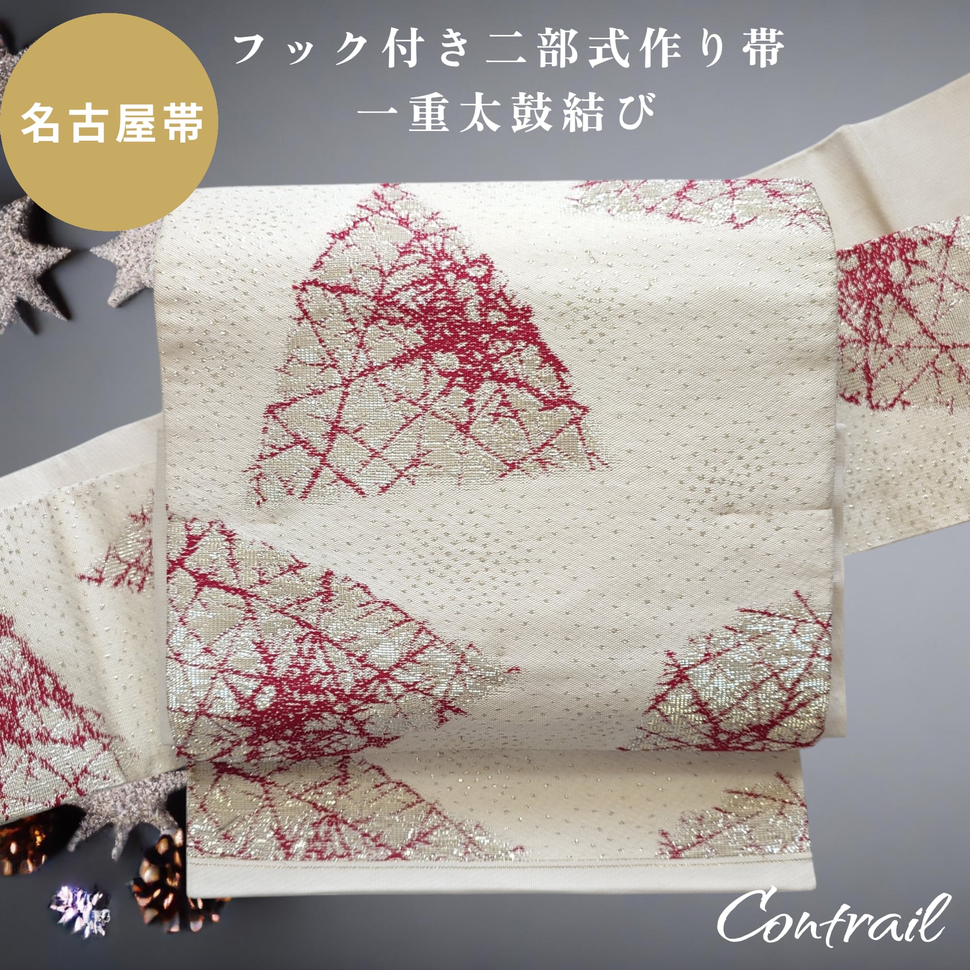 ob191 フック付 ワンタッチ二部式作り帯 一重太鼓結び 名古屋帯 銀糸