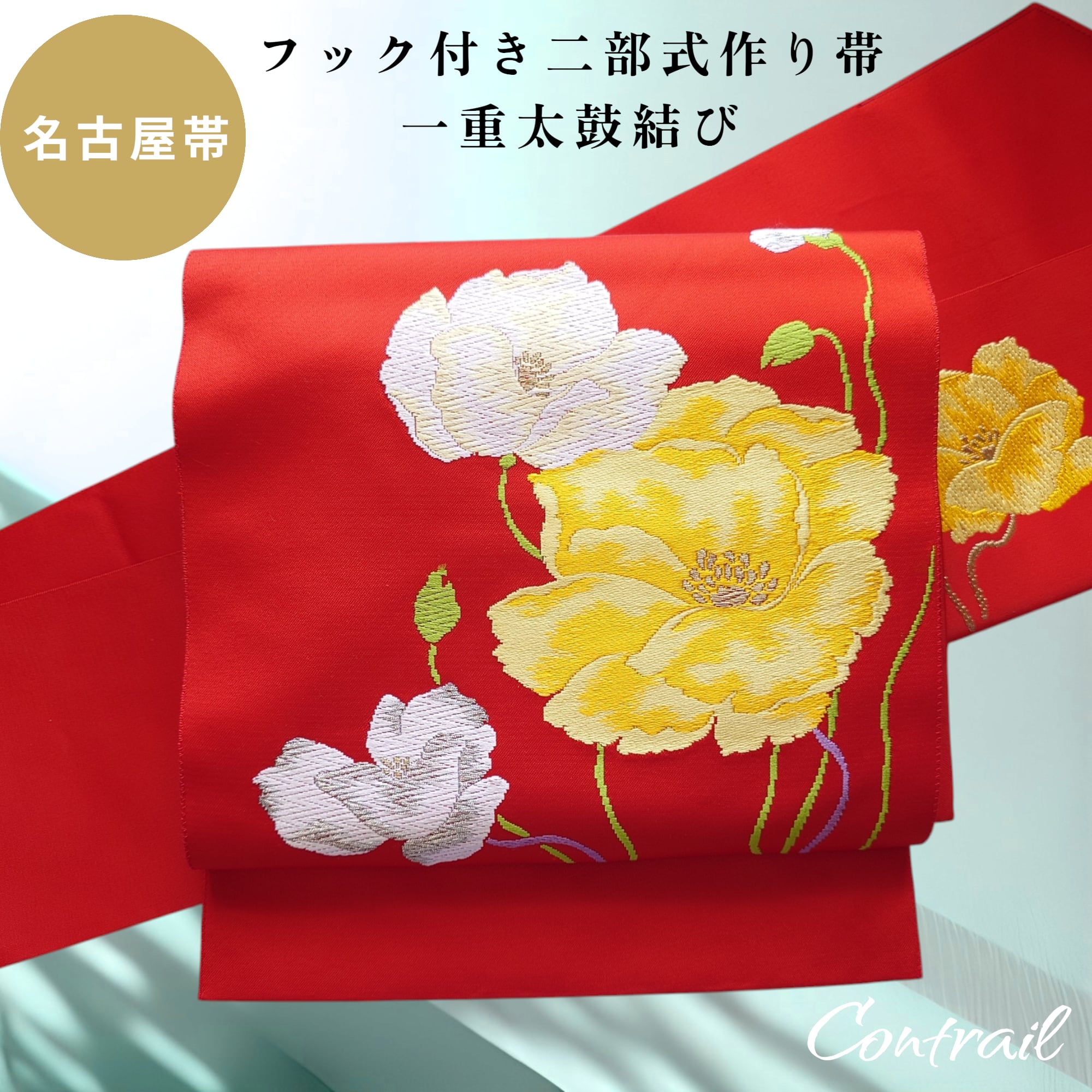 ob192 フック付 ワンタッチ二部式作り帯 一重太鼓結び 名古屋帯 刺繍