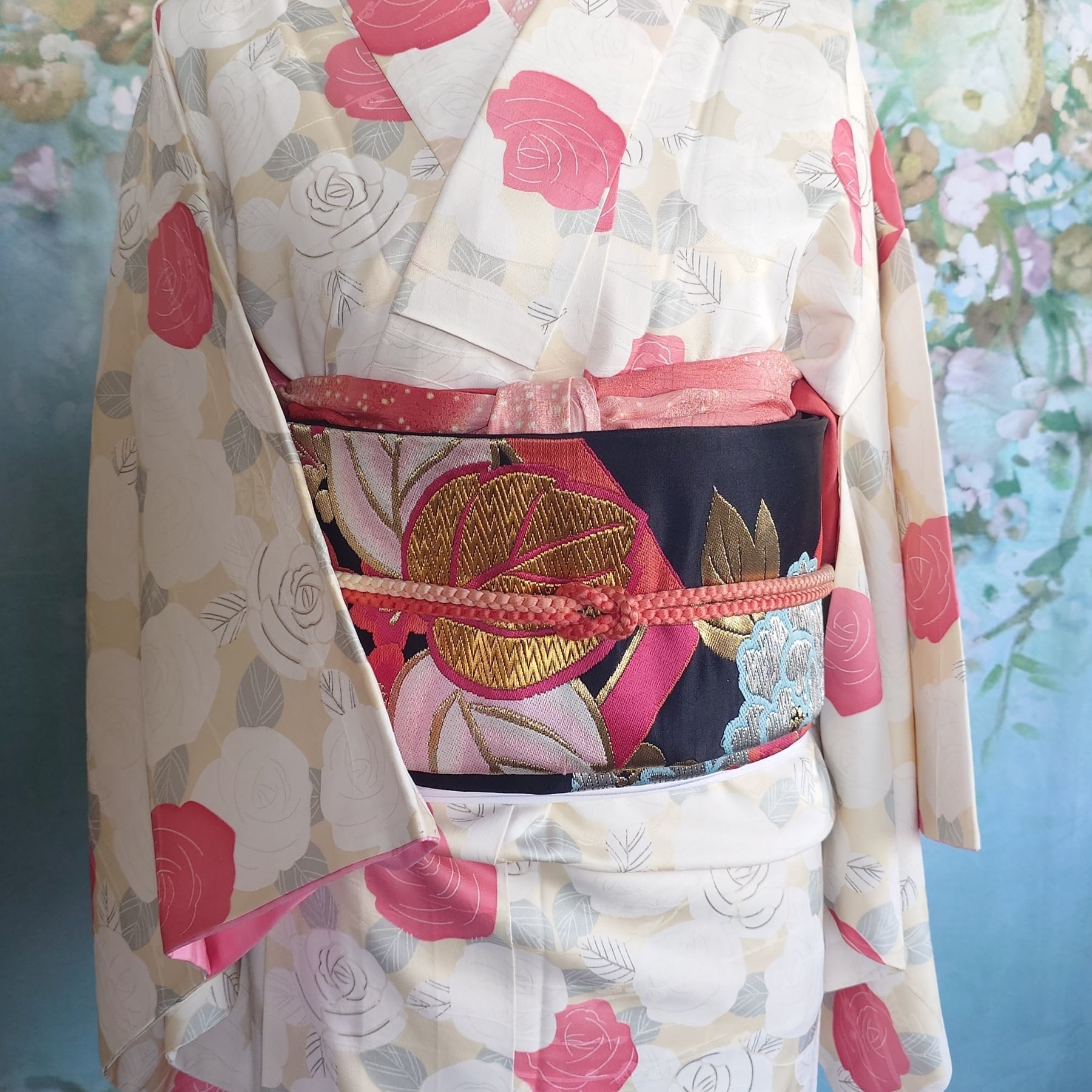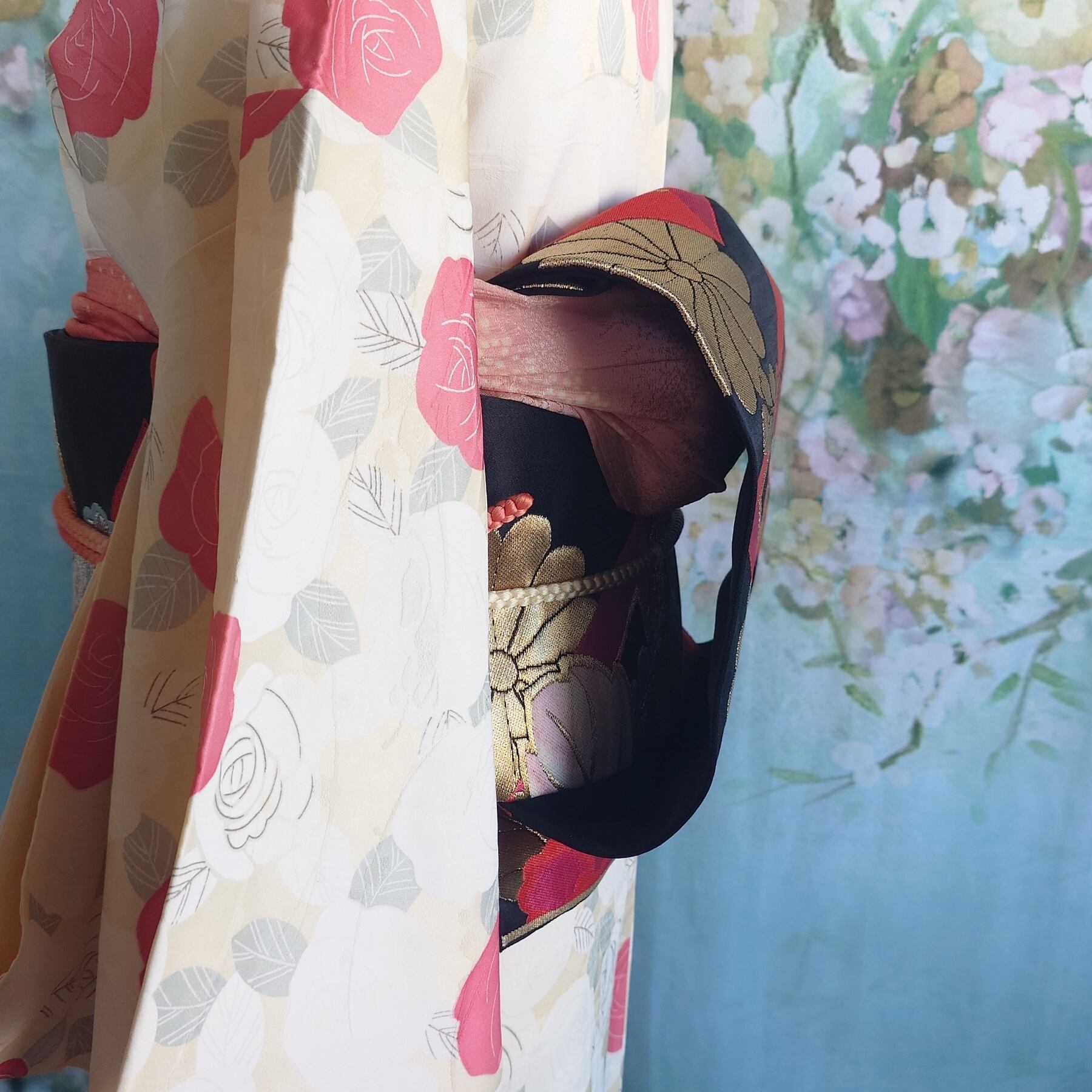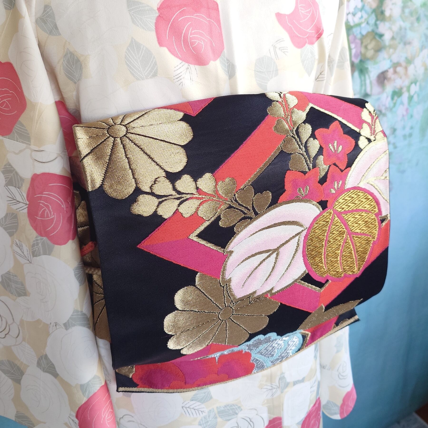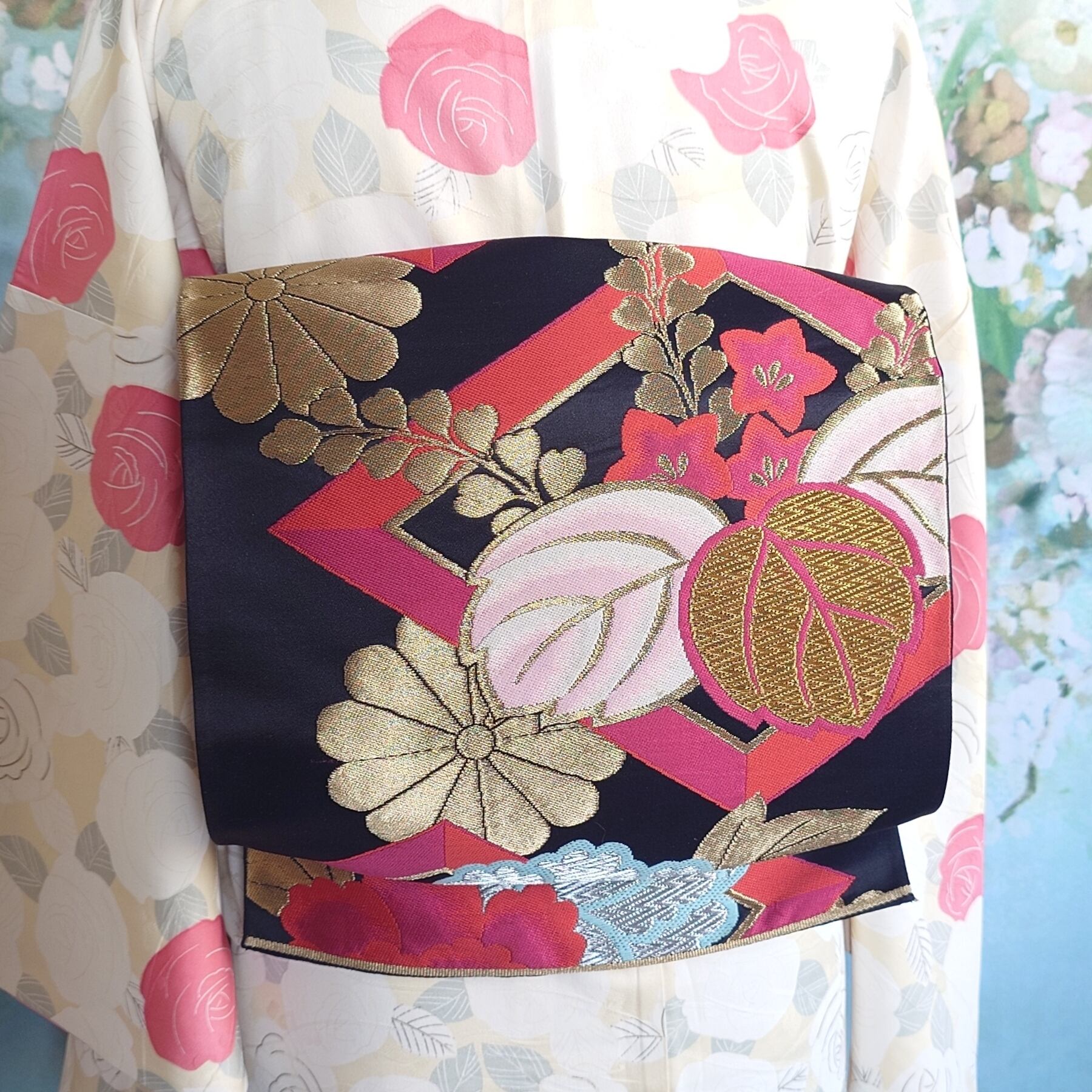 日本独自の文化である素敵な着物や帯の柄や色合いを生かした作品です。