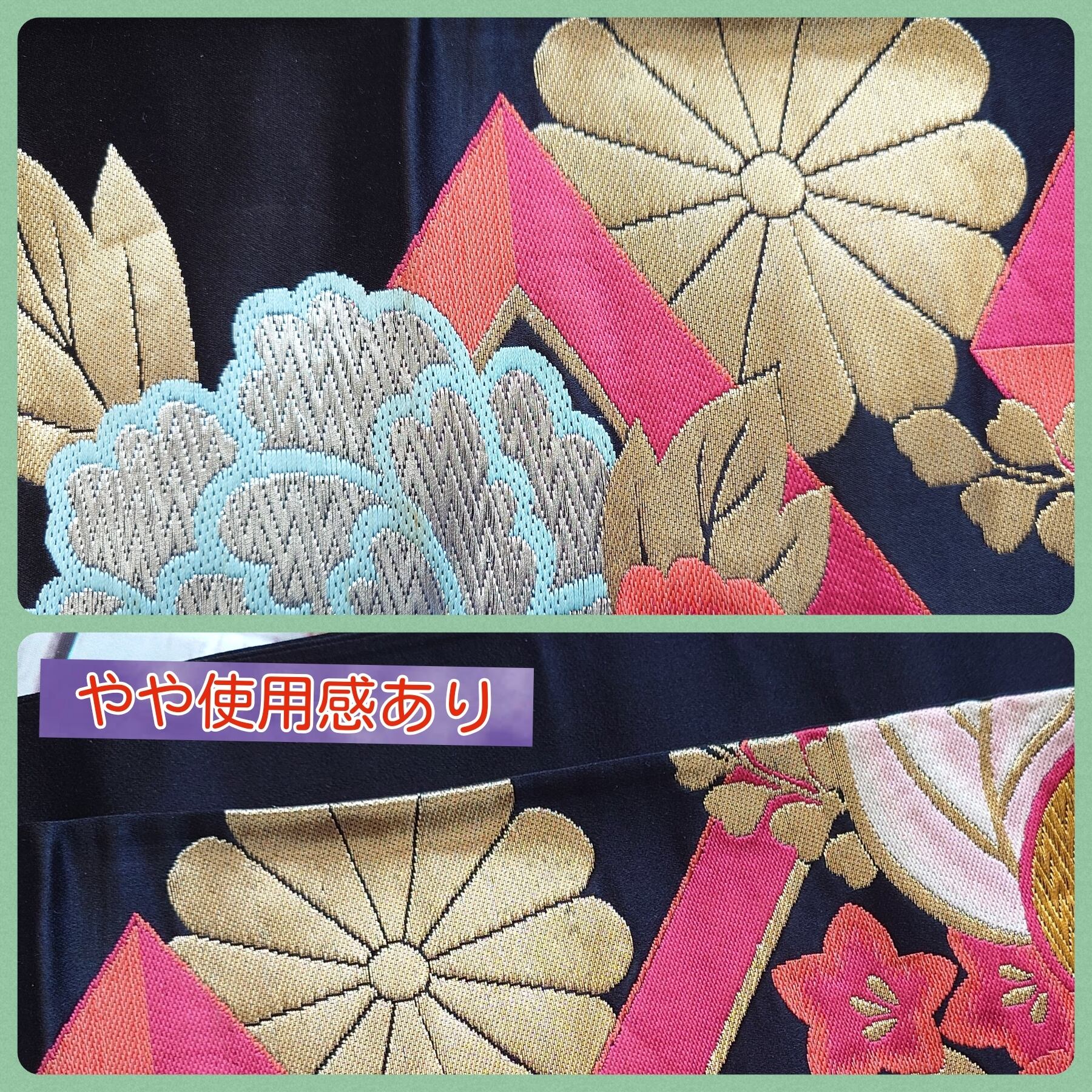 ●裁断・縫製の際は、細心の注意を払っておりますが、古布の為、どうしても避けられない色あせ・シミ・ほどき糸の残り・とき跡・虫食い等がある場合がございます。