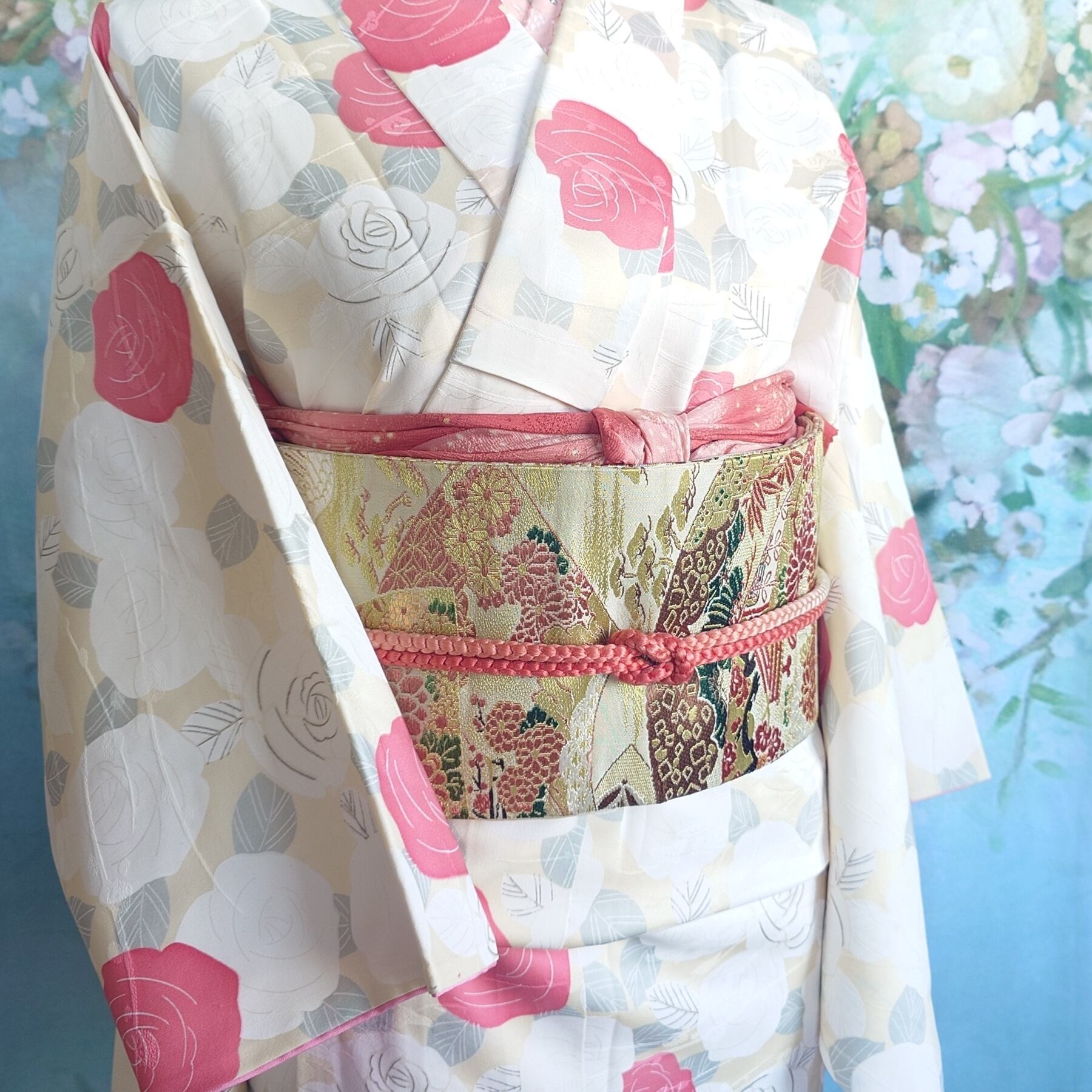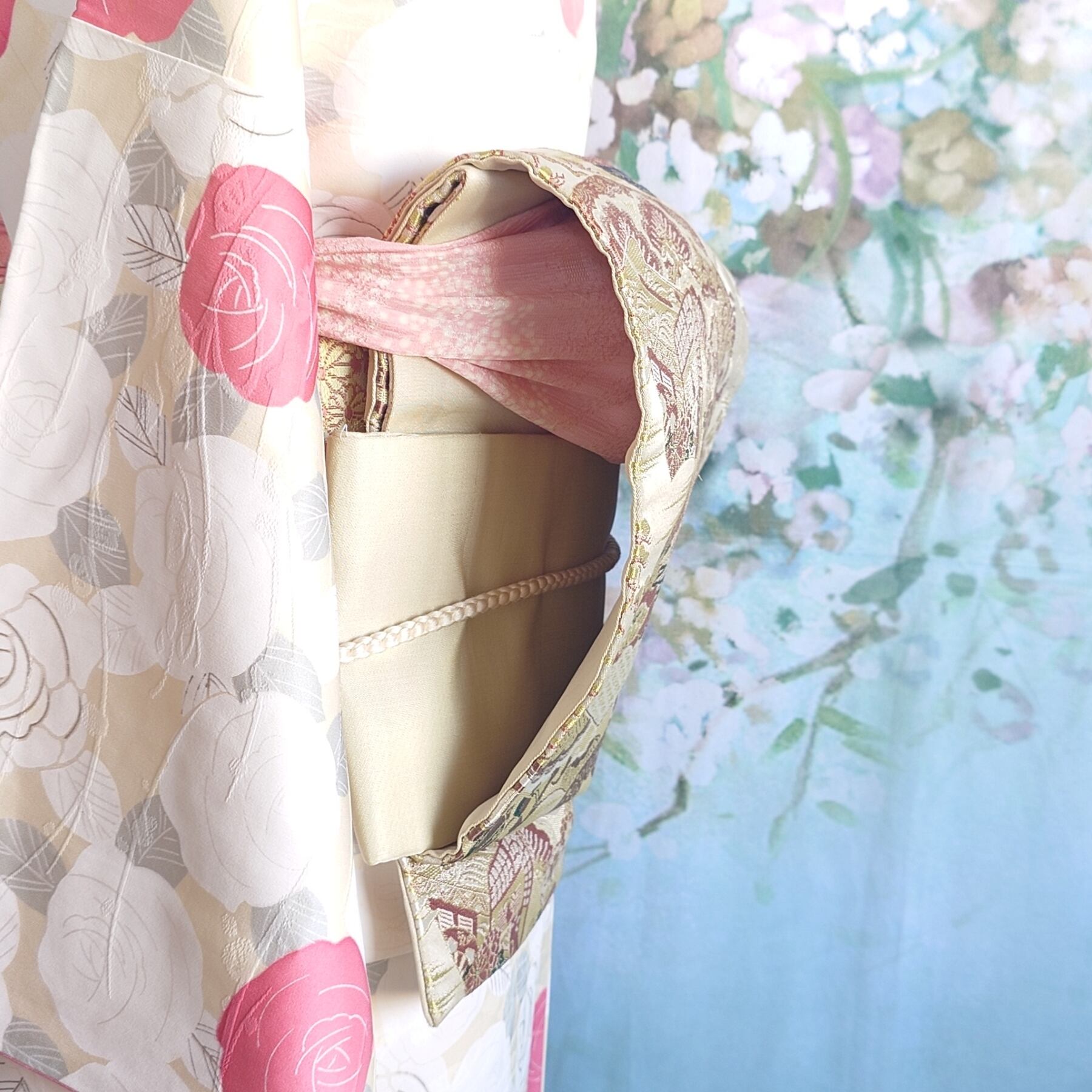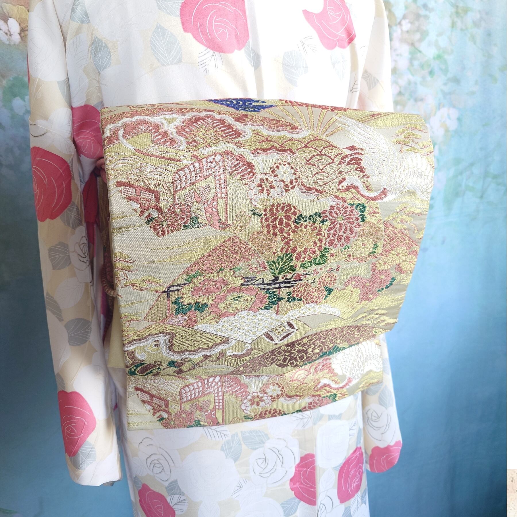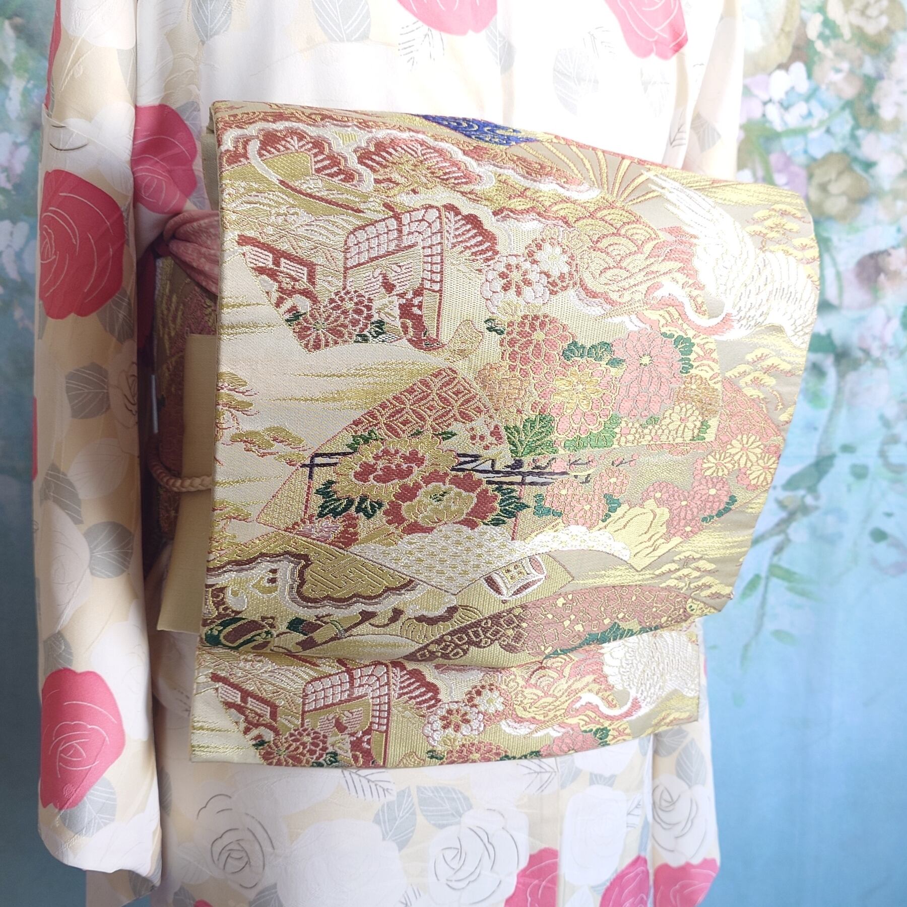 日本独自の文化である素敵な着物や帯の柄や色合いを生かした作品です。