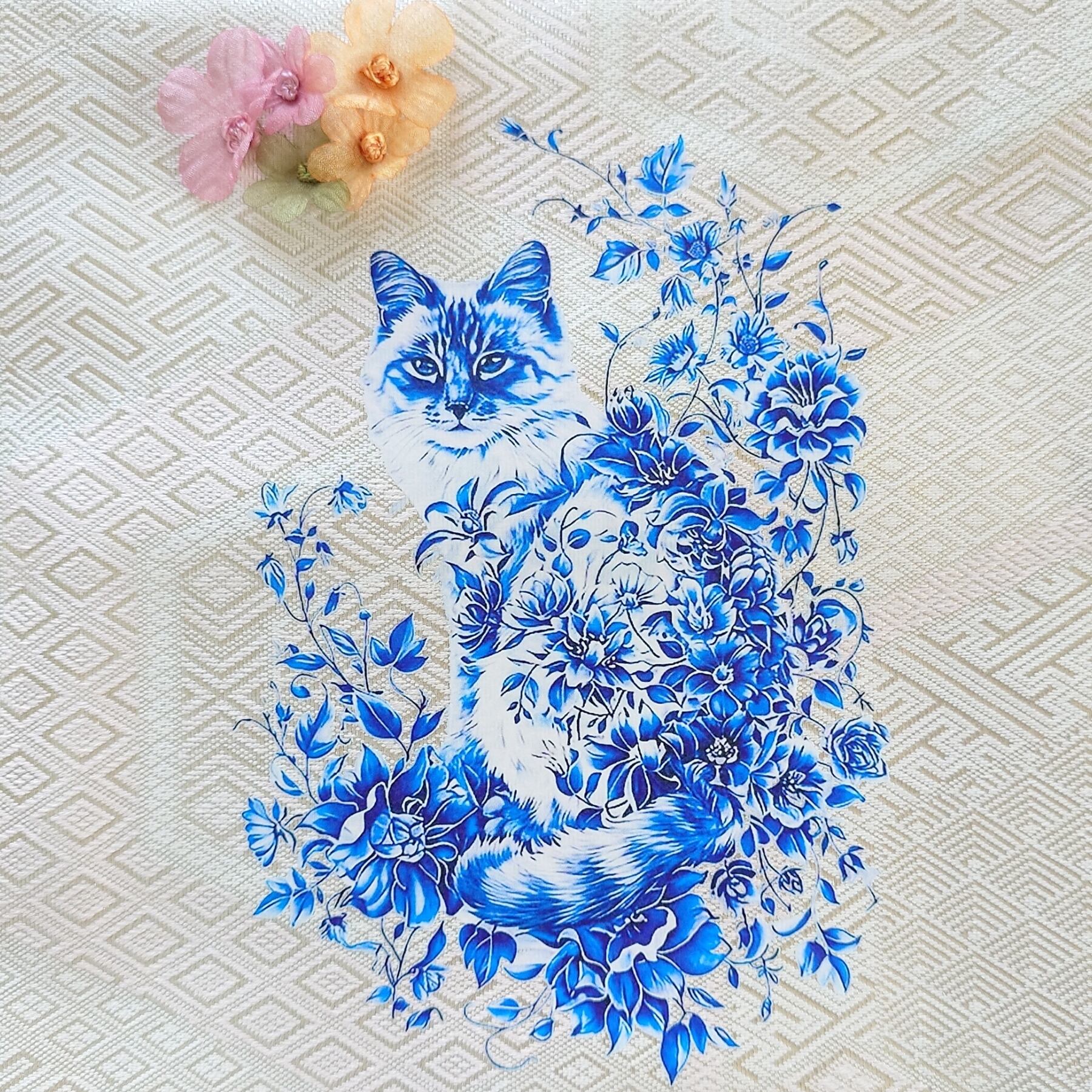 かわいい猫のアイロンプリントをつけ、レースの華をつけて華やかに、かわいらしく。
