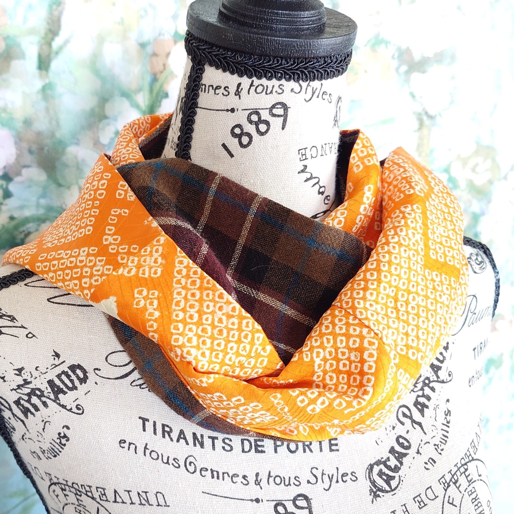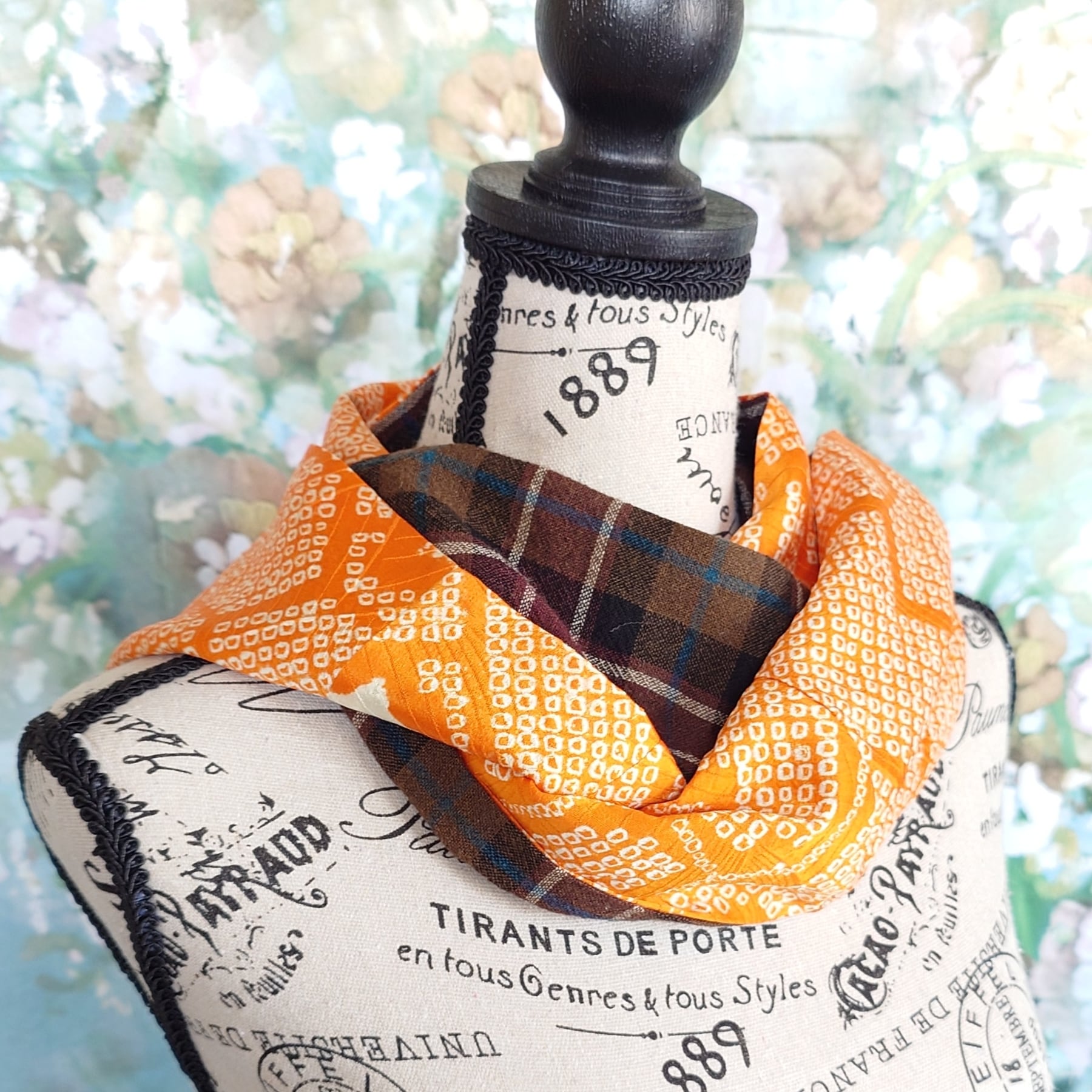 振袖の艶やかな柄をメインに、柔らかく暖かなウール混を裏面に贅沢に使用した、冬から春先まで長く愛用できるスヌードが完成しました。