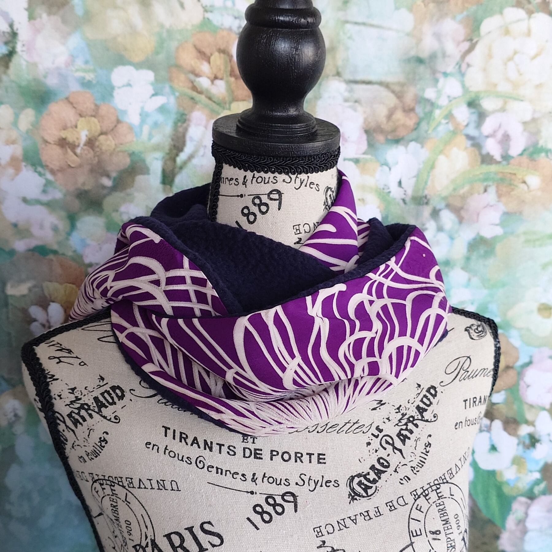 小紋のインパクトある柄をメインに、柔らかく暖かなポリ系ボアニットを裏面に贅沢に使用した、冬から春先まで長く愛用できるスヌードが完成しました。